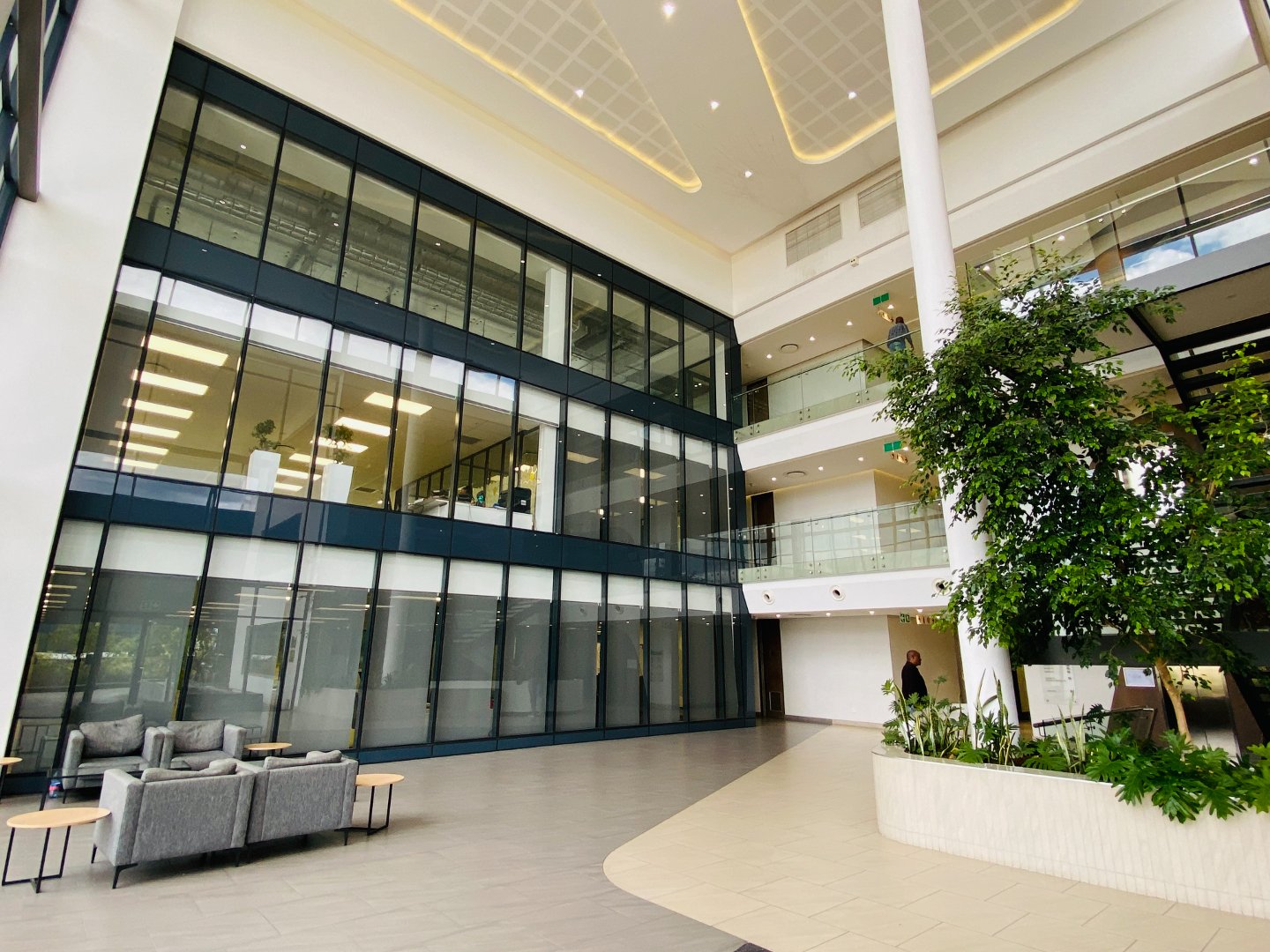 The light and airy building reception is inviting and provides access control as well as elevators to floor.