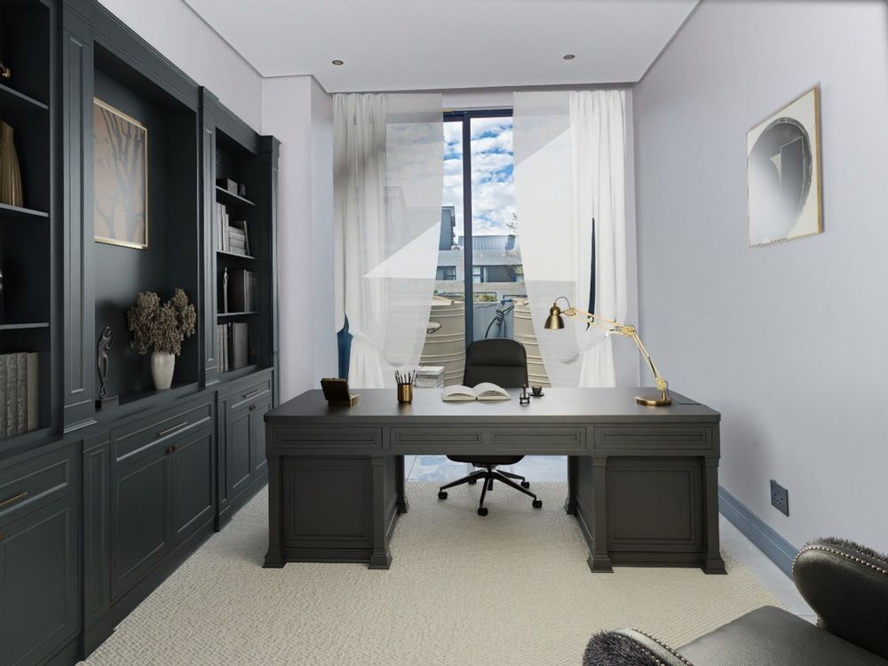 A contemporary spiral stair case takes you to the first floor which accomodates three generously sized bedrooms all en - suite, offering convenience, privacy and luxury. The master suite boasts a walk-in closet. There is also space for a pyjama lounge and an extra room that can be used as a home gym, study, kiddies play area.