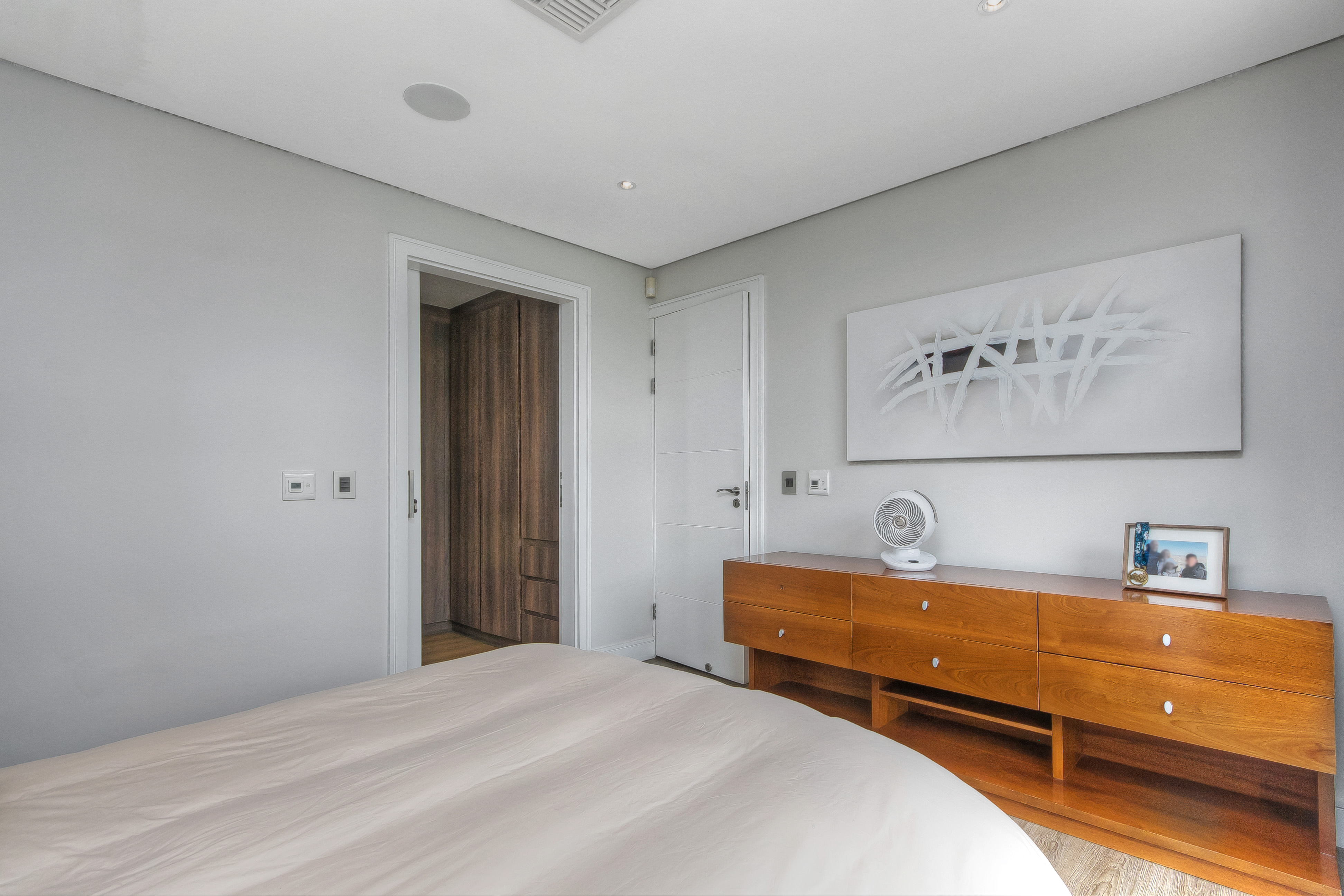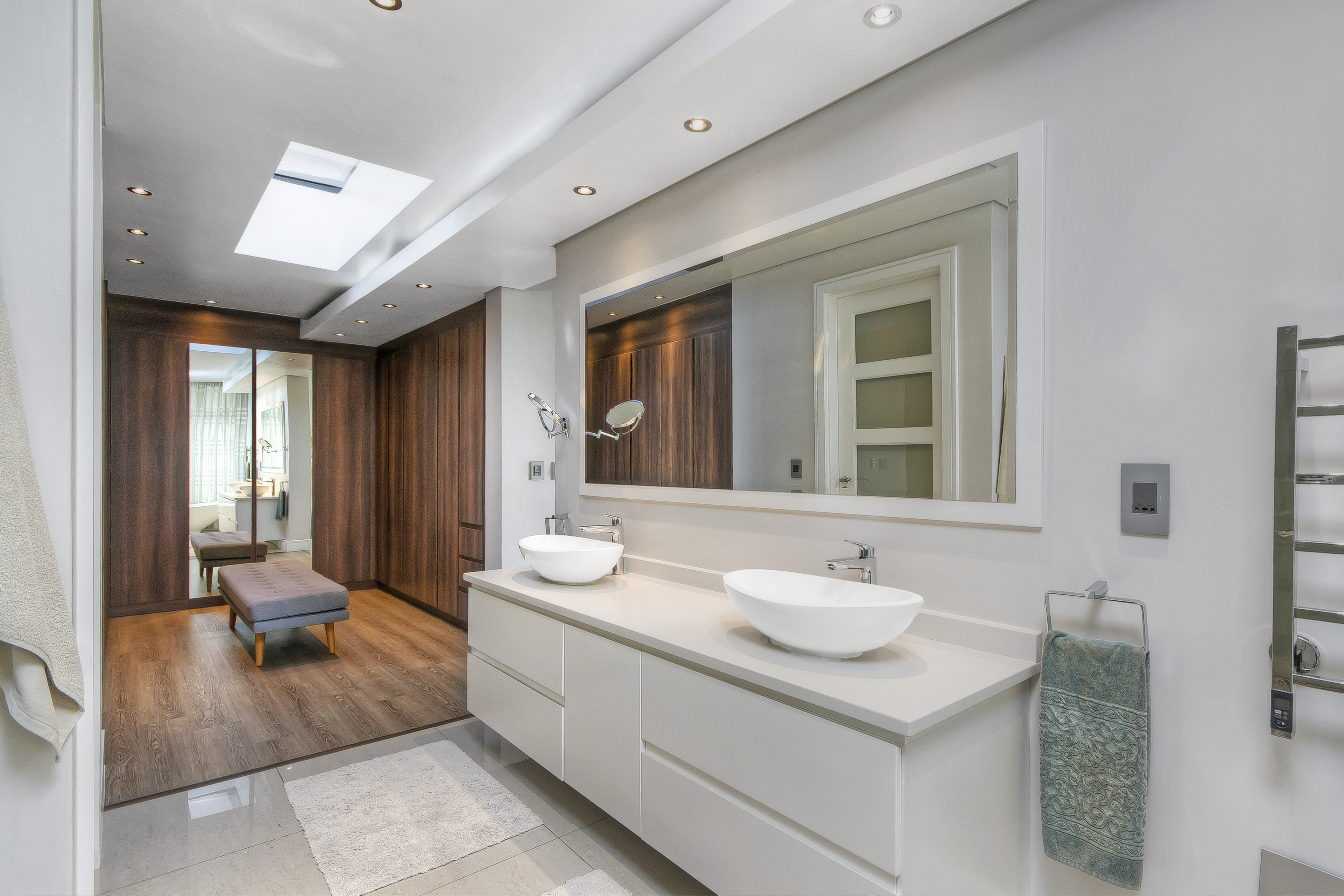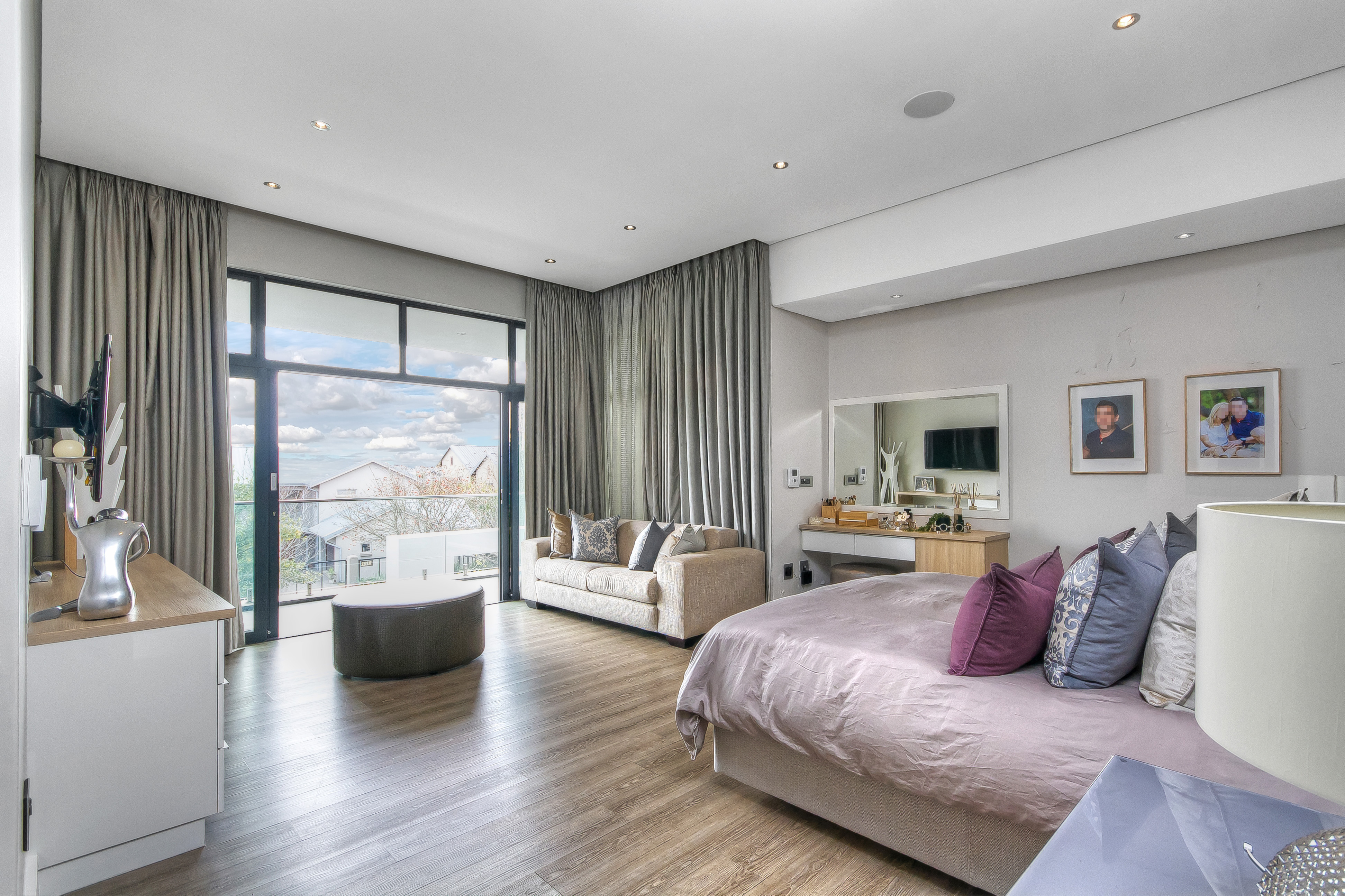 Up the elegant spiral staircase, the upper level unfolds into a welcoming pyjama lounge with a gas fireplace and balcony access. Four generously sized bedrooms, each featuring underfloor heating, wood flooring, built-in wardrobes, private balconies, and luxurious ensuite bathrooms, await. The master suite is a sanctuary — expansive, sun-filled, and meticulously designed. It features a large walk-in his-and-hers wardrobe leading into an opulent ensuite with a freestanding soaking tub, heated towel rail, spacious walk-in shower with seating, double vanity, and private toilet — all finished to the highest standard.