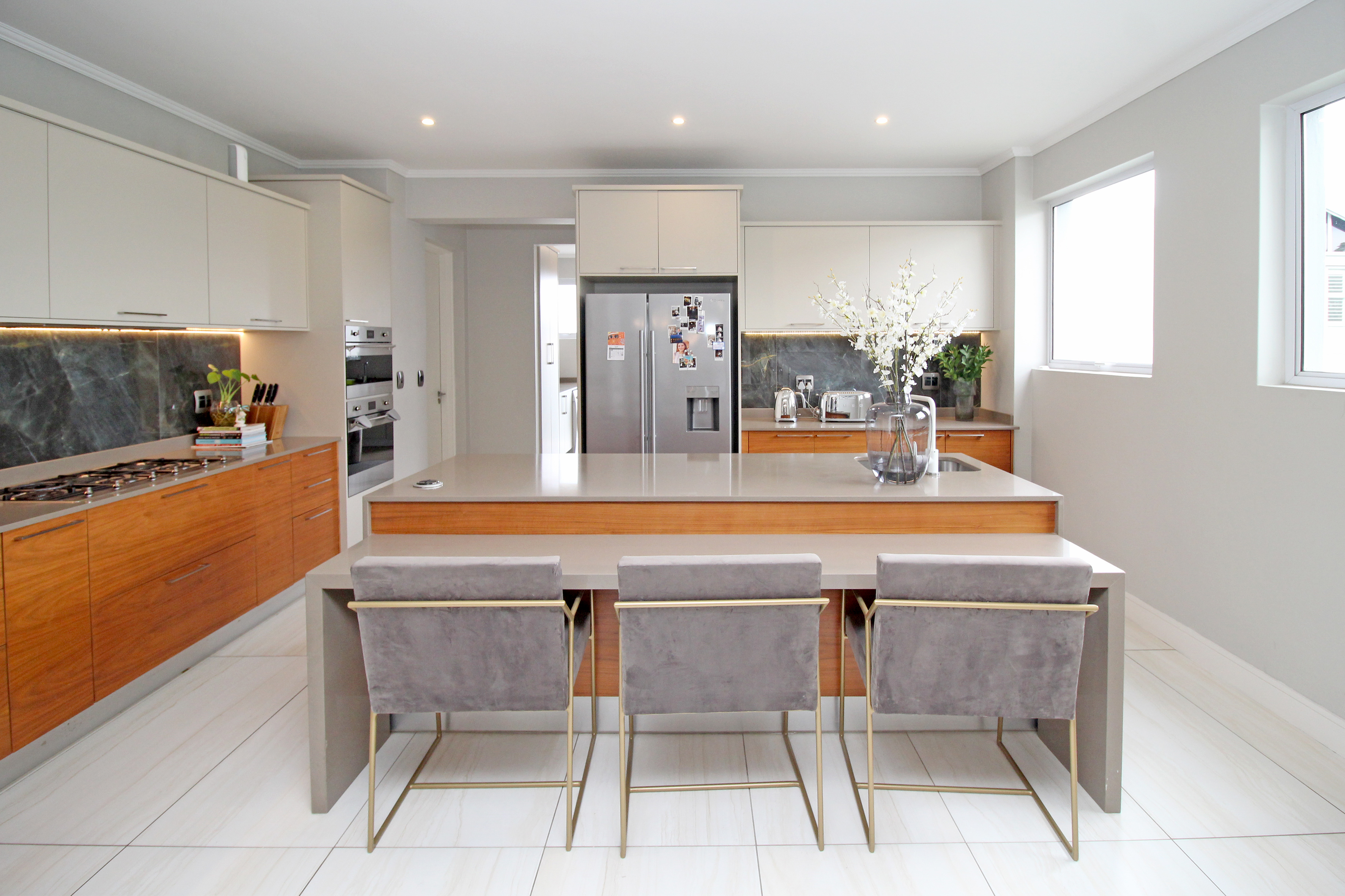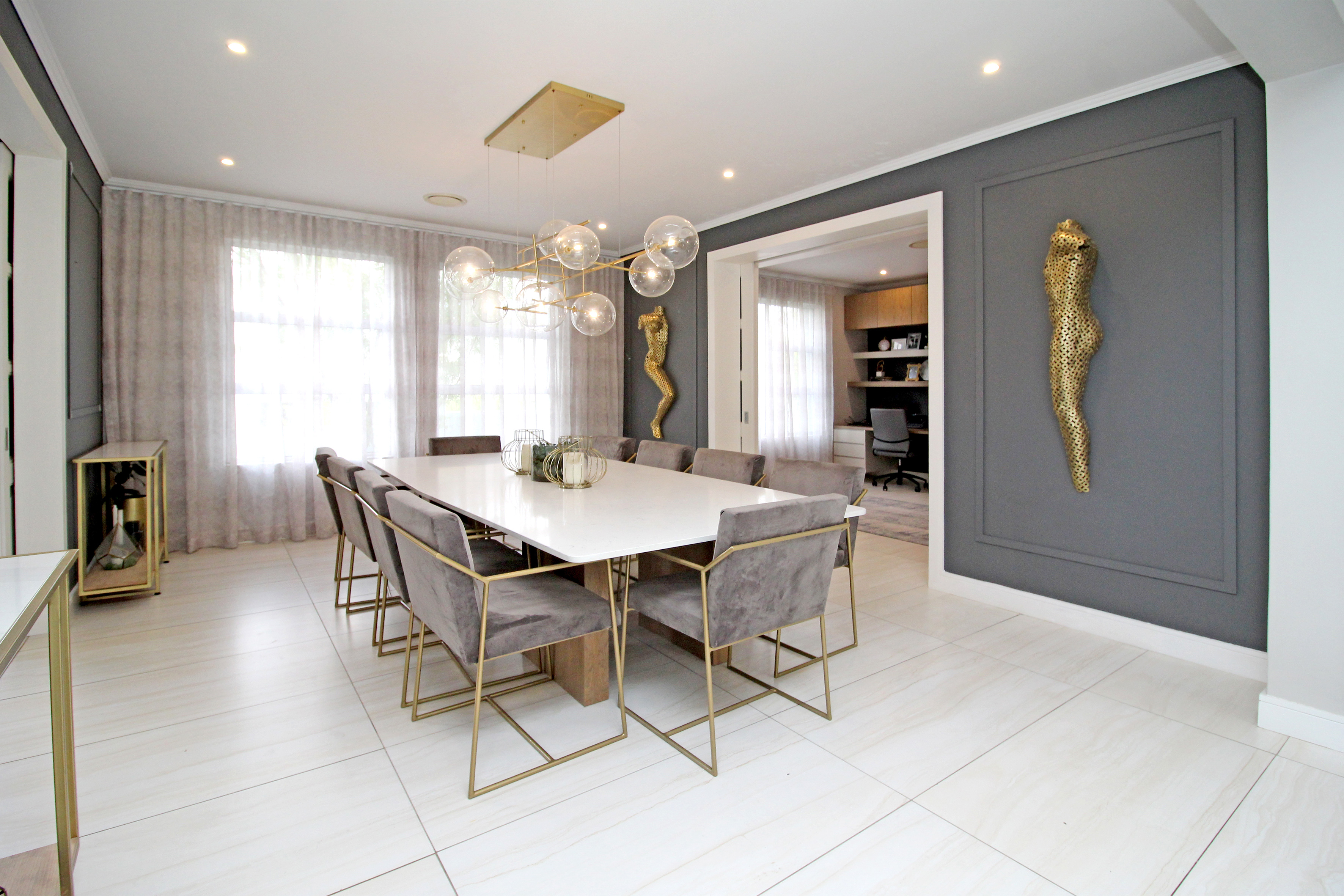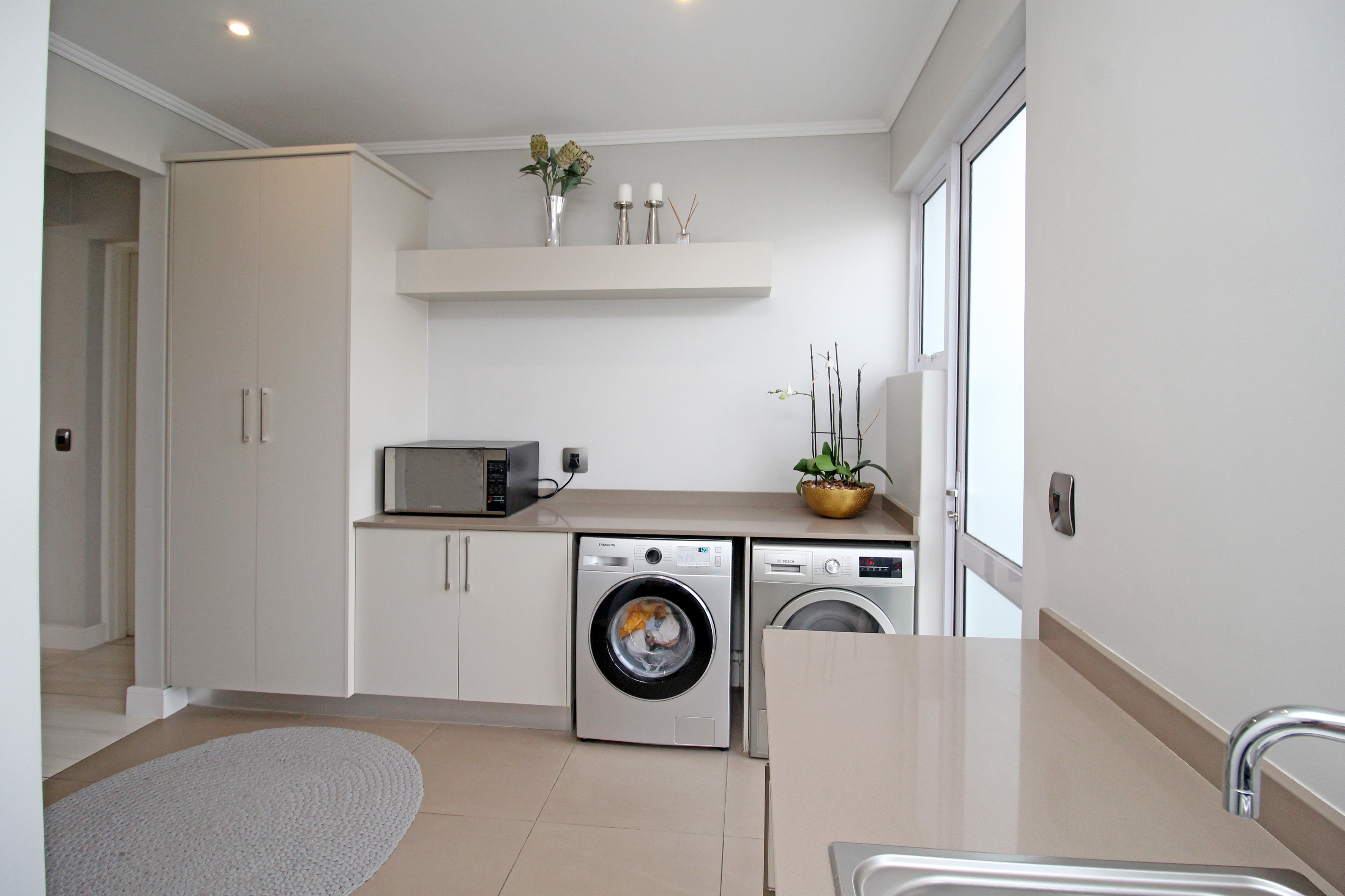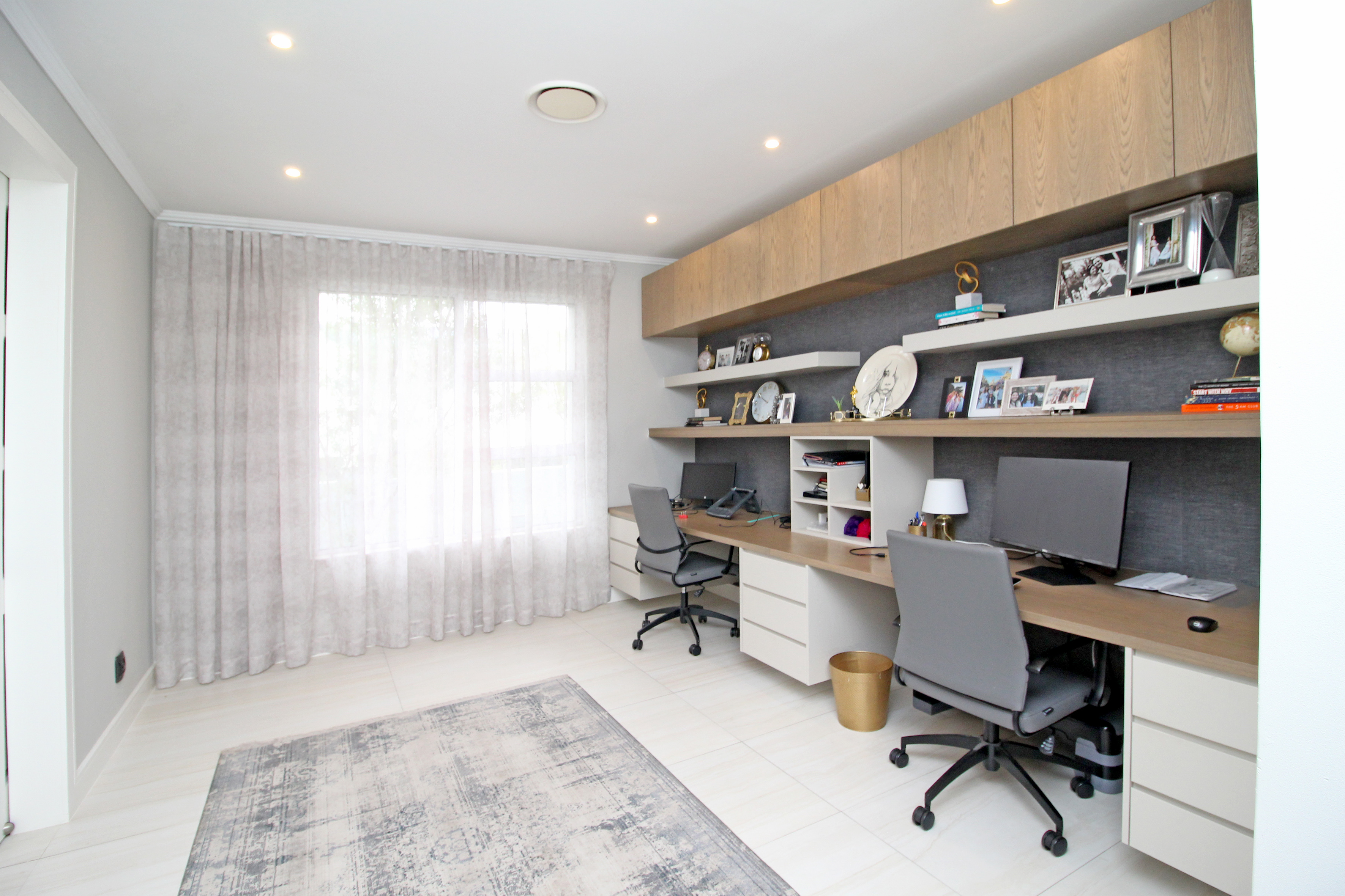 The kitchen is the heart of the home and a dream for any entertainer. A generous centre island with prep sink and breakfast bar anchors the space, surrounded by high-quality wood-finished cabinetry and top-of-the-range stainless steel appliances. A full scullery, laundry area, and separate linen room ensure functionality remains beautifully discreet, while a dry pantry and additional storage room provide ample space for everything you need.