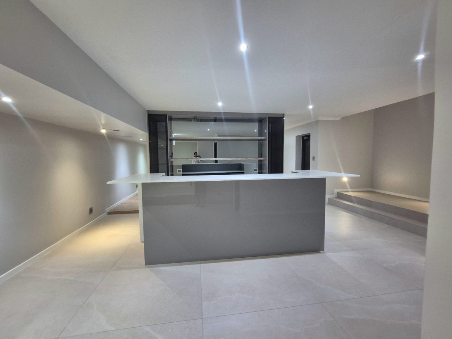 Grand Entrance Hall: A striking floor-to-ceiling glass atrium welcomes you with warmth and light, setting the tone for this exquisite home.