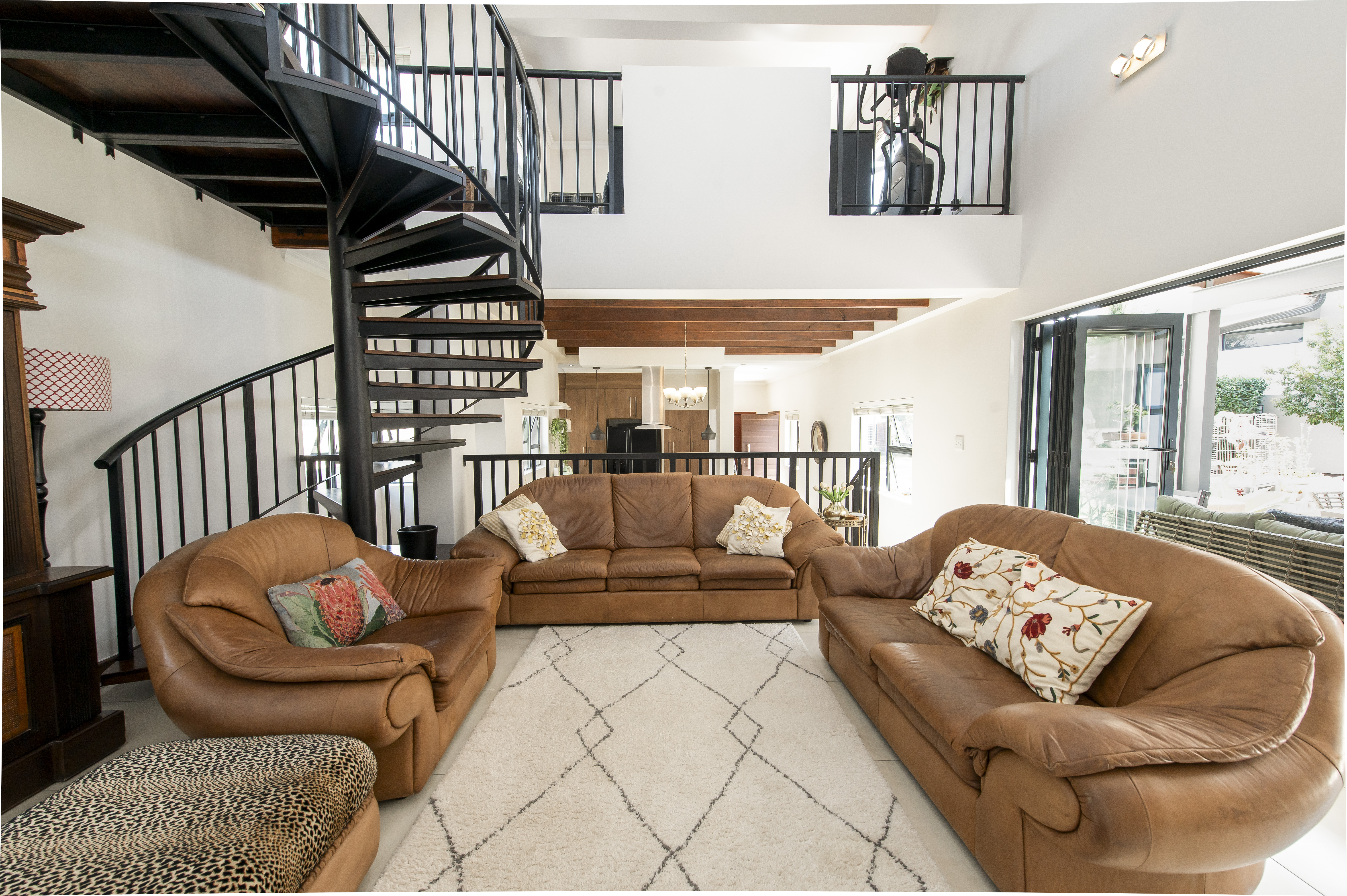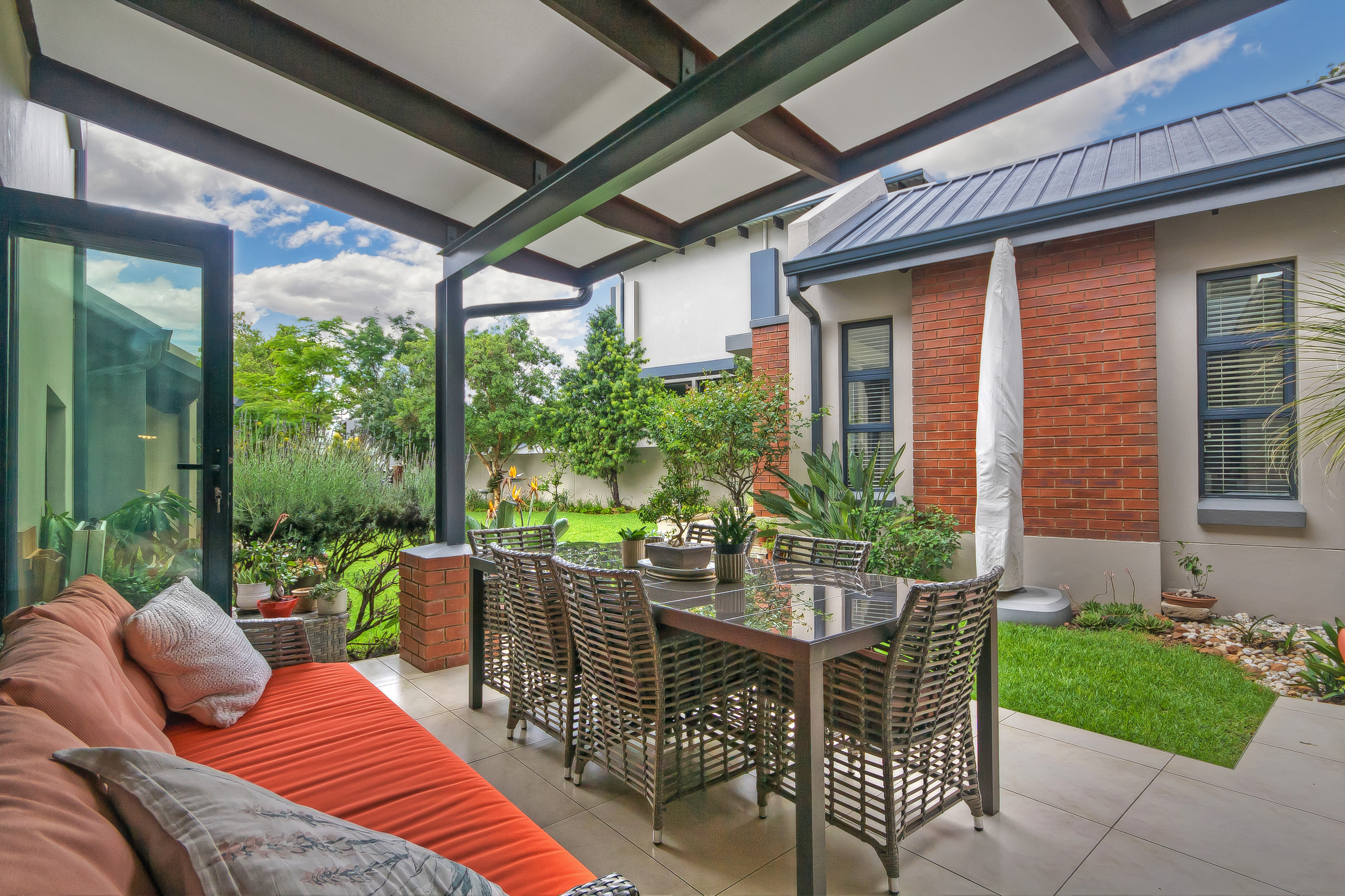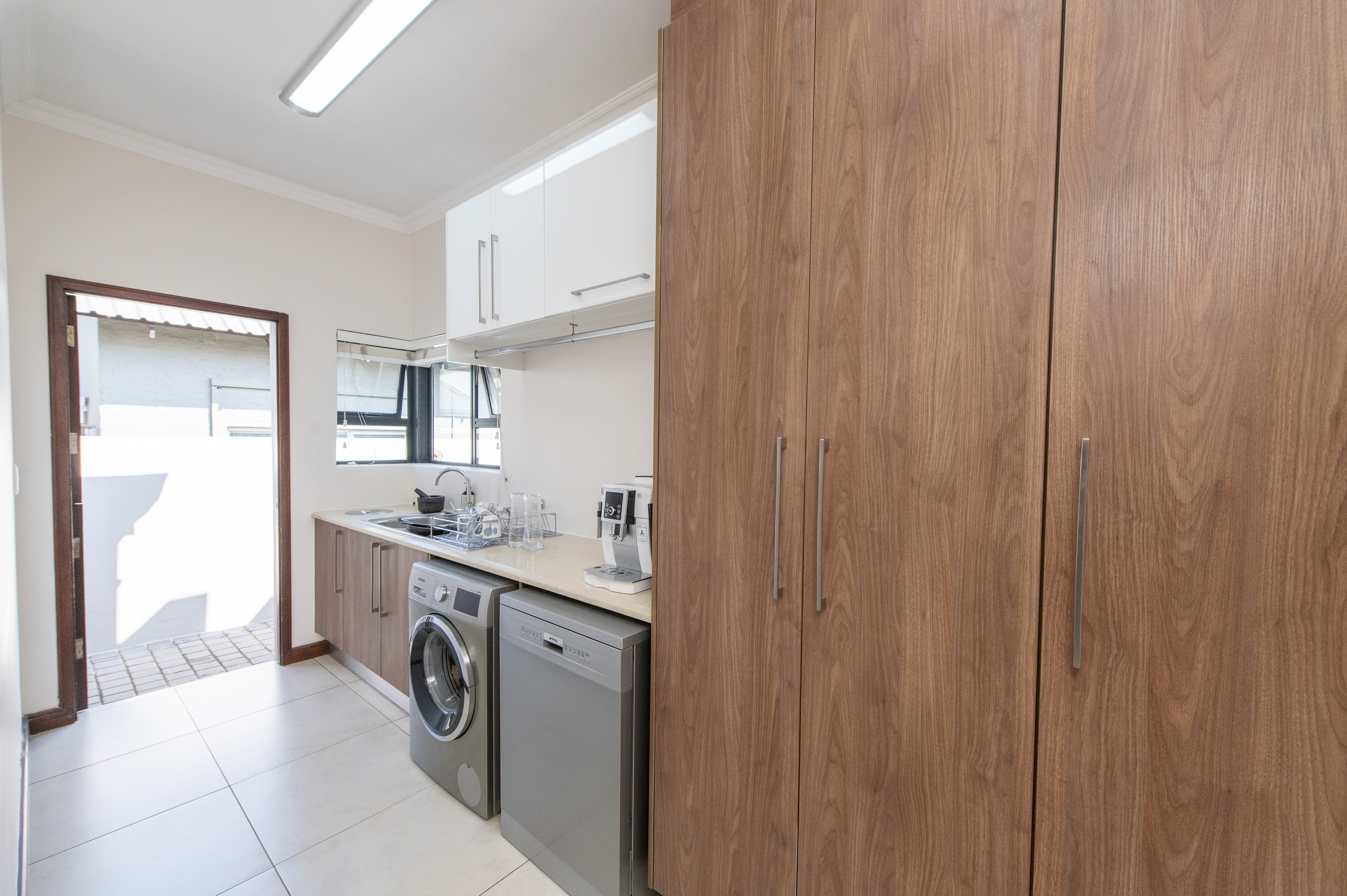 This home is brimming with efficiency and modern conveniences. Highlights include a Double automated garage with direct entrance to the home as well as additional paved parking, a 5kV inverter system with 12 solar panels, 5 strategically placed jet air conditioners, Fenster double-glazed windows fitted with shutter blinds, a gas geyser with pressure pump, and a backup water system. A grey water system keeps the garden lush and green year-round. There is also a staff ablution facility set alon the side of the house.