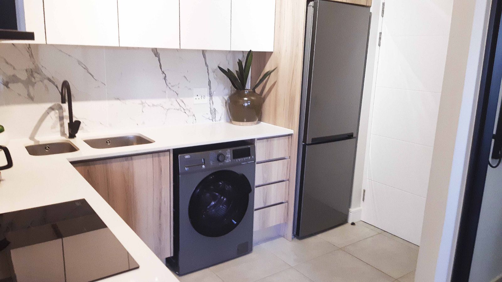 Discover Munyaka. This 1-bedroom, 1-bathroom first-floor apartment offers 39m2 of interior space plus a 2m2 private balcony. Designed with a sleek Scandinavian-style kitchen, it comes fully equipped with a fridge, washer/dryer, tumble dryer, an electric oven with hob and Caesar stone work surfaces.