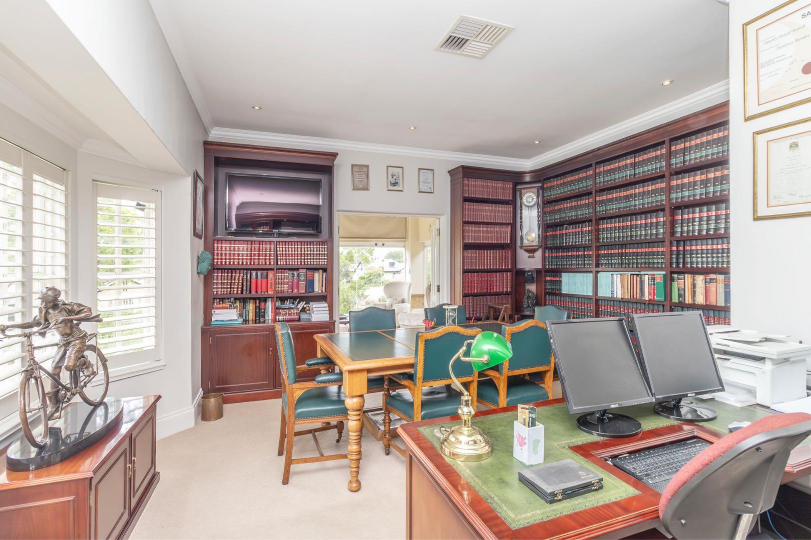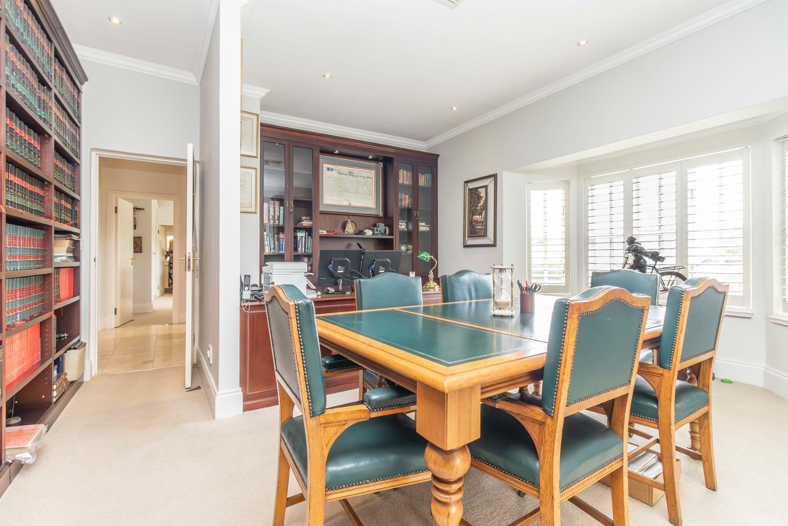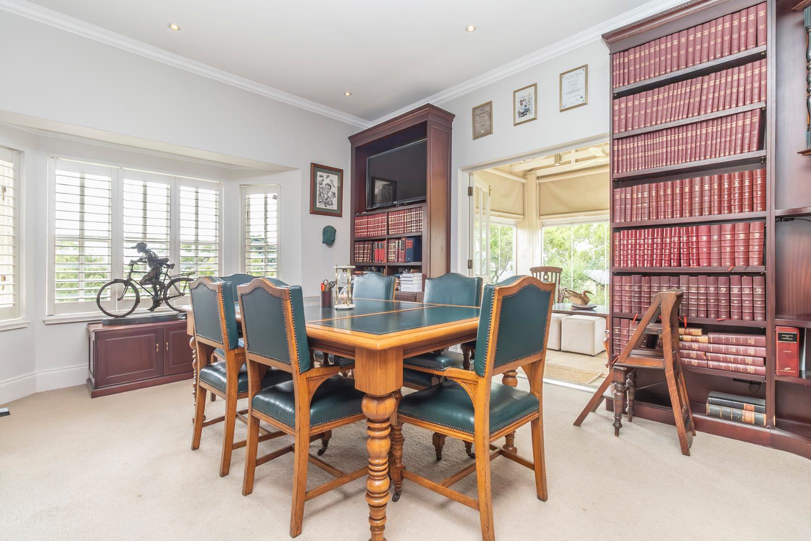 A beautifully crafted, custom-designed study currently serves as a home office, or it can be used as an additional bedroom, Classic French doors provide seamless access to the patio and its close proximity to the second bathroom makes it an ideal space to transform into a comfortable guest bedroom.