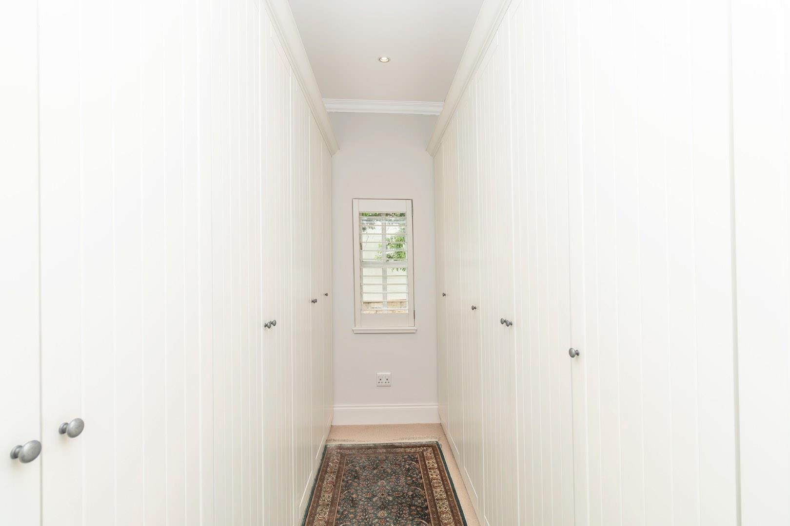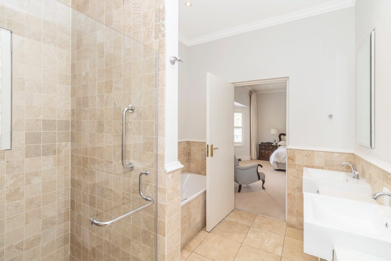 The main bedroom suite, perfectly positioned to the north, offers a restful retreat with its lovely, shuttered bay window, ample cupboards and elegant full en-suite bathroom.