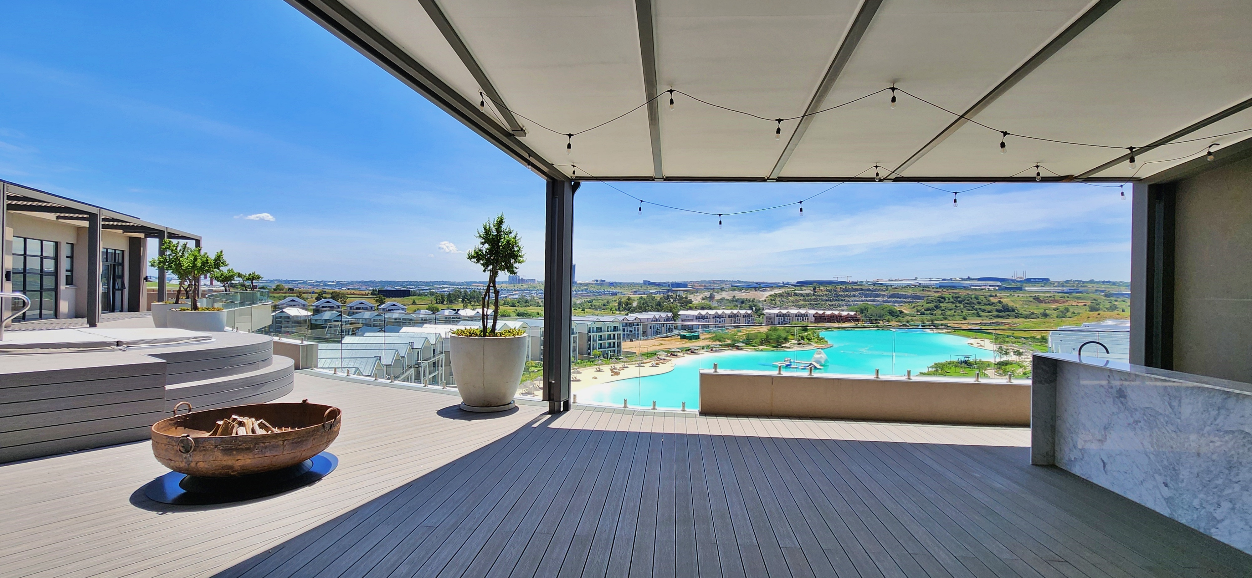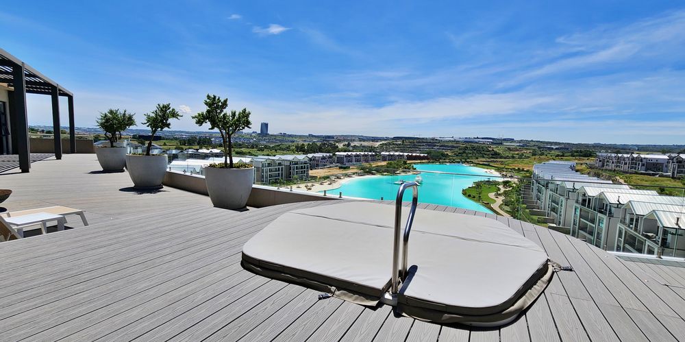 Located on the 5th floor above the breathtaking Blue Lagoon and pristine soft white beach, this BRAND SPANKING NEW Signature Penthouse is a masterpiece of true luxury and elegance. Offering sweeping vistas of the Waterfall City and Sandton skylines, this residence embodies opulent urban living, providing an unparalleled lifestyle of comfort and sophistication. Perfect for those investors abroad looking for a Holiday Retreat or a modern-day family wanting a lock-Up and Go Residence.