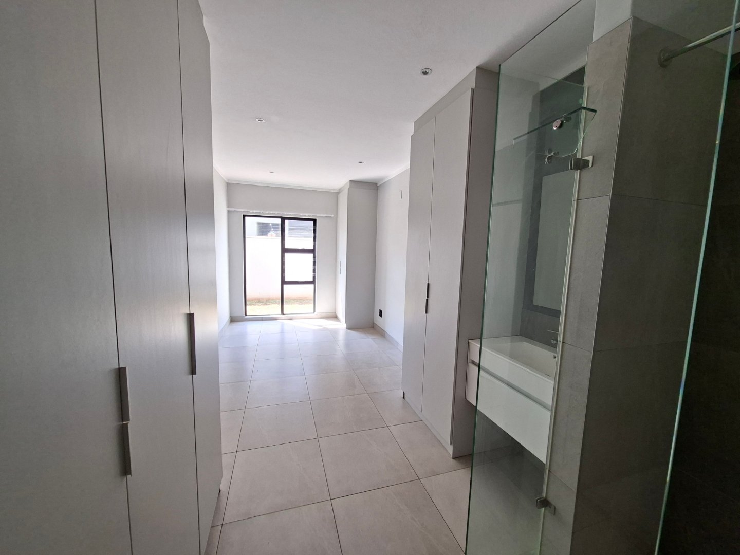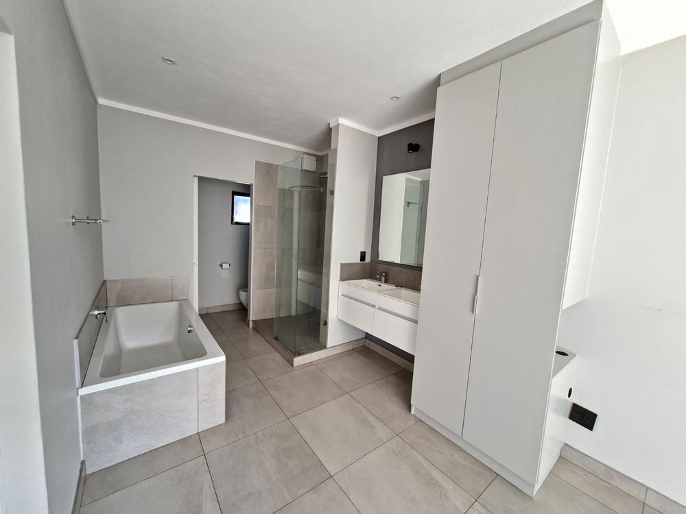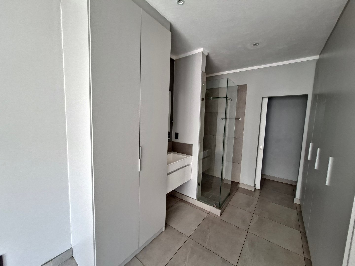 The two bedrooms are well-proportioned and feature tiled flooring, large windows, and built-in cupboards that offer excellent storage solutions. The main bedroom includes an en-suite bathroom.The main bathroom includes a full-sized bathtub, a large vanity with an integrated basin, and a separate walk-in shower with a glass enclosure. The second bathroom also has a walk-in shower with a glass enclosure and a vanity with a basin.