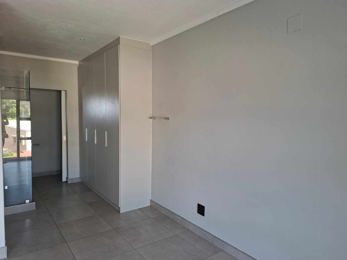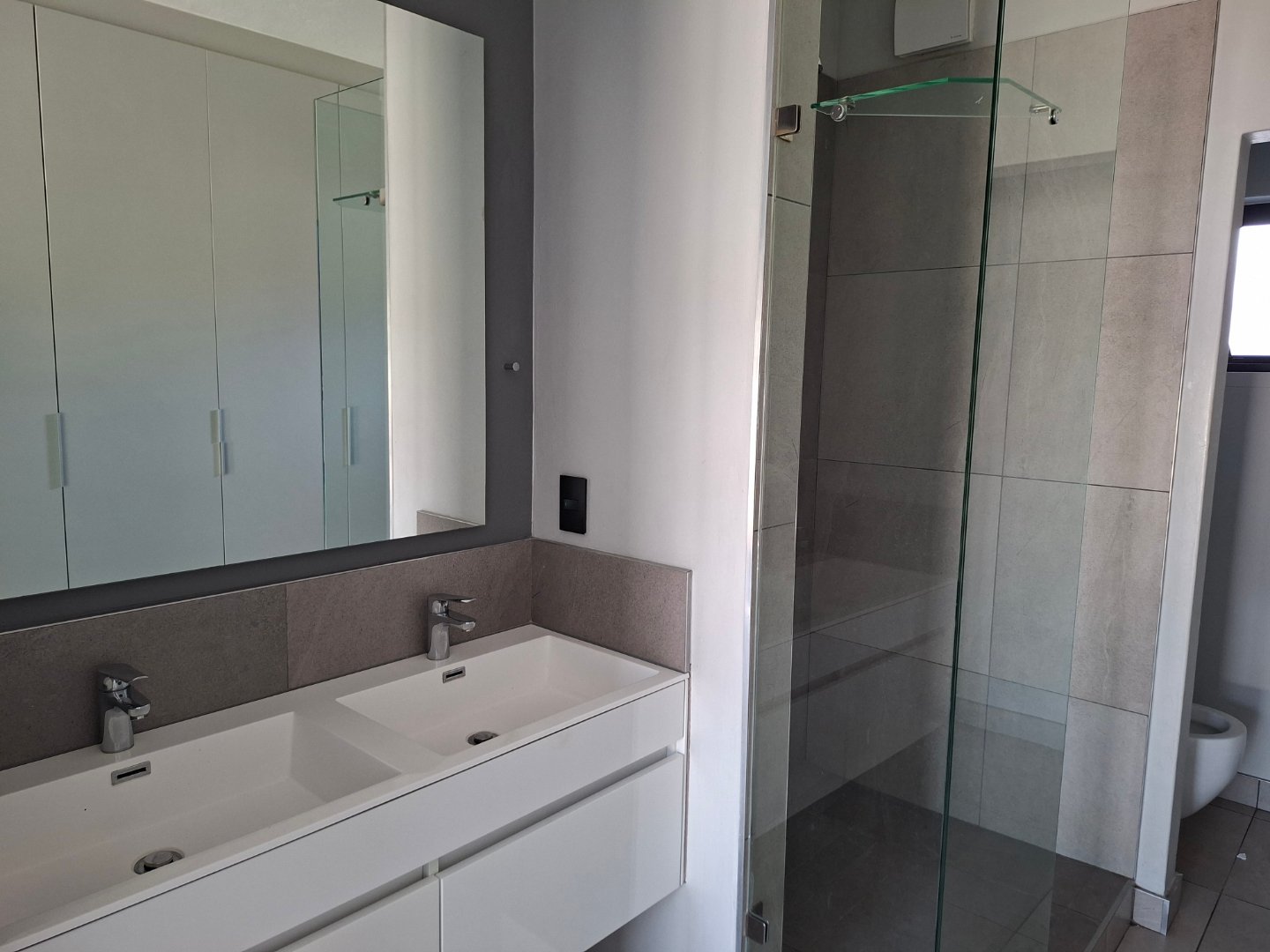 The bedroom includes an en-suite bathroom.The bathroom includes a large vanity with an integrated basin, and a separate walk-in shower with a glass enclosure The bedroom can easily be converted to be more private.