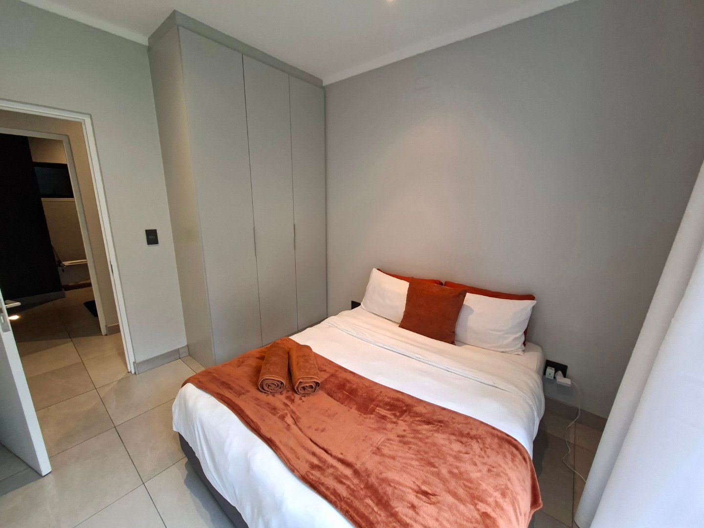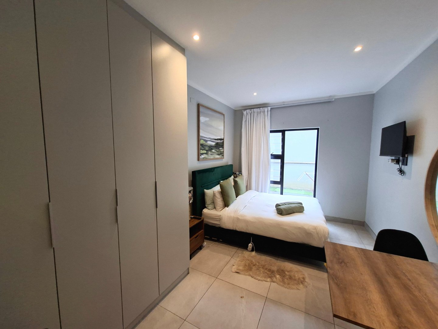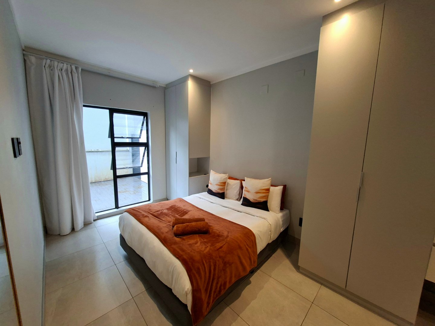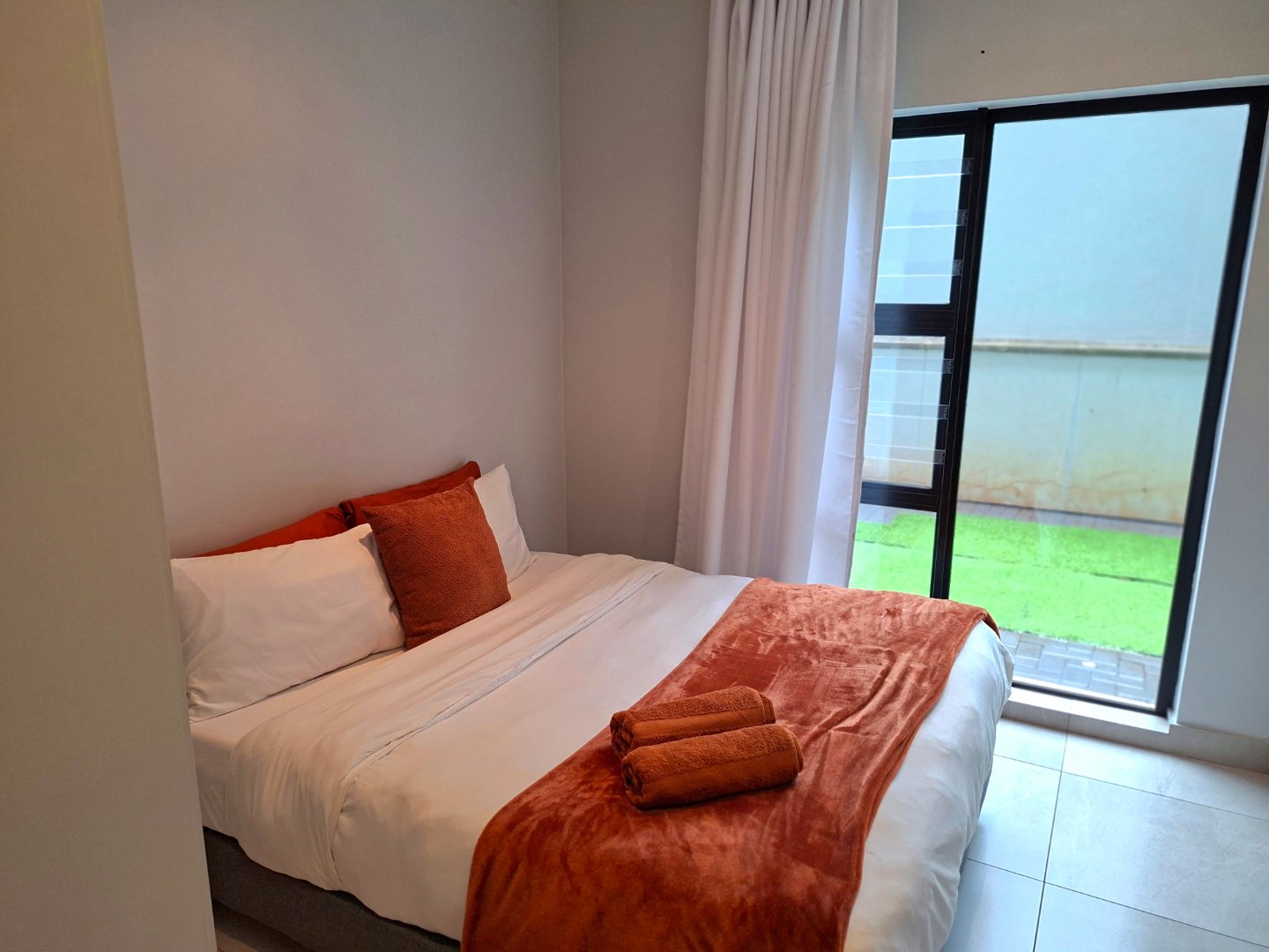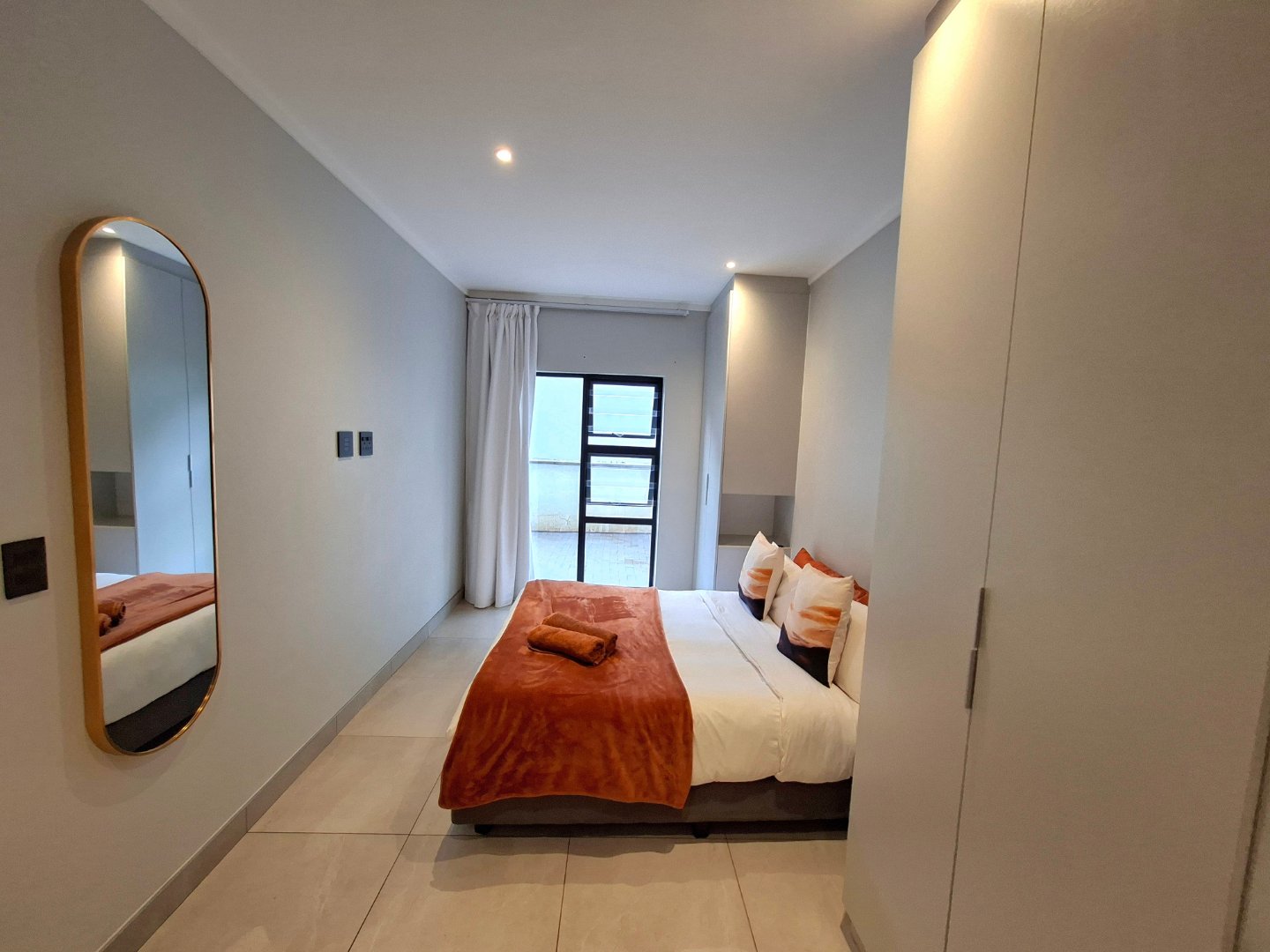 The two bedrooms are well-proportioned and feature tiled flooring, large windows, and built-in cupboards that offer excellent storage solutions. The main bedroom includes an en-suite bathroom.The main bathroom includes a large vanity with an integrated basin, and a separate walk-in shower with a glass enclosure. The second bathroom also has a walk-in shower with a glass enclosure and a vanity with a basin.