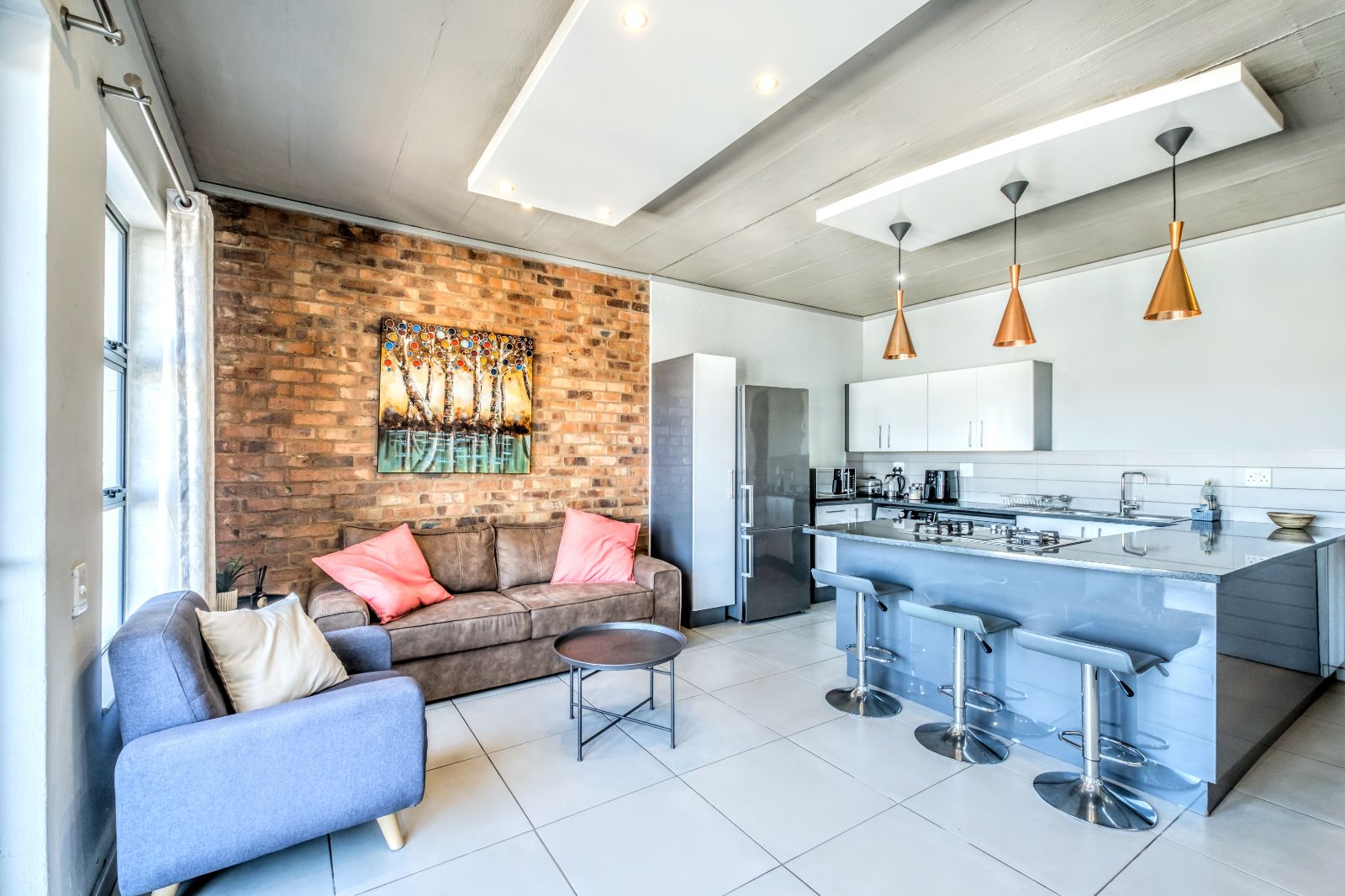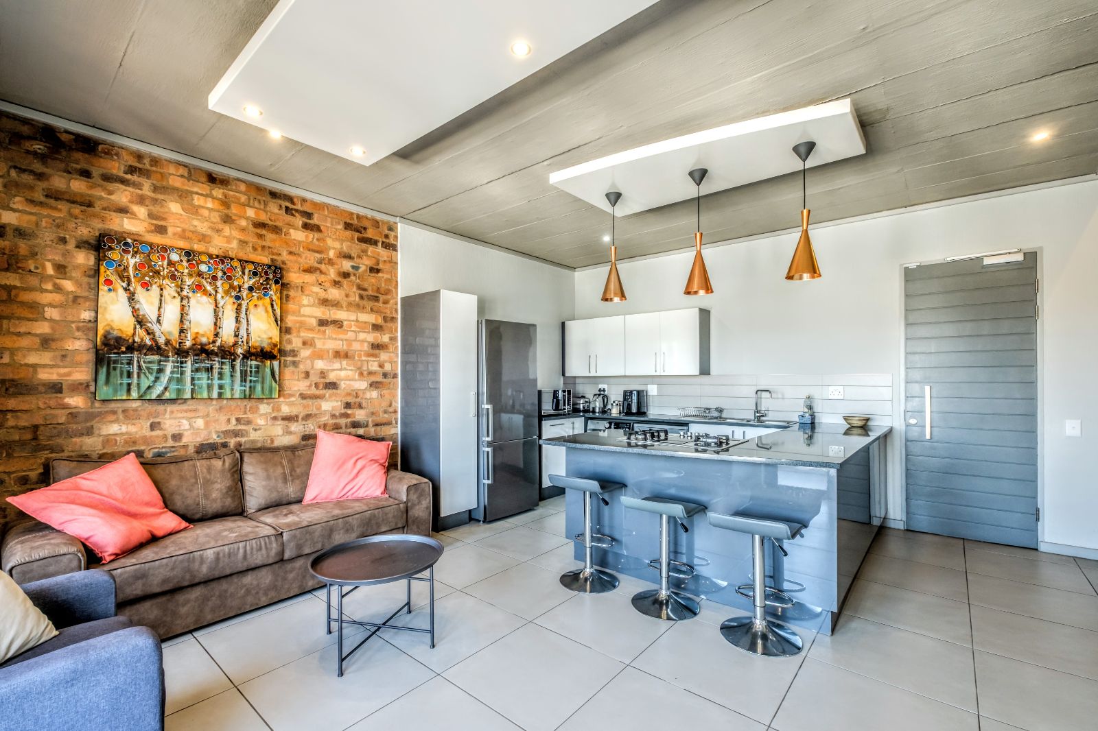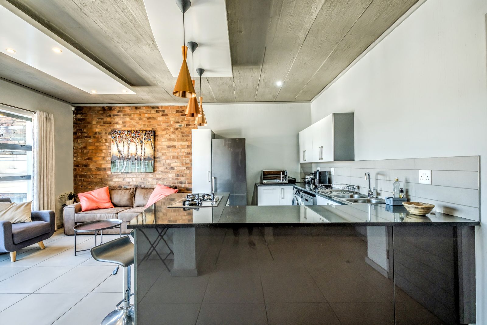 From the moment you enter, you're welcomed into a sunlit, open-plan layout where form meets function. At the heart of the living area is a stylish central kitchen island, perfectly positioned to serve both the lounge and the covered balcony—complete with a built-in braai, perfect for entertaining or relaxing with sundowners.