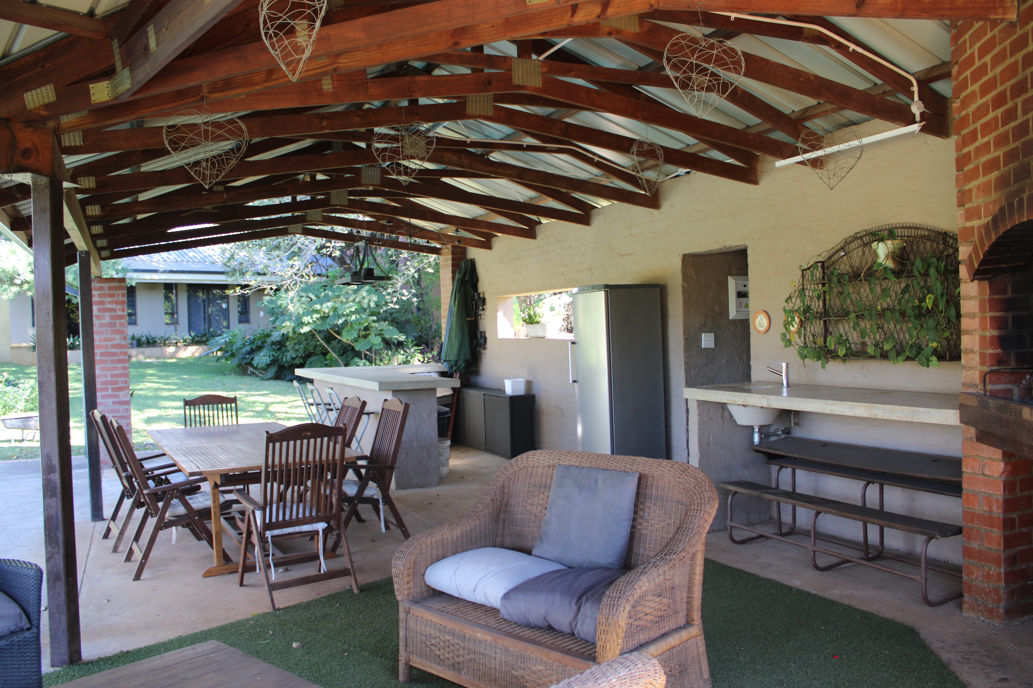 Complementing the main homes are three fully let chalets, each earning approximately R7,500 per month. Every chalet features two bedrooms, one and a half bathrooms, a kitchen, lounge, and guest toilet—ensuring consistent monthly income and flexible accommodation for guests or staff.