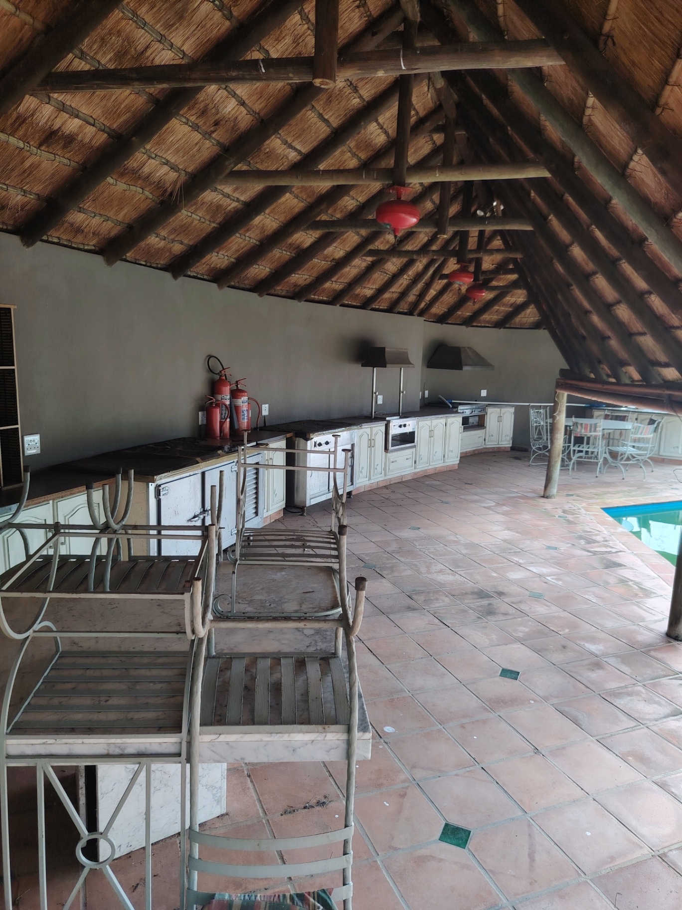 Outside, the sprawling grounds are a true highlight. Lush, manicured gardens surround a sparkling swimming pool, creating a private oasis for leisure and enjoyment. An expansive entertainment patio provides the perfect setting for al fresco dining, sundowners, or hosting memorable gatherings, all while enjoying the picturesque Waterkloof Heights scenery. Very large cartering lapa with all the possible buffet equipment included