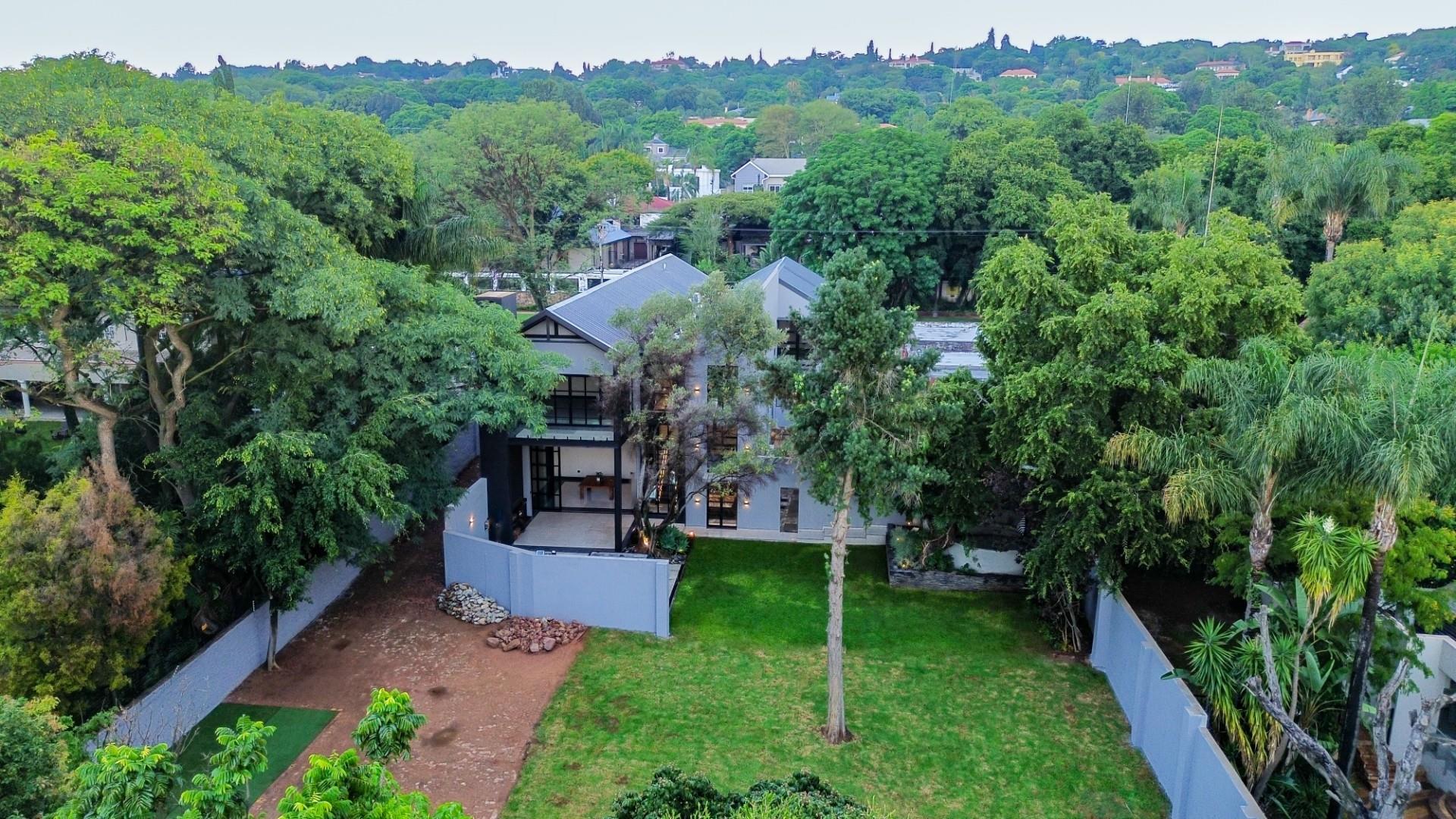Over 1,000m2 of landscaped gardens with automated irrigation, sparkling pool, firepit/boma, and spacious dining terrace.