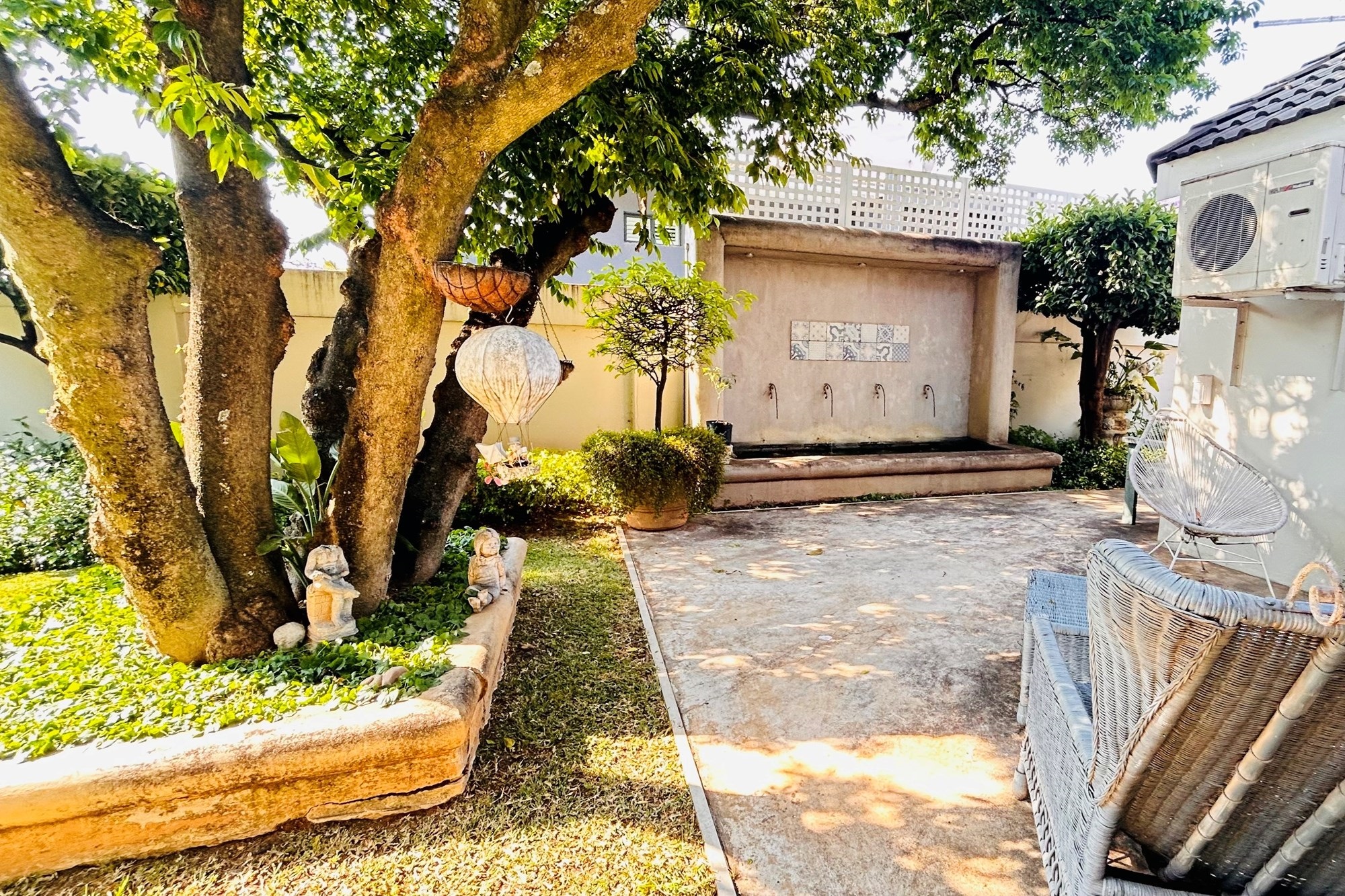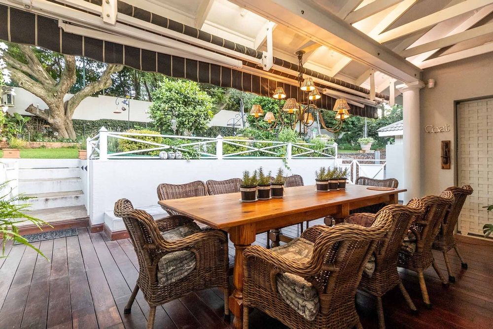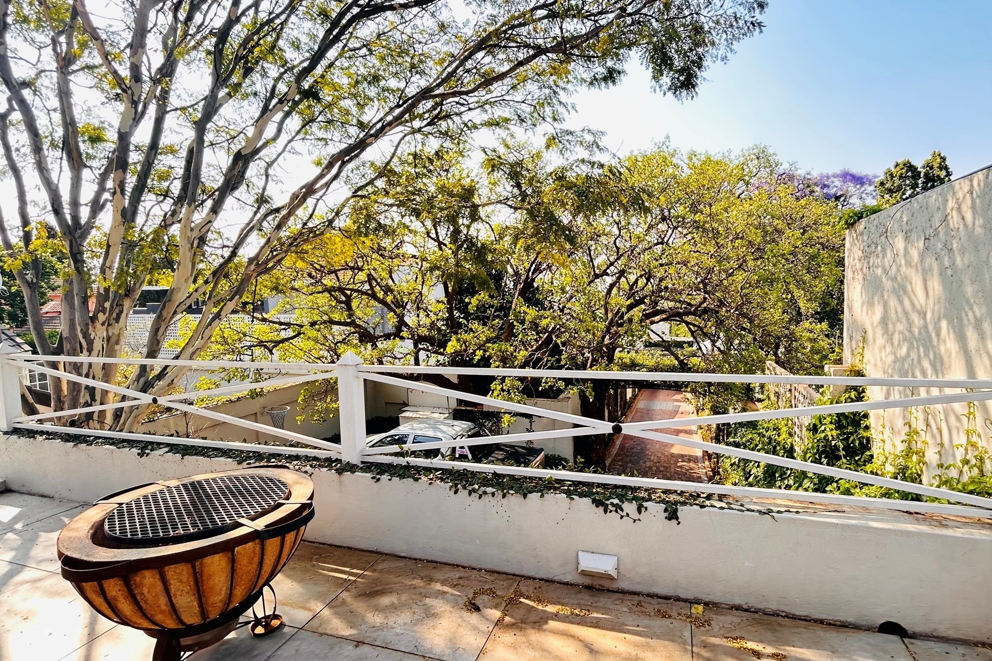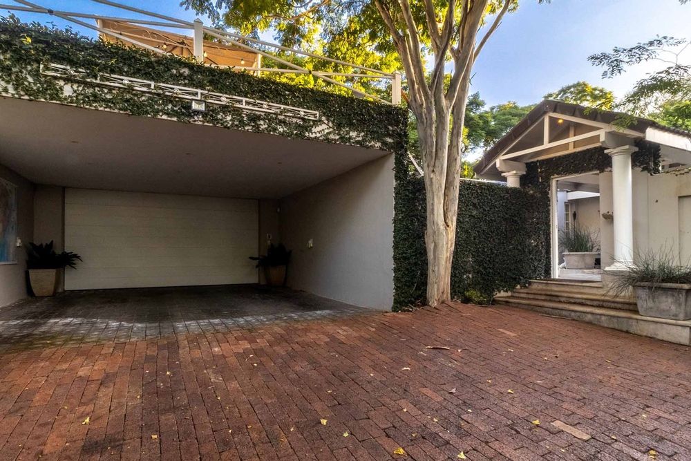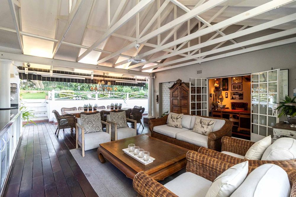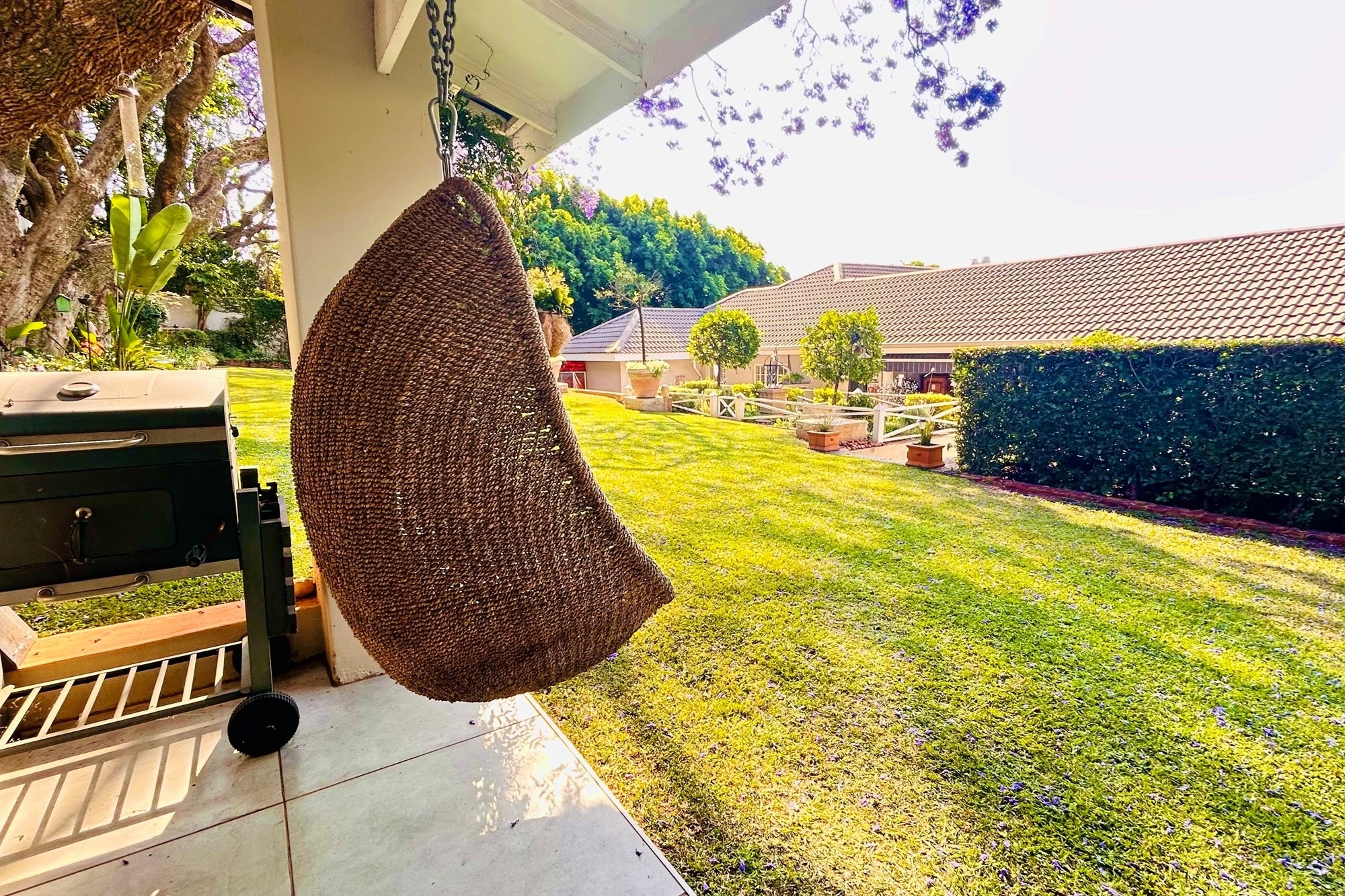 The private quarters are as exceptional as the living spaces. A massive master suite awaits with a generously sized dressing room, a beautifully styled bathroom featuring a freestanding bathtub, and a double walk-in shower. Step out to a tranquil, private courtyard with a soothing water feature, creating a personal sanctuary just steps from the bedroom. Two additional, elegantly appointed bedrooms offer their own sense of privacy, one with garden access leading to a grand boma area. The perfect spot for an evening around the fire, this outdoor space overlooks the lush lawn framed by towering jacaranda trees.
