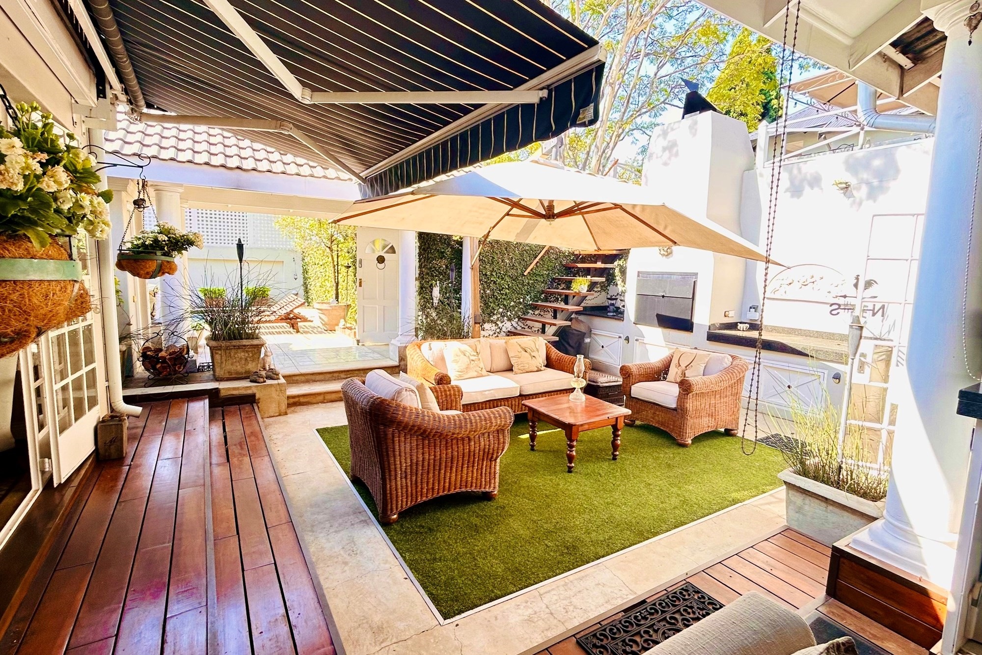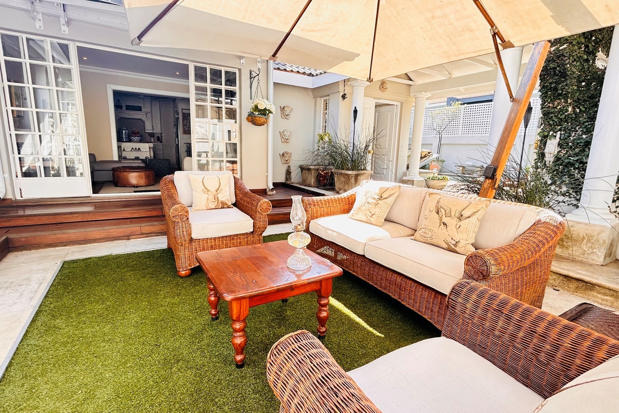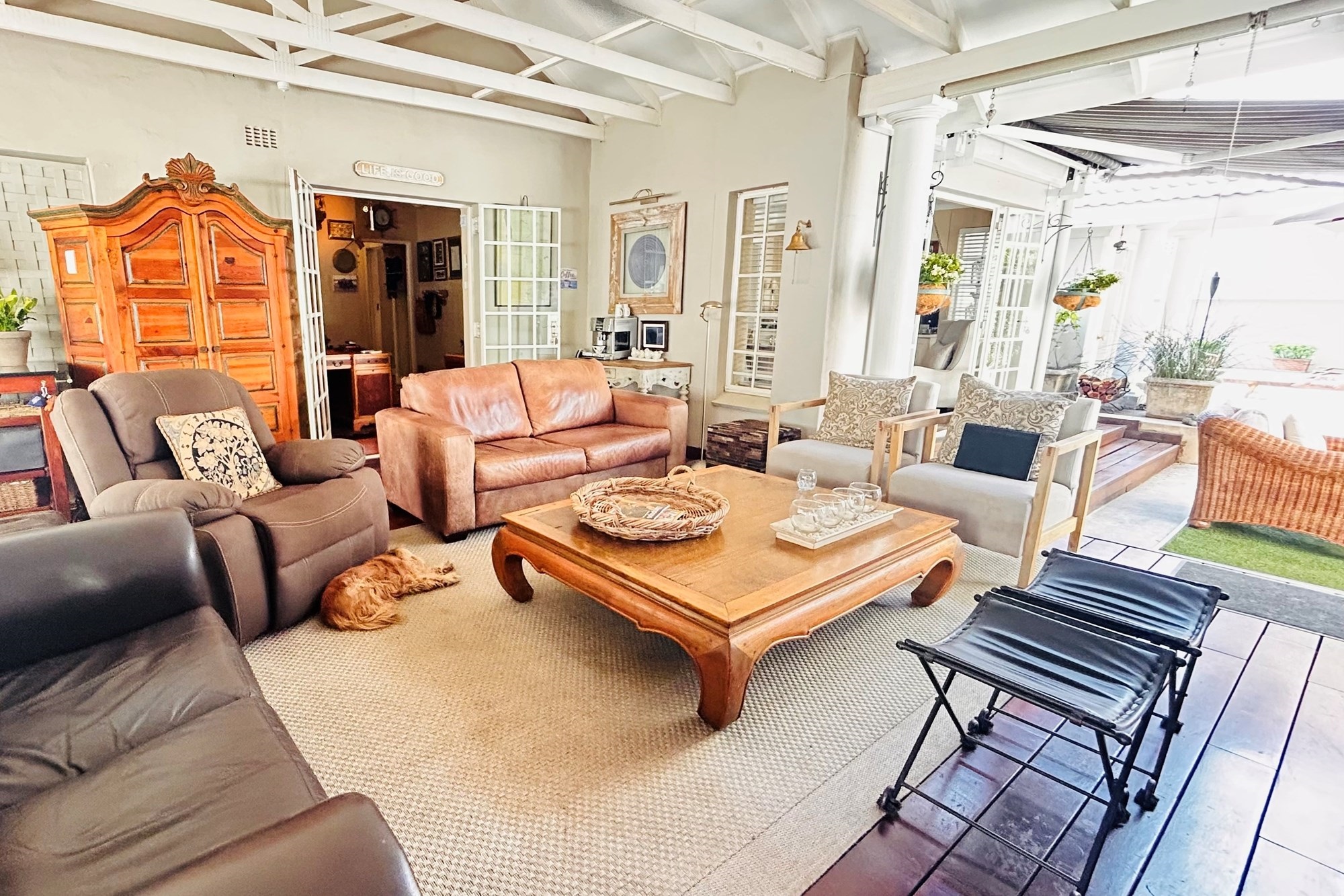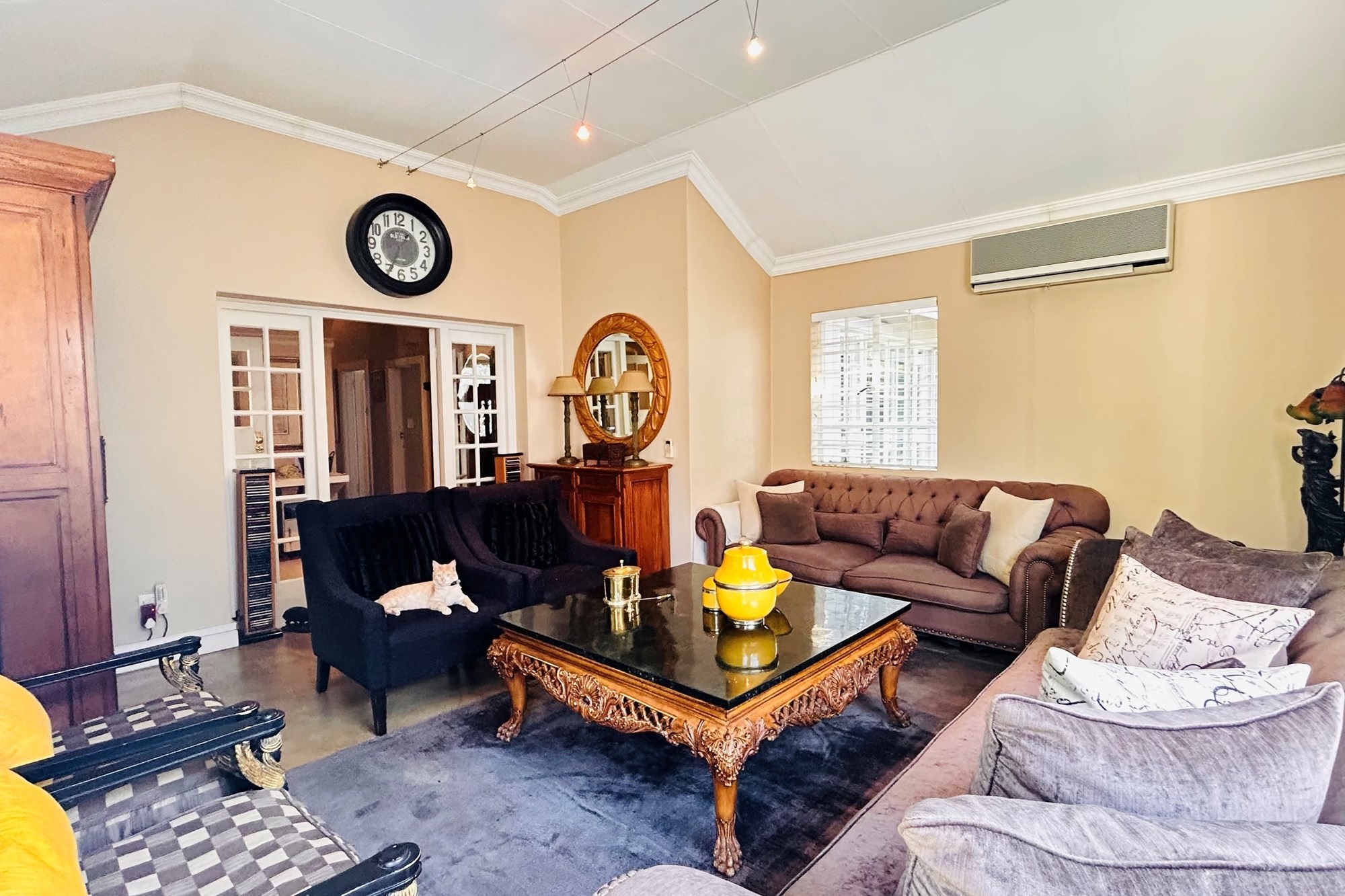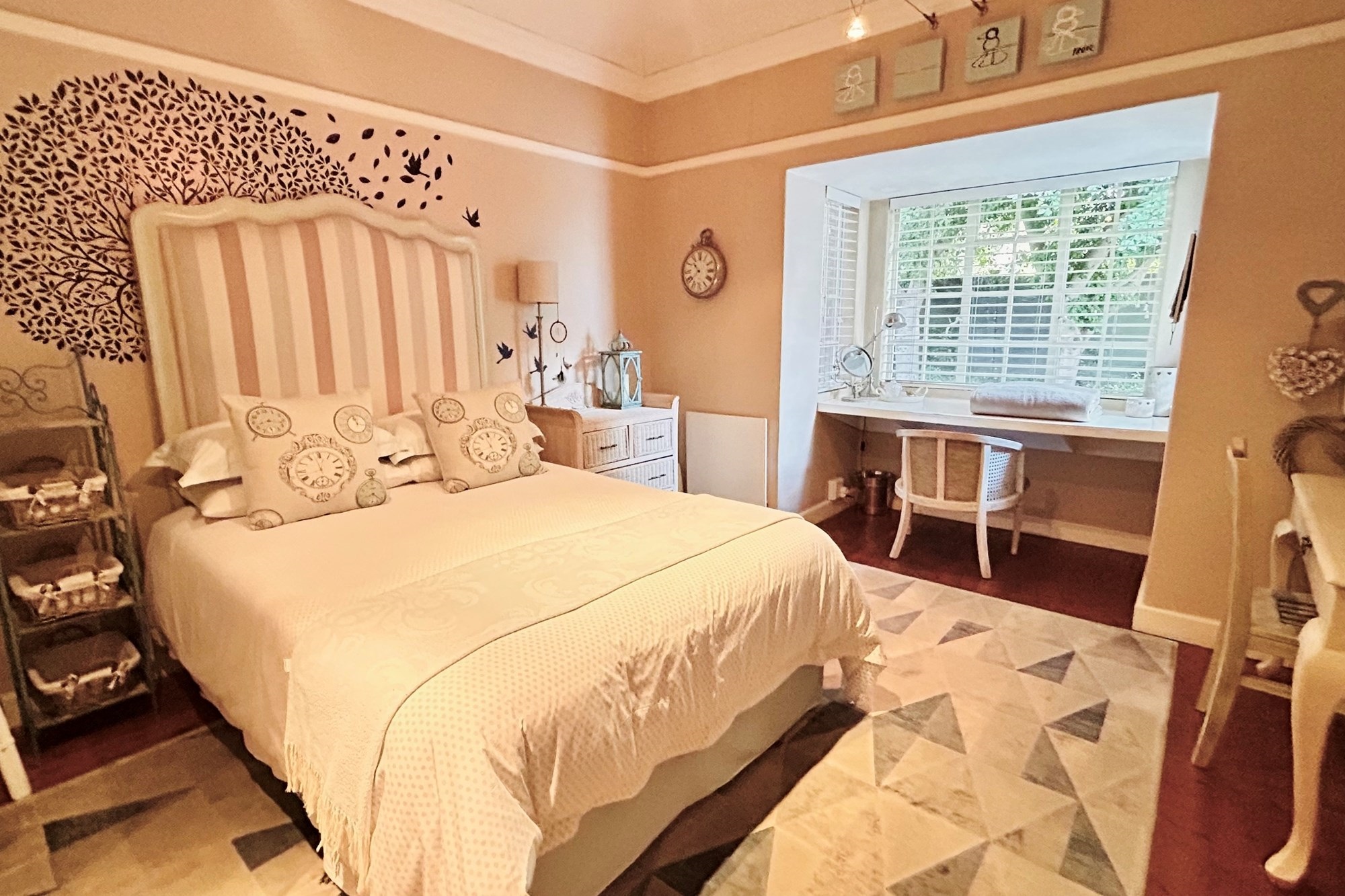 Tucked away in a peaceful corner of the garden, a charming flatlet offers a Cape-style retreat. Surrounded by trees and furnished with an ensuite, coffee station, and air conditioning, this standalone unit boasts an outdoor seating and braai area, ideal for guests or extended family. With a bright white, Winelands-inspired aesthetic, it’s a slice of pure serenity.