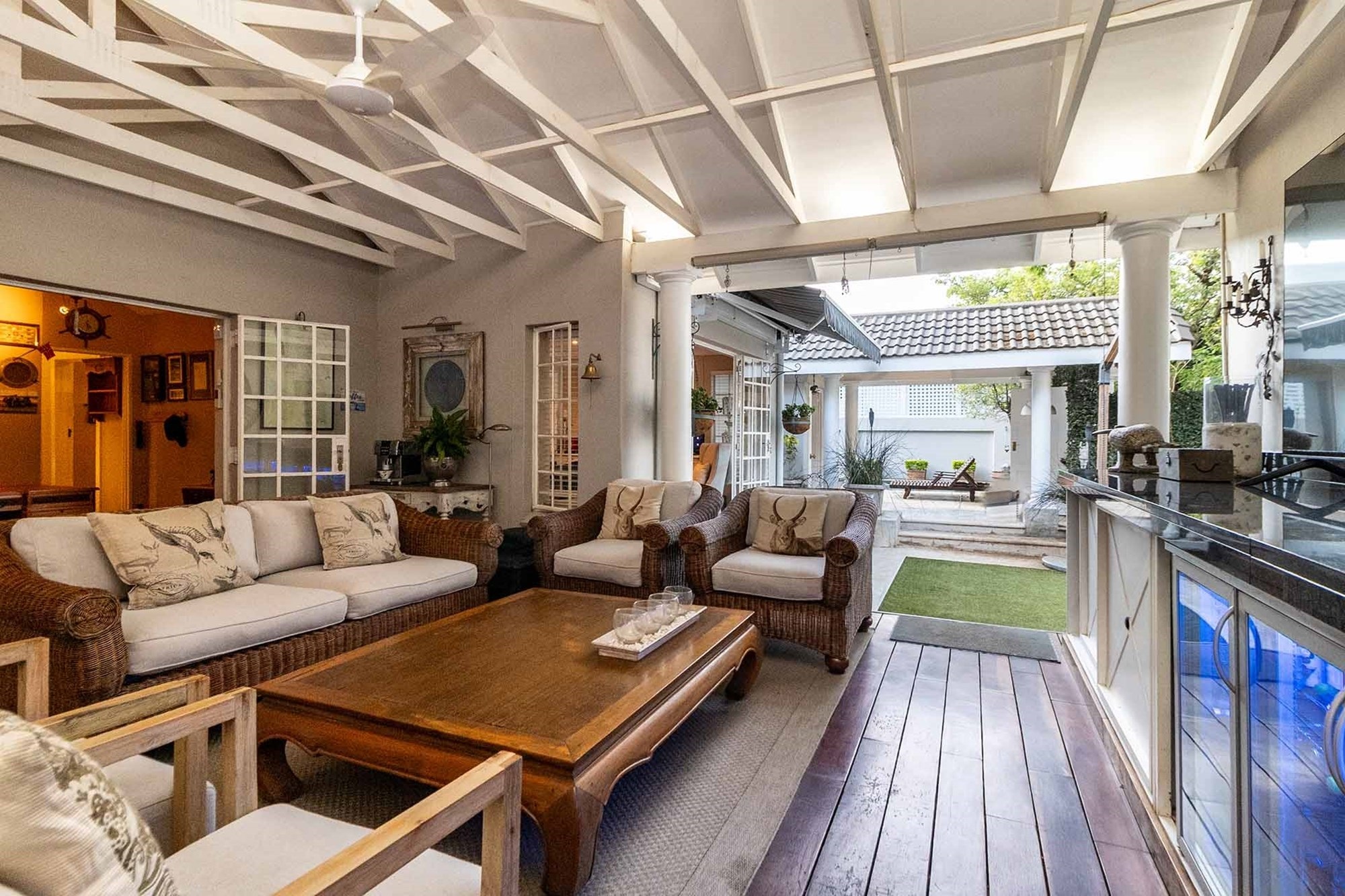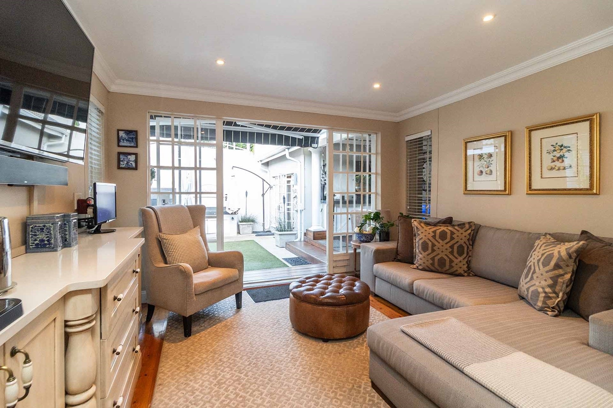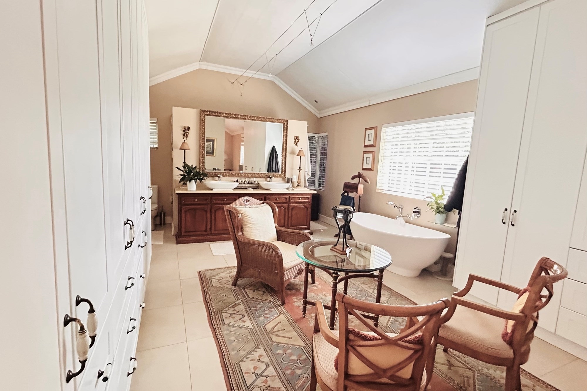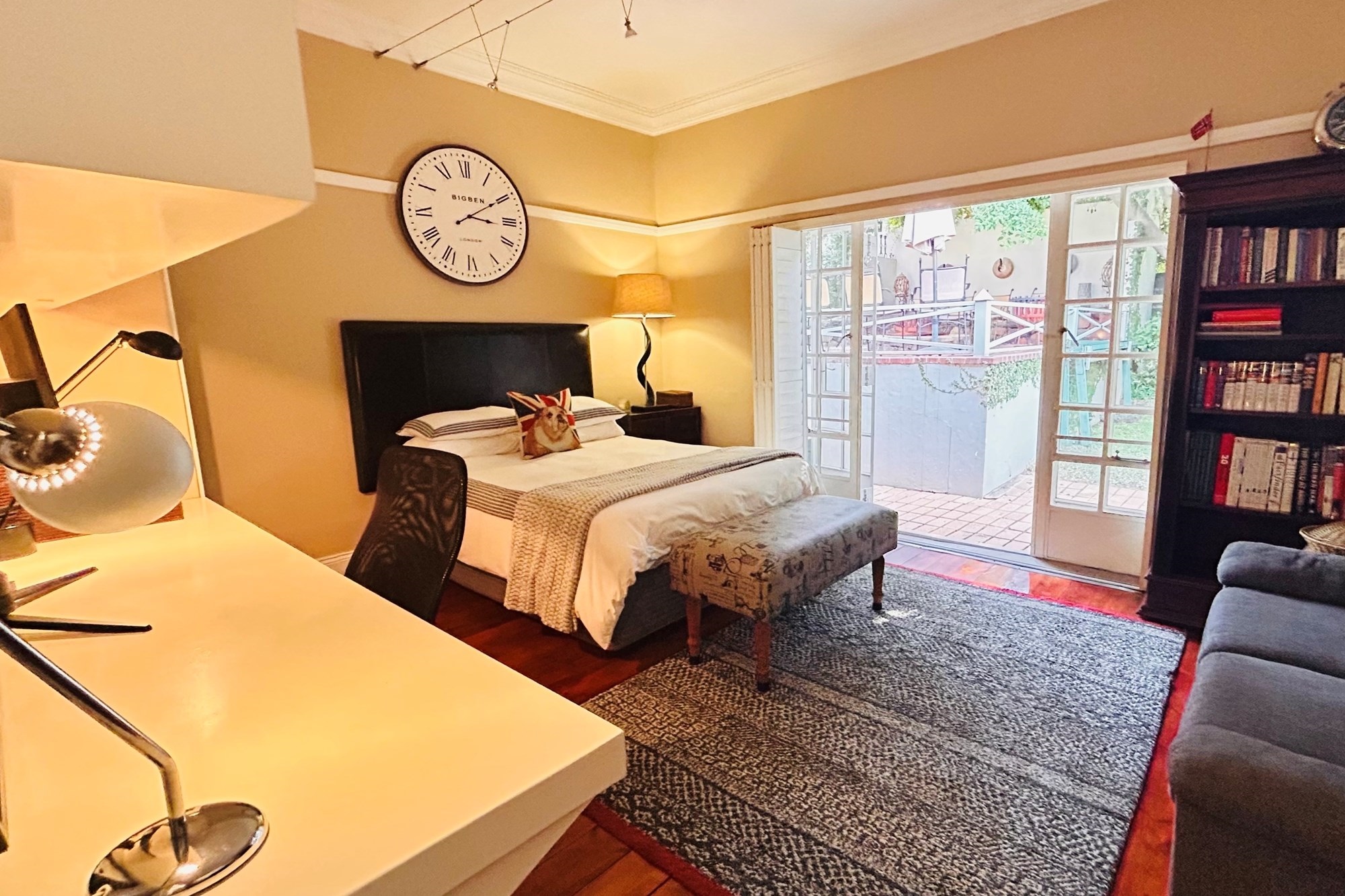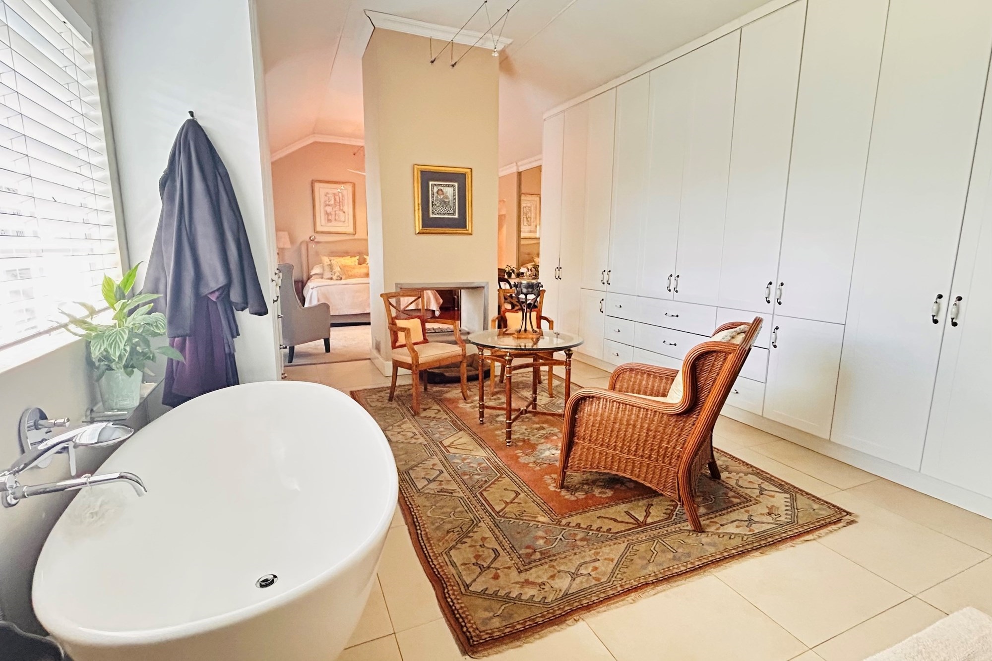 Tucked away in a peaceful corner of the garden, a charming flatlet offers a Cape-style retreat. Surrounded by trees and furnished with an ensuite, coffee station, and air conditioning, this standalone unit boasts an outdoor seating and braai area, ideal for guests or extended family. With a bright white, Winelands-inspired aesthetic, it’s a slice of pure serenity.
