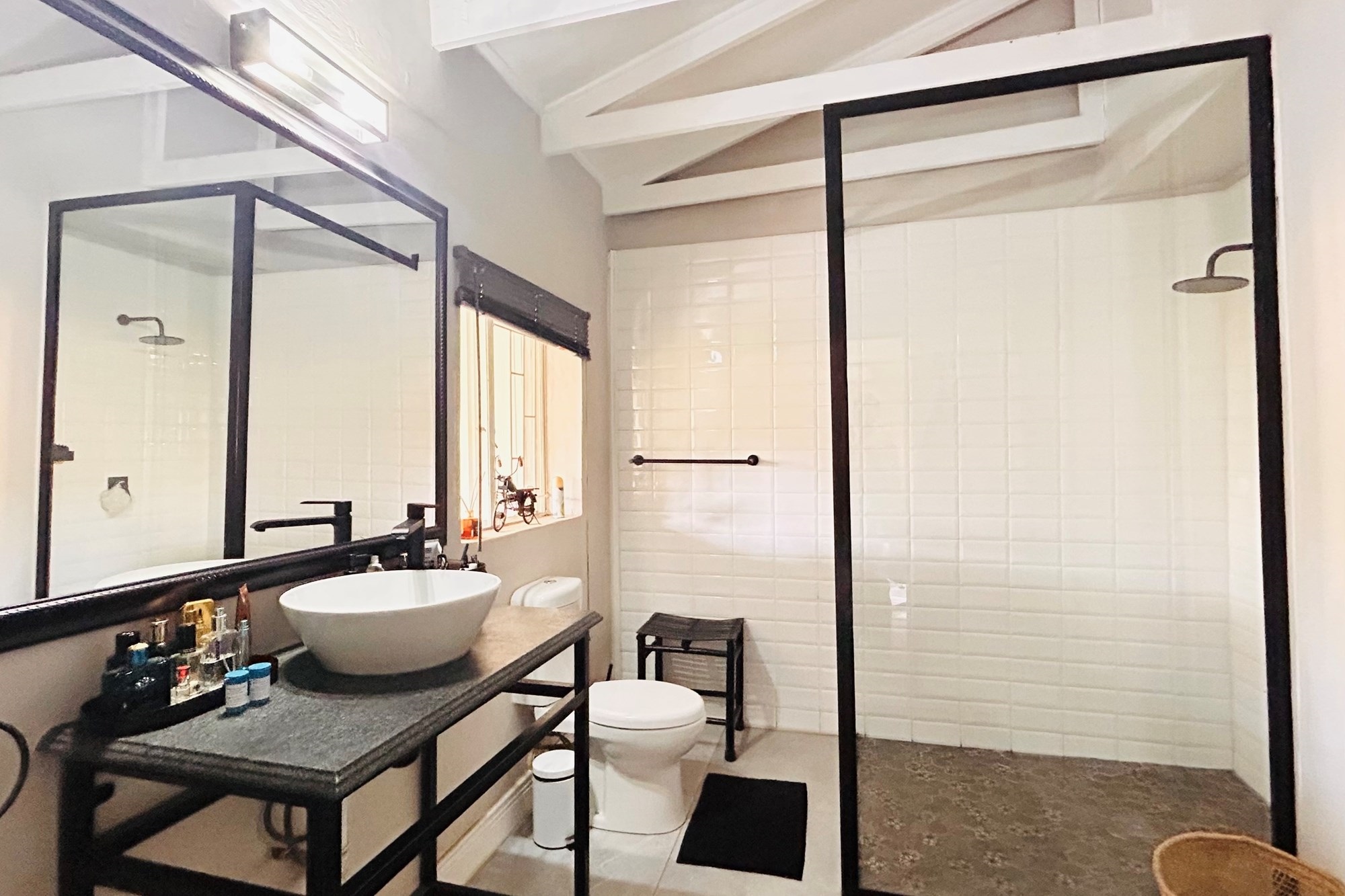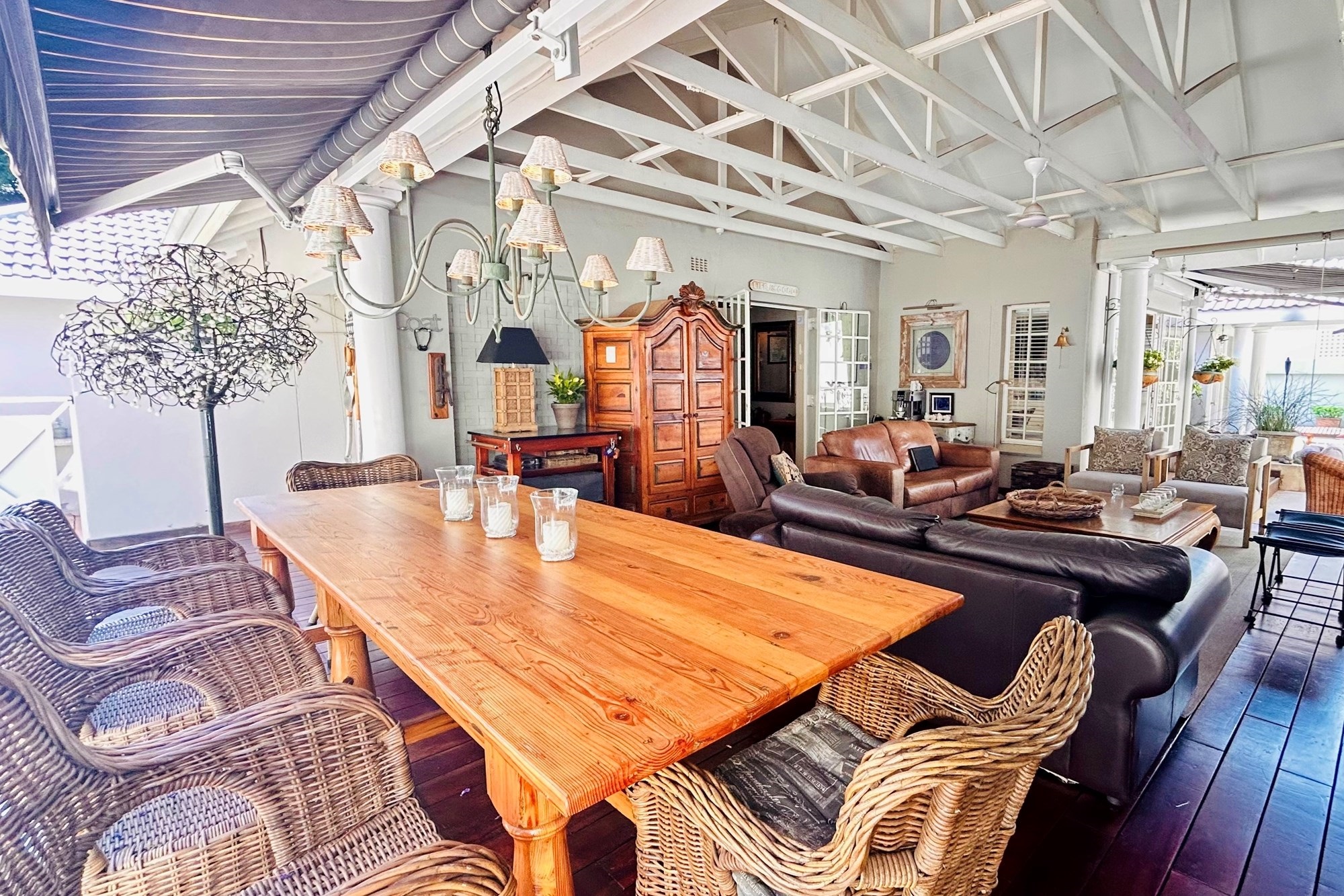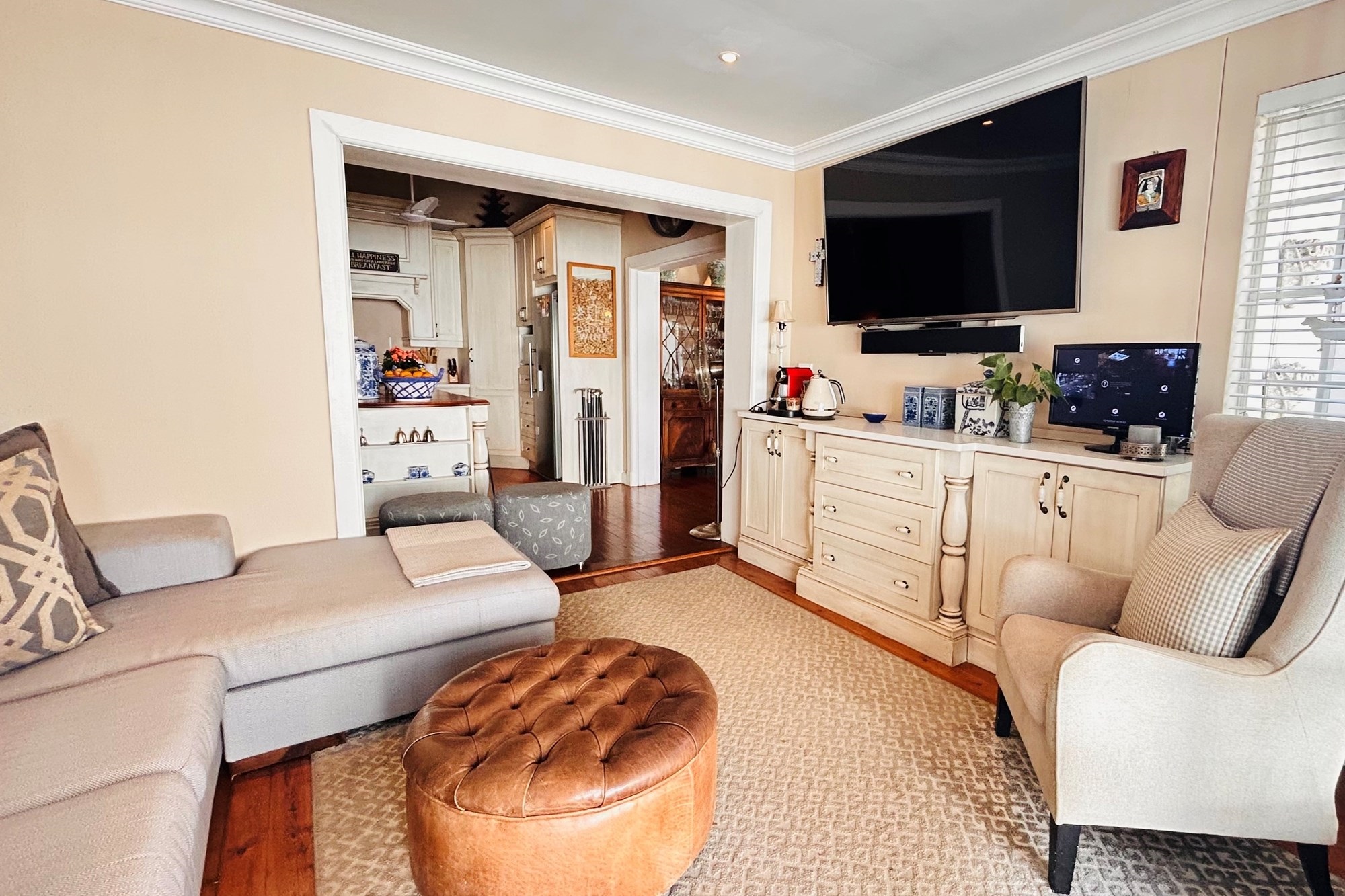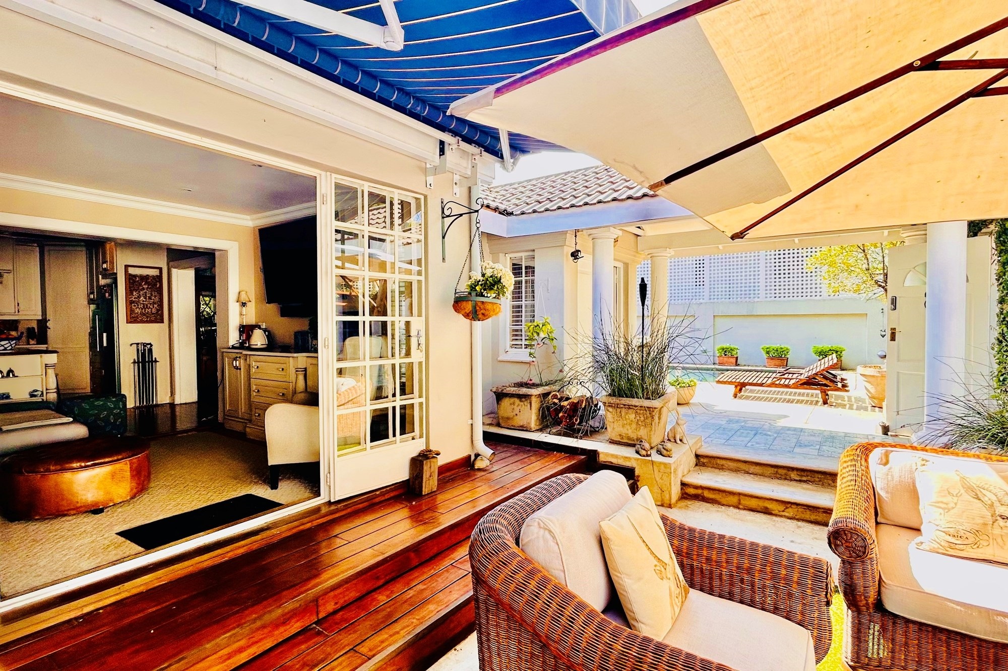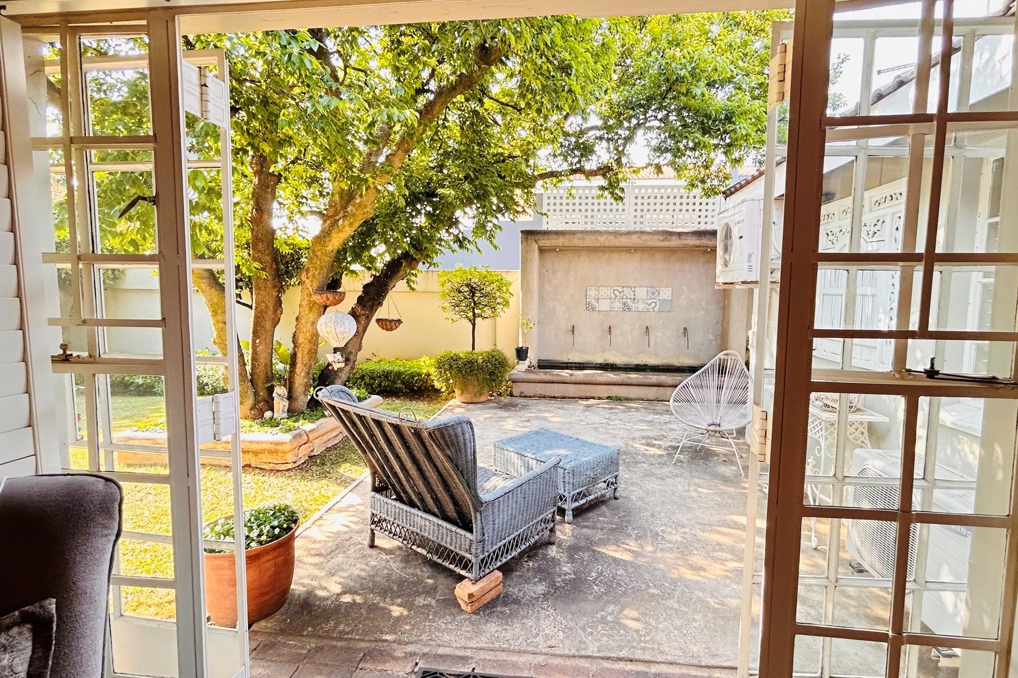 Tucked away in a peaceful corner of the garden, a charming flatlet offers a Cape-style retreat. Surrounded by trees and furnished with an ensuite, coffee station, and air conditioning, this standalone unit boasts an outdoor seating and braai area, ideal for guests or extended family. With a bright white, Winelands-inspired aesthetic, it’s a slice of pure serenity.