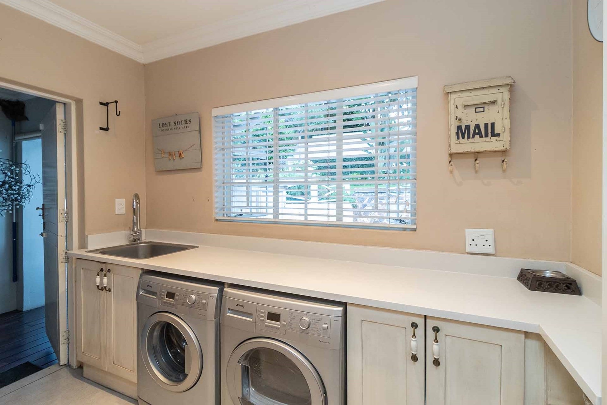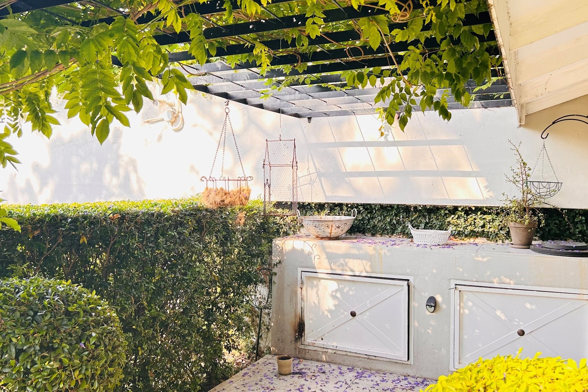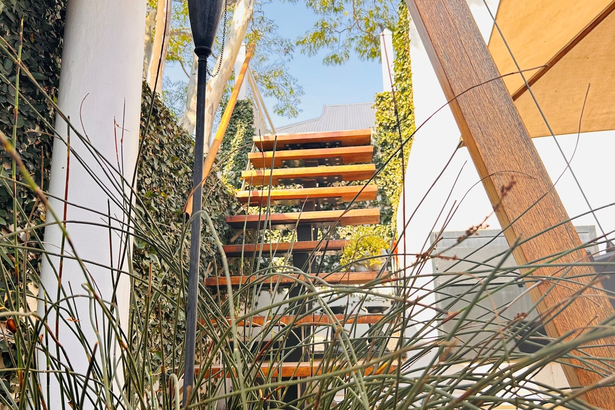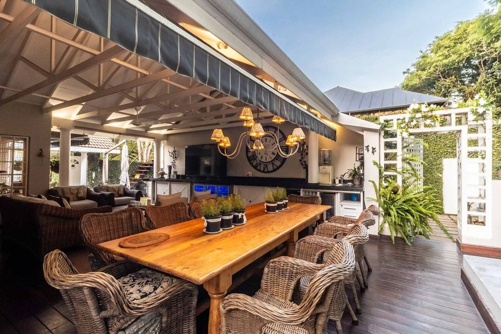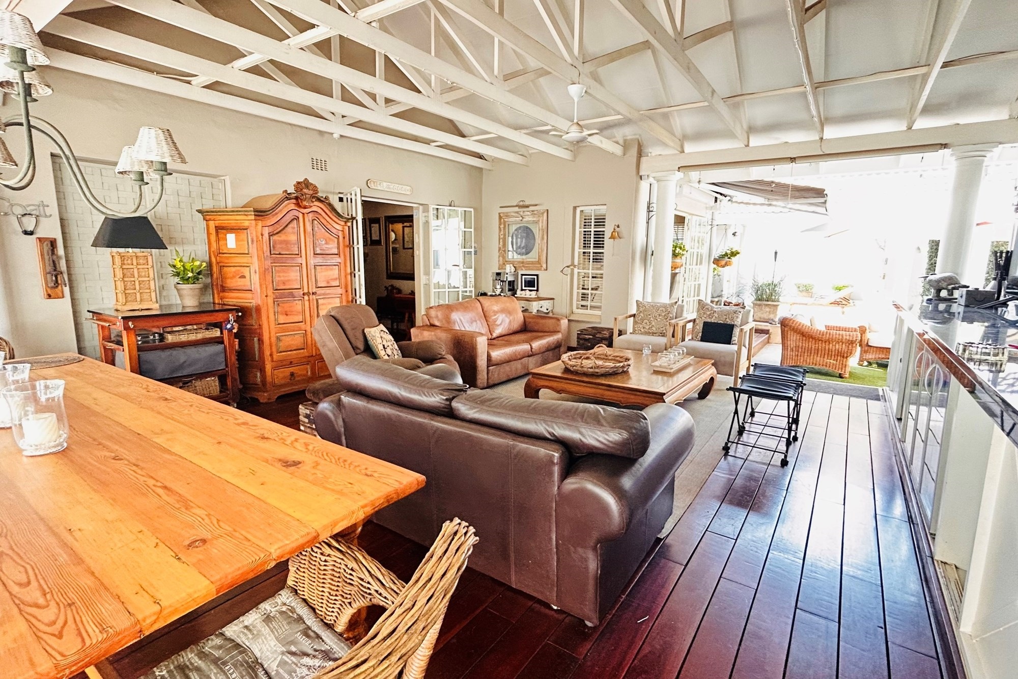 Tucked away in a peaceful corner of the garden, a charming flatlet offers a Cape-style retreat. Surrounded by trees and furnished with an ensuite, coffee station, and air conditioning, this standalone unit boasts an outdoor seating and braai area, ideal for guests or extended family. With a bright white, Winelands-inspired aesthetic, it’s a slice of pure serenity.