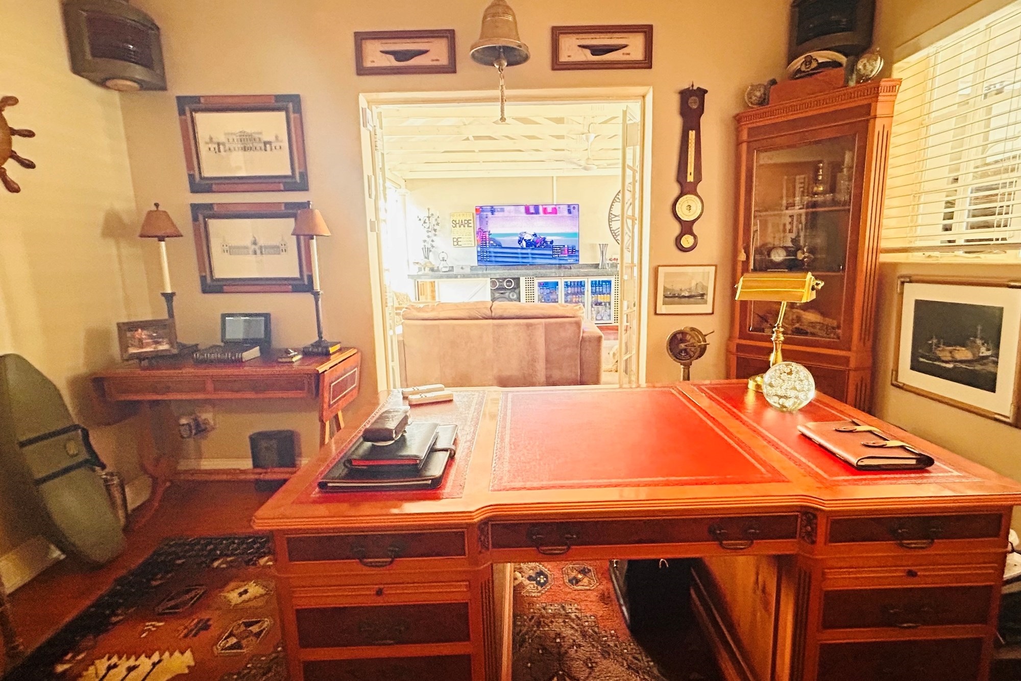Inside, the home reveals a blend of spacious living areas, each thoughtfully designed for seamless indoor-outdoor living. A classic, farm-style kitchen with a hidden scullery serves as the heart of the home, complete with an extra study nook for added functionality. Just beyond, a separate study and multiple lounges invite relaxation, with views that spill effortlessly into the vibrant courtyard or poolside retreat.