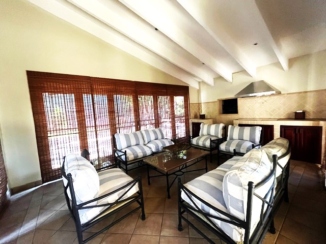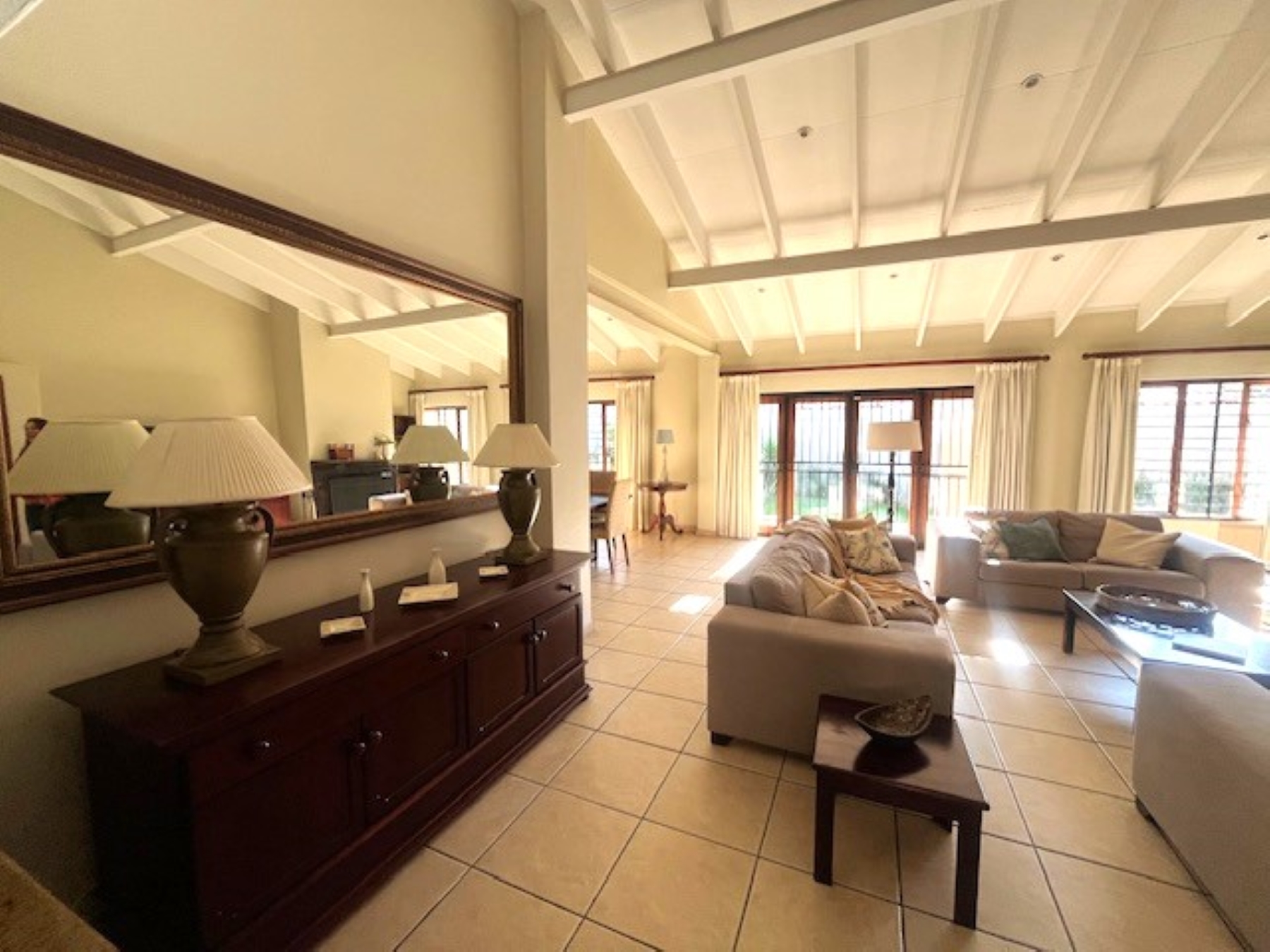Designed with entertainment in mind, the expansive open-plan living areas, along with an enclosed patio, seamlessly flow into the garden and the inviting sparkling pool area. The modern kitchen includes a separate scullery for added convenience.