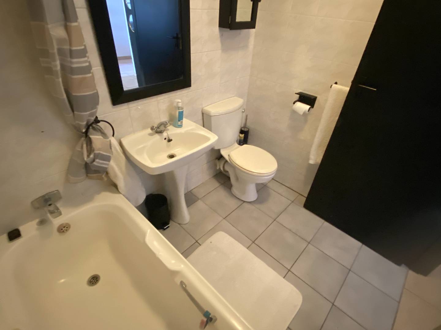 The bathroom includes a bath, toilet, and basin.
