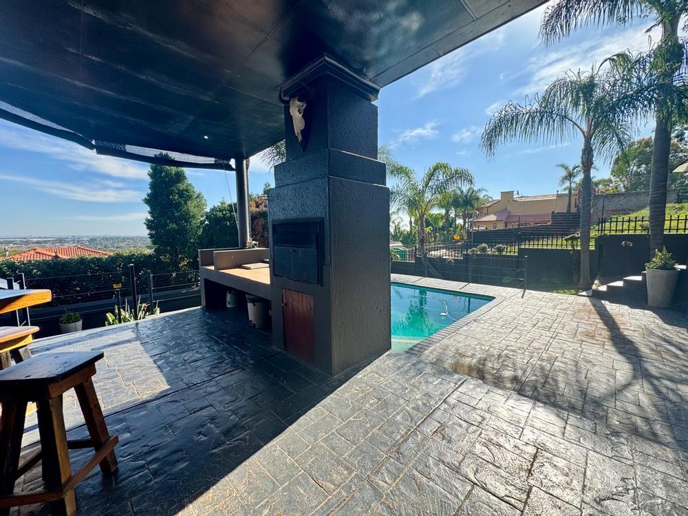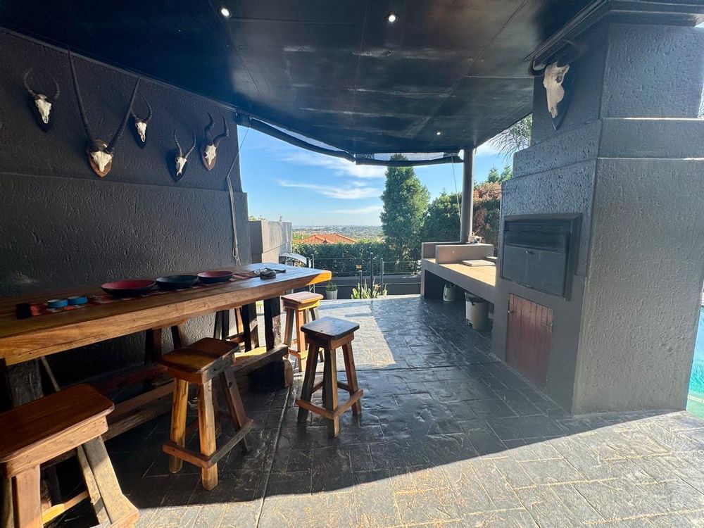 Superb entertainment awaits in the spacious braai area situated just off the main living space. With a built-in grill and sparkling swimming pool overlooking scenic views of the southeast of Pretoria, this outdoor haven is perfect for gatherings with family and friends.