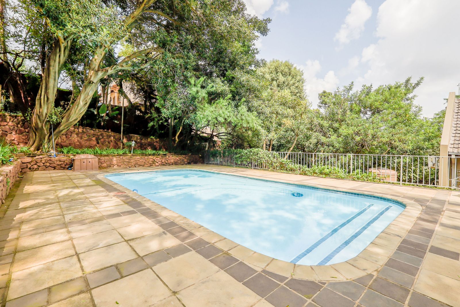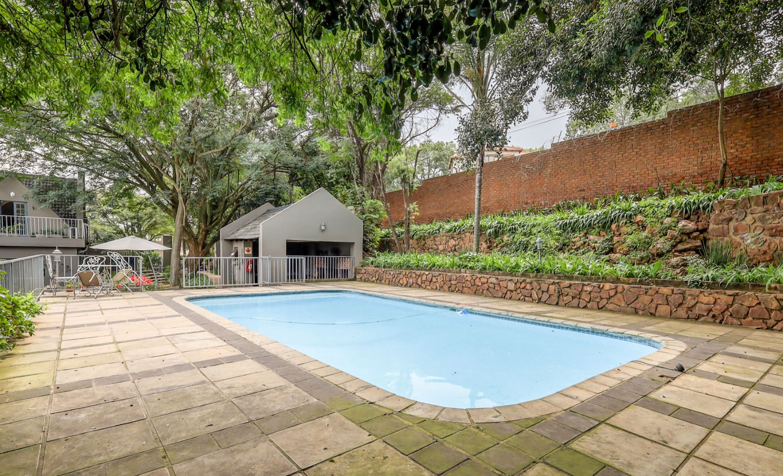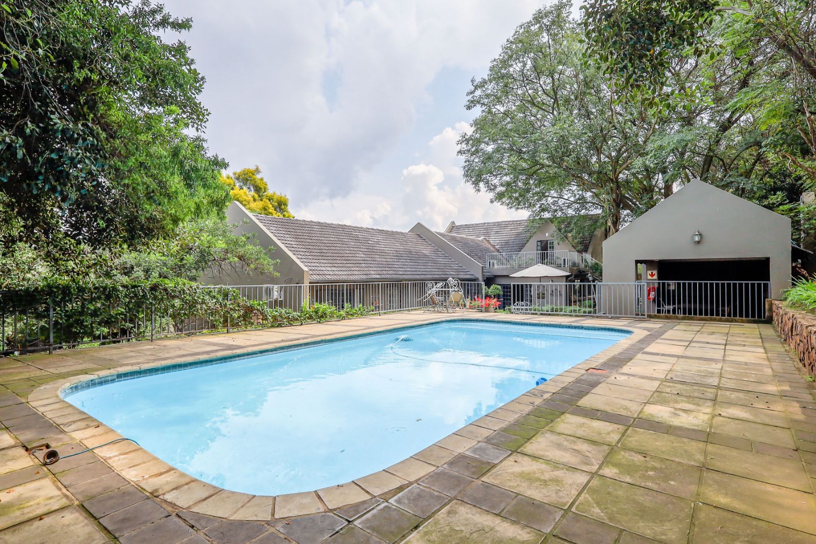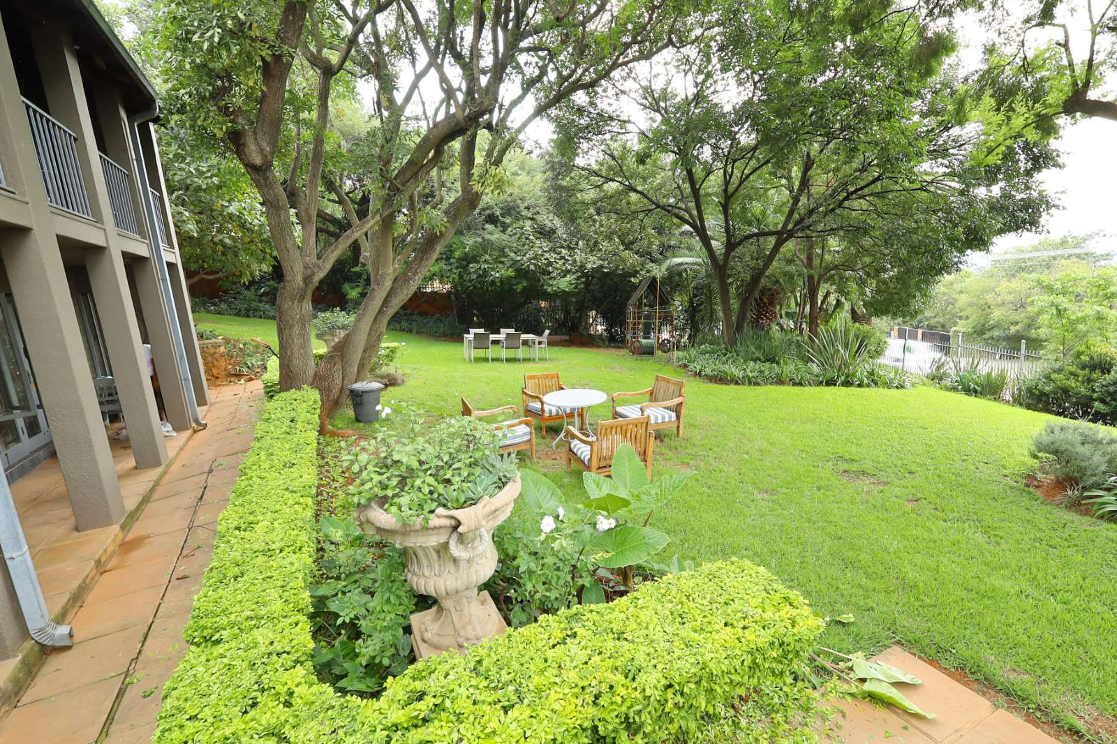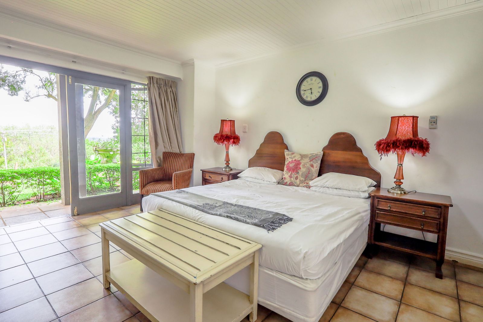 Outdoors, a sparkling pool and immaculate gardens create a tranquil oasis—perfect for relaxation under the African sun.