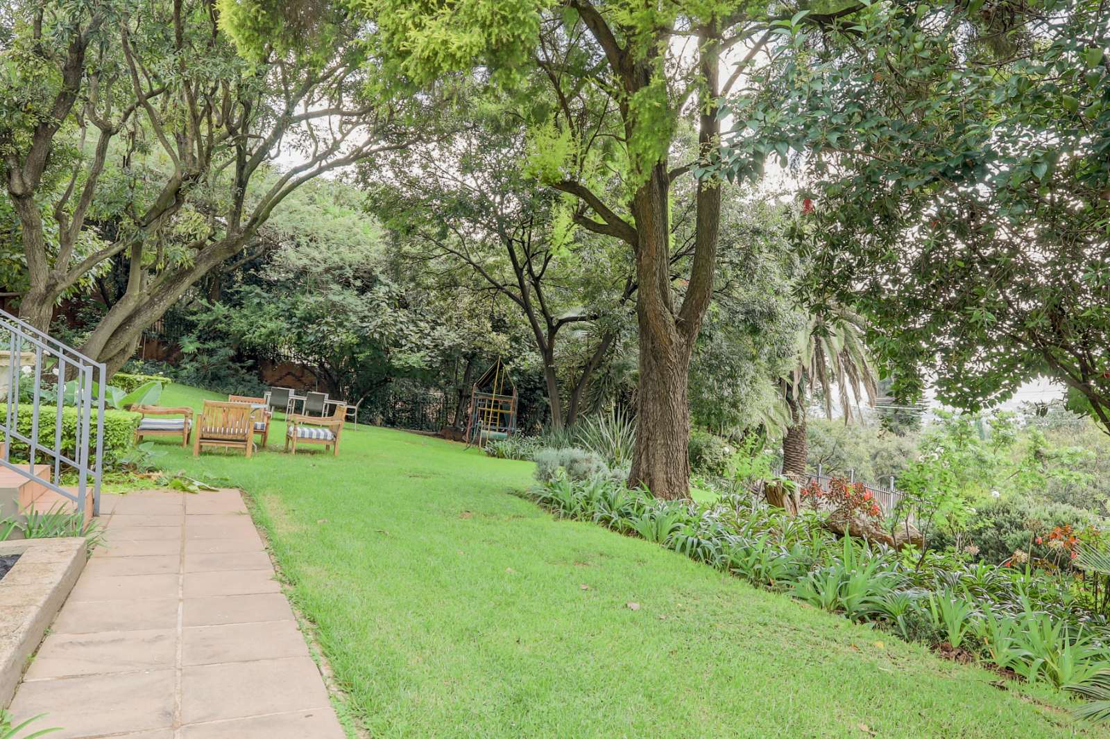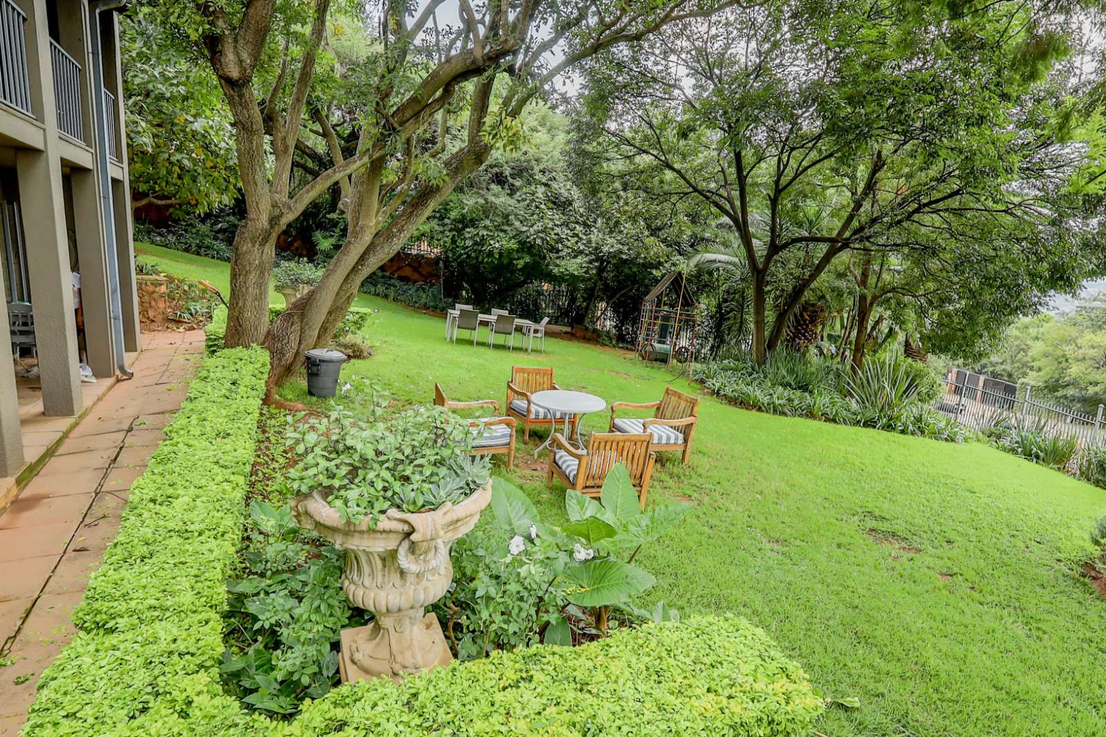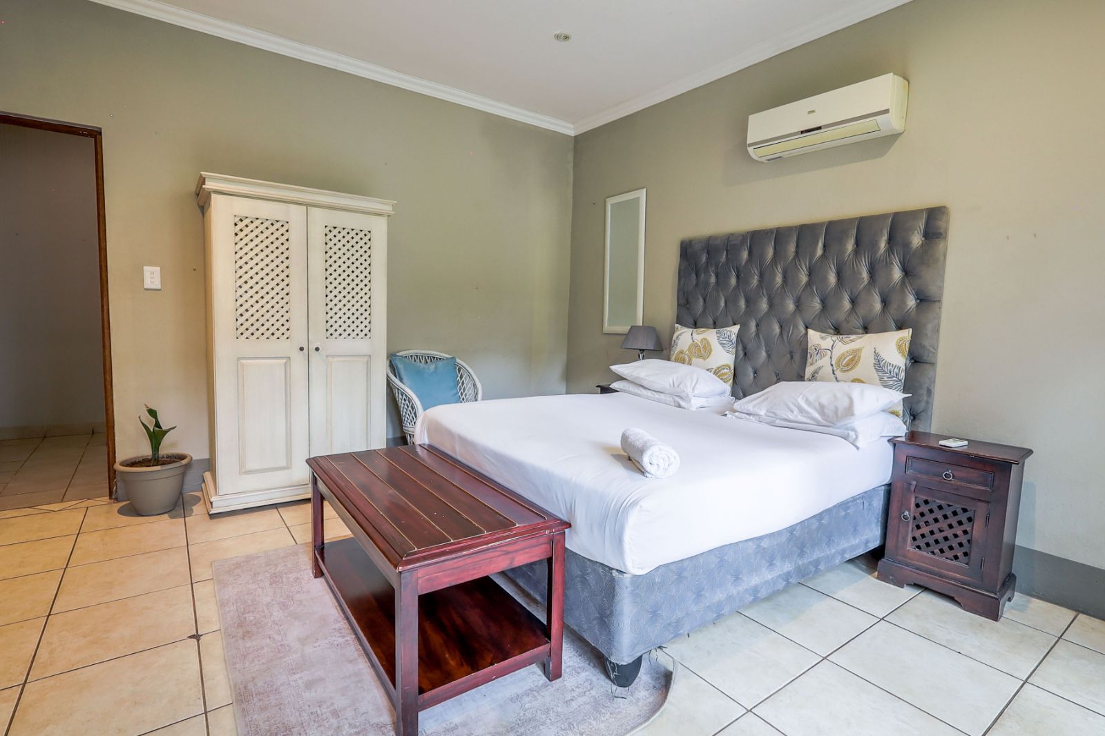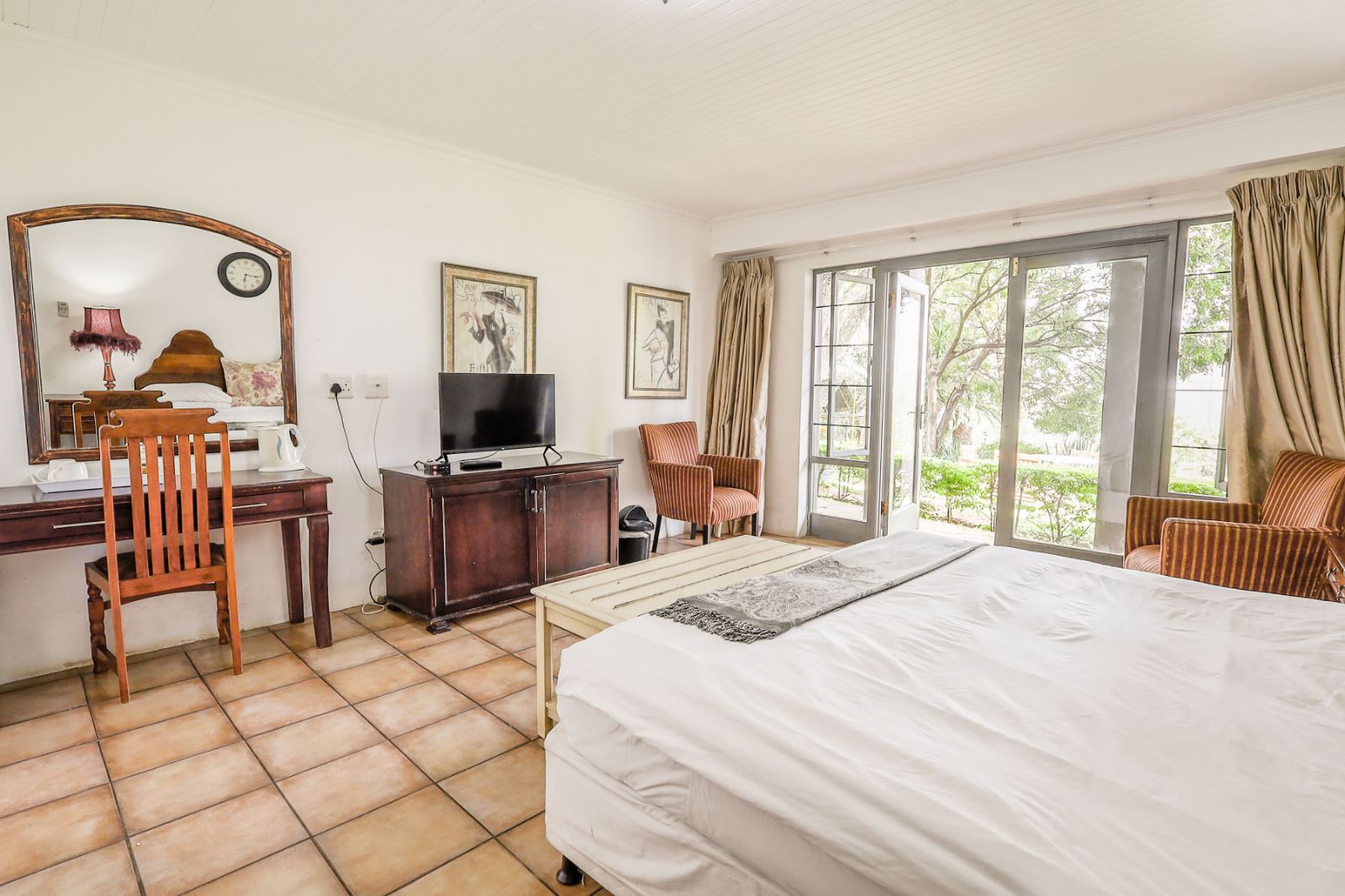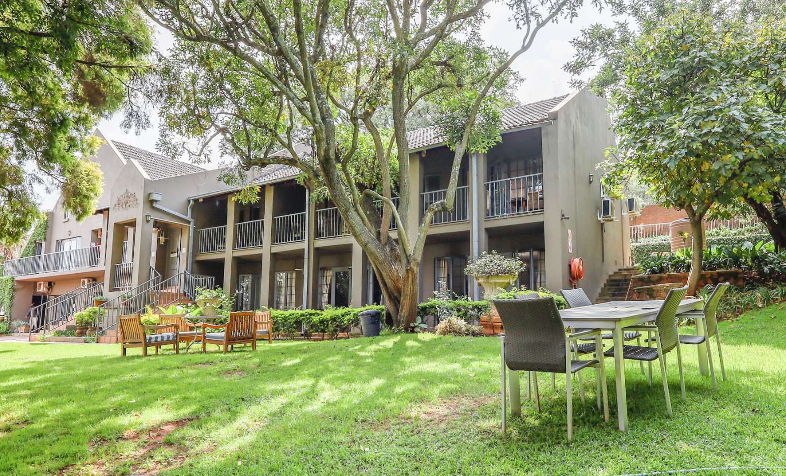 Outdoors, a sparkling pool and immaculate gardens create a tranquil oasis—perfect for relaxation under the African sun.