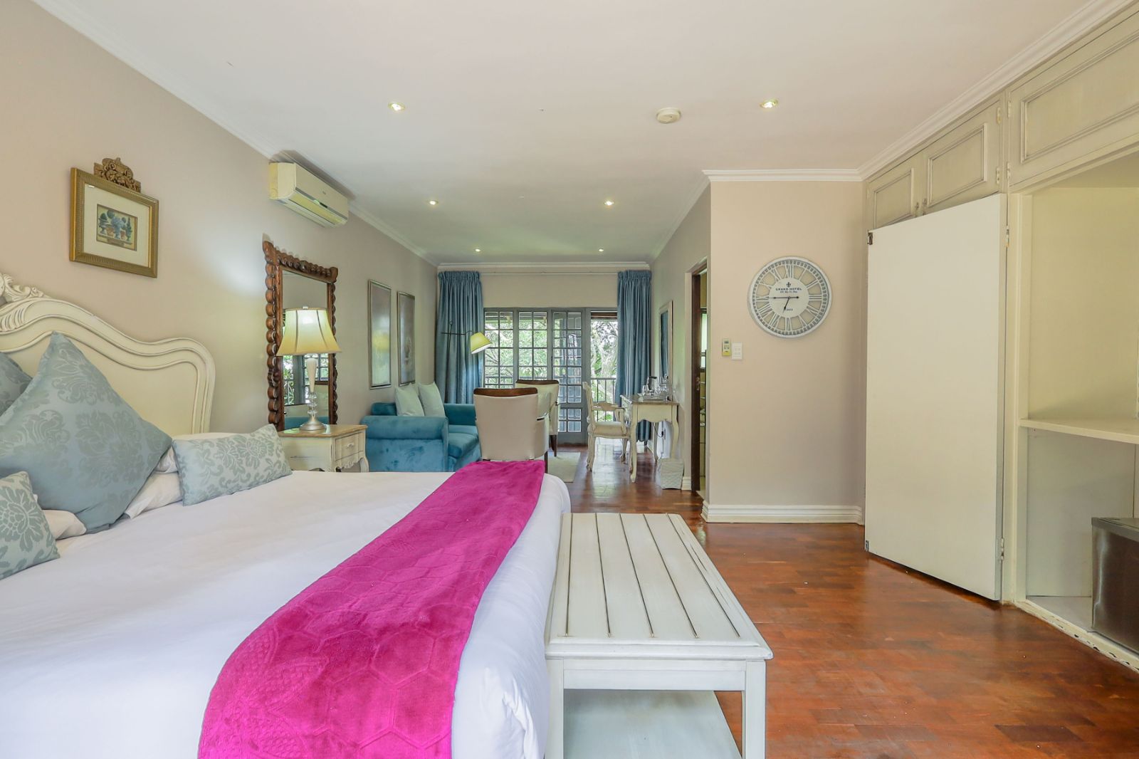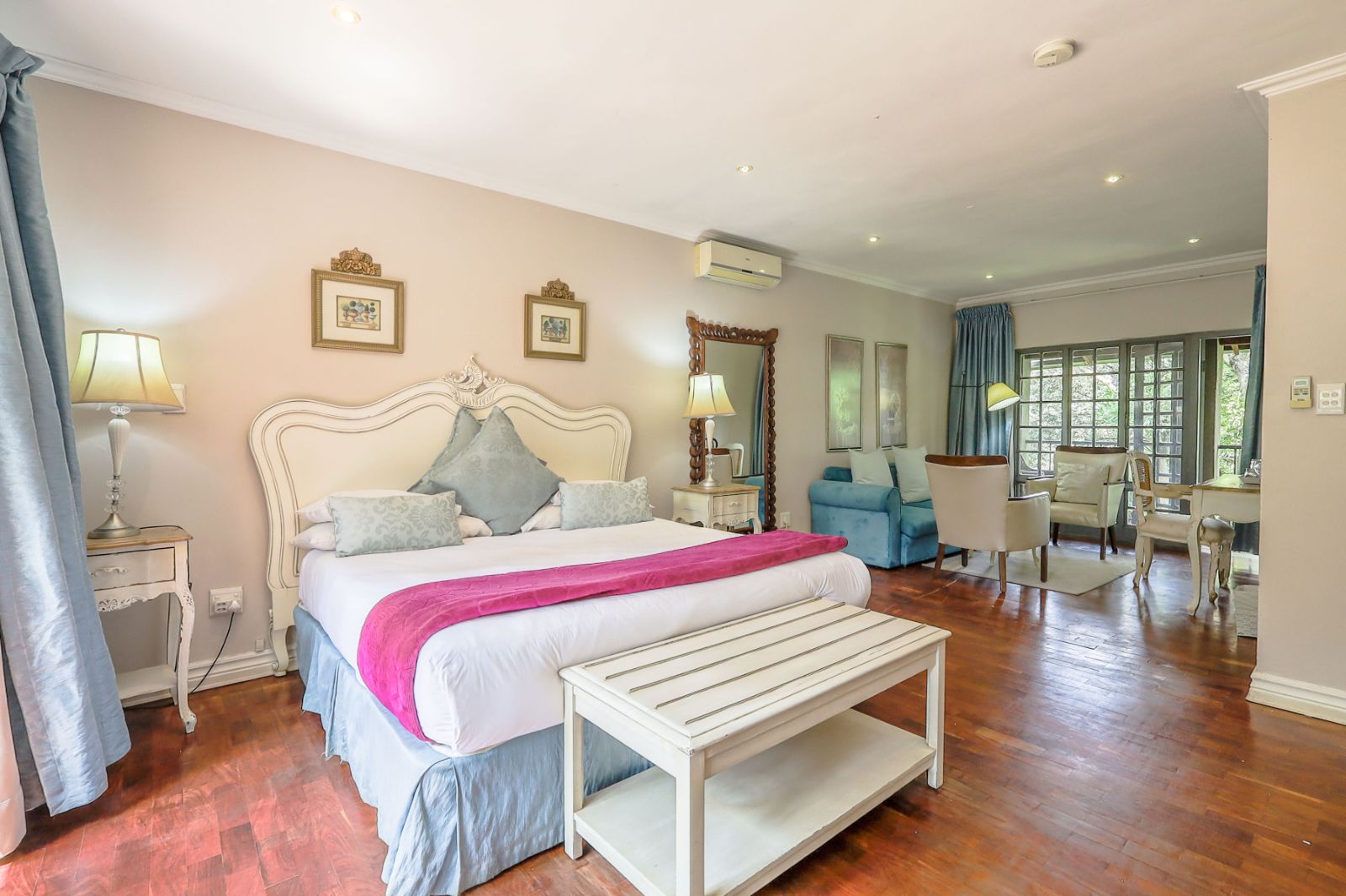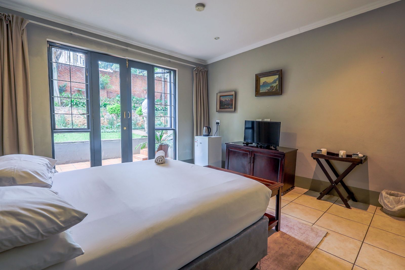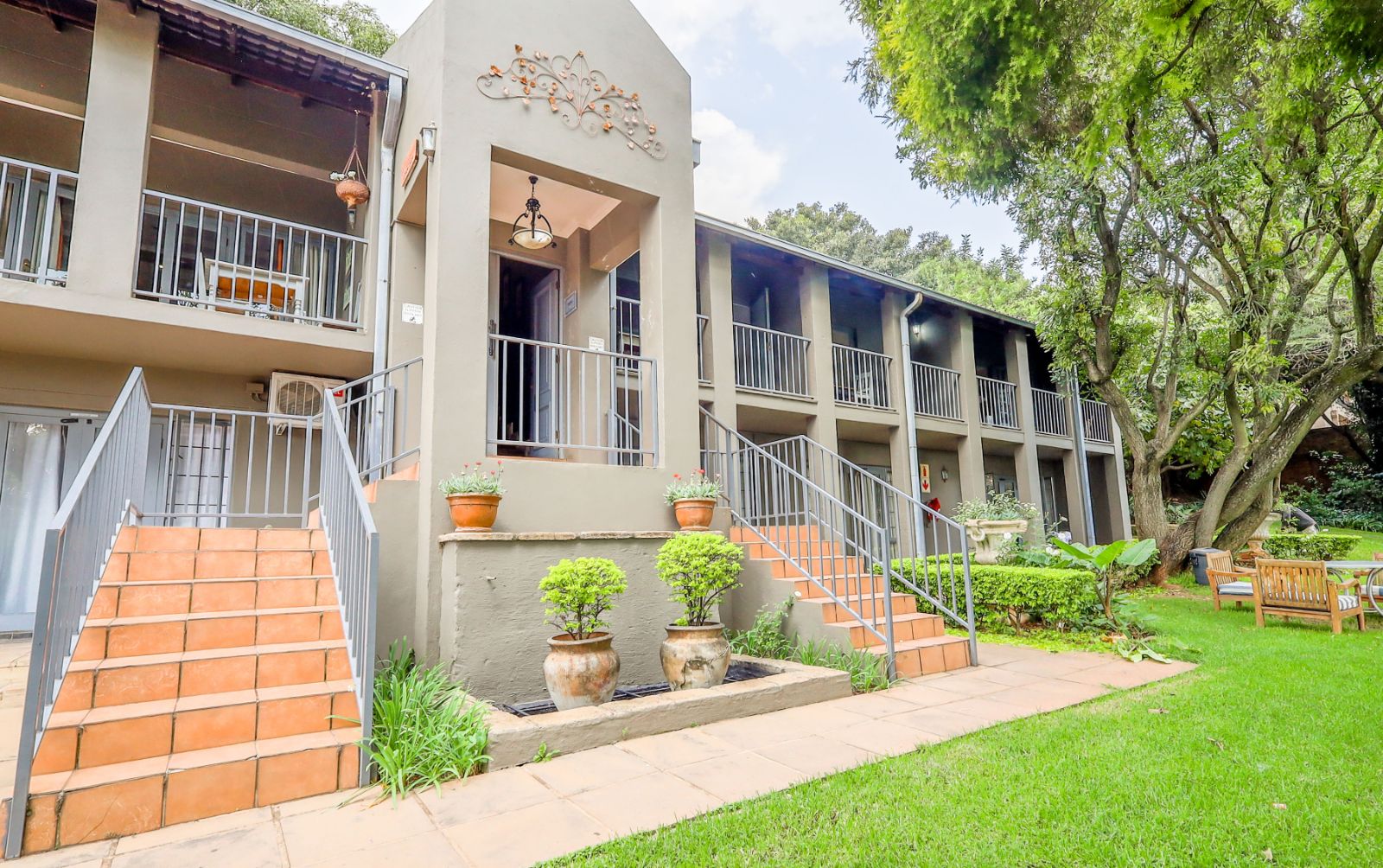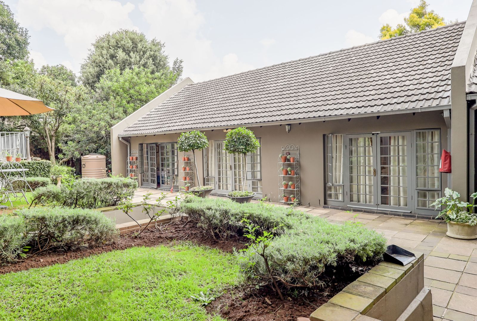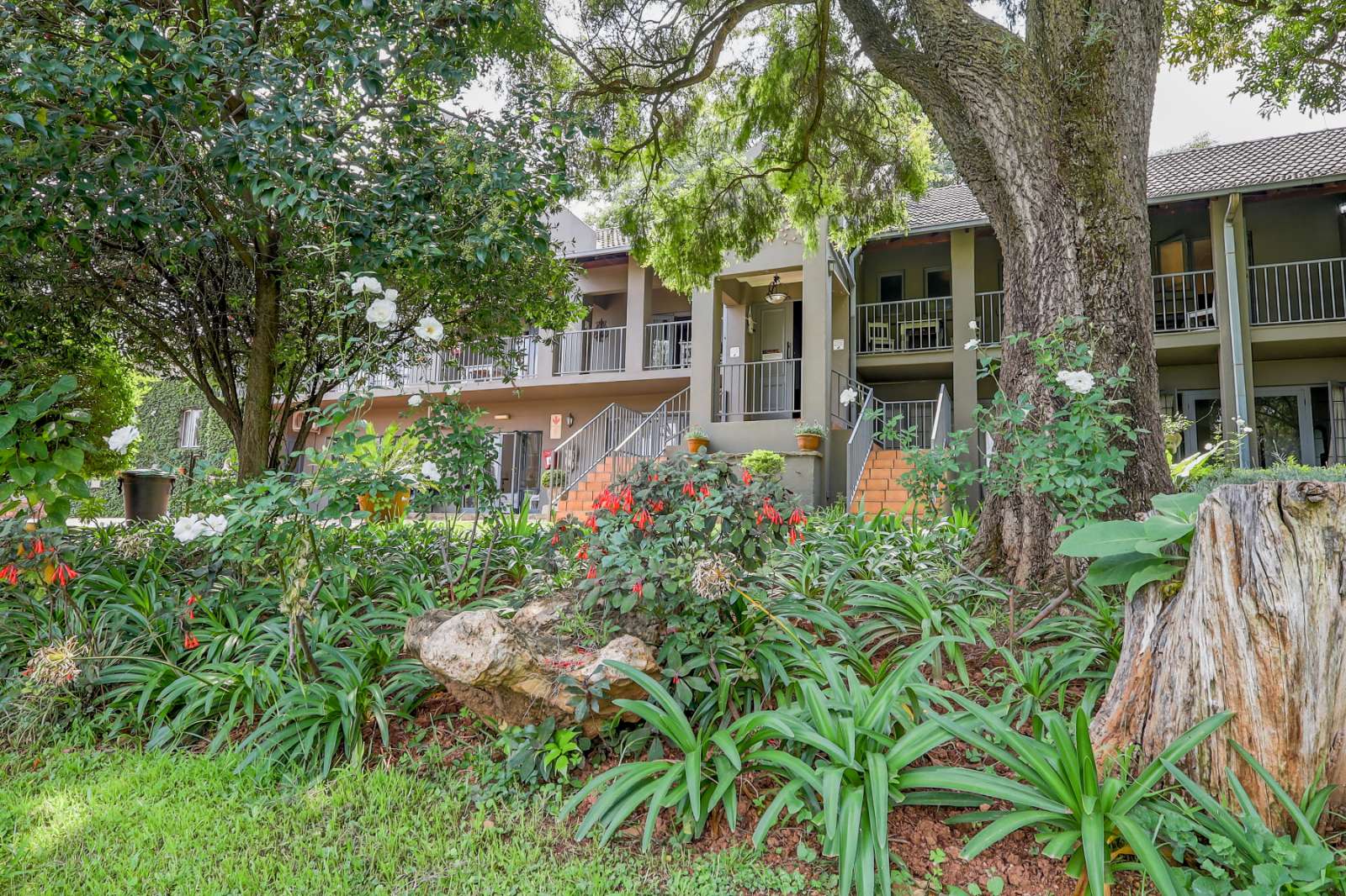 Outdoors, a sparkling pool and immaculate gardens create a tranquil oasis—perfect for relaxation under the African sun.