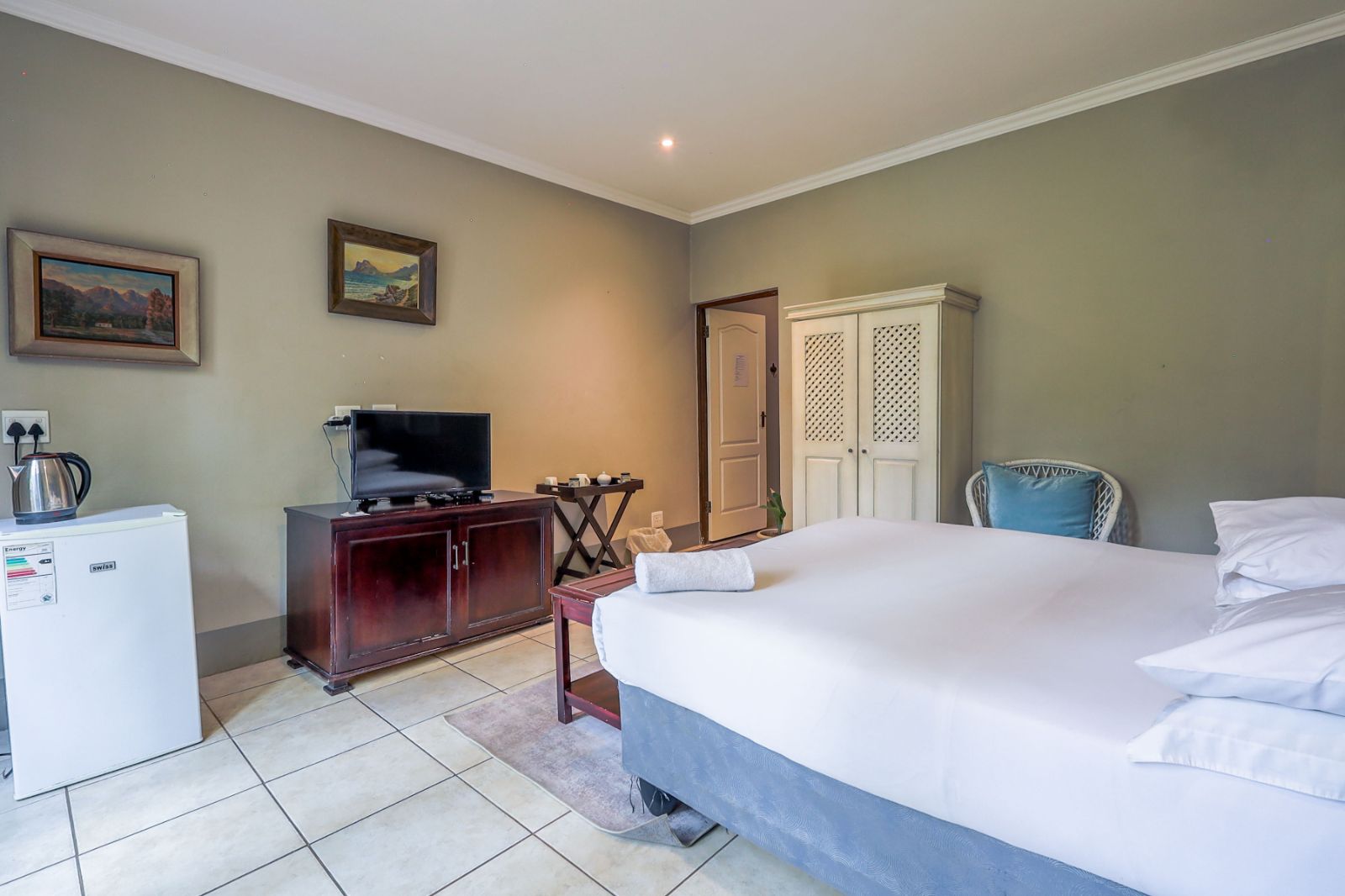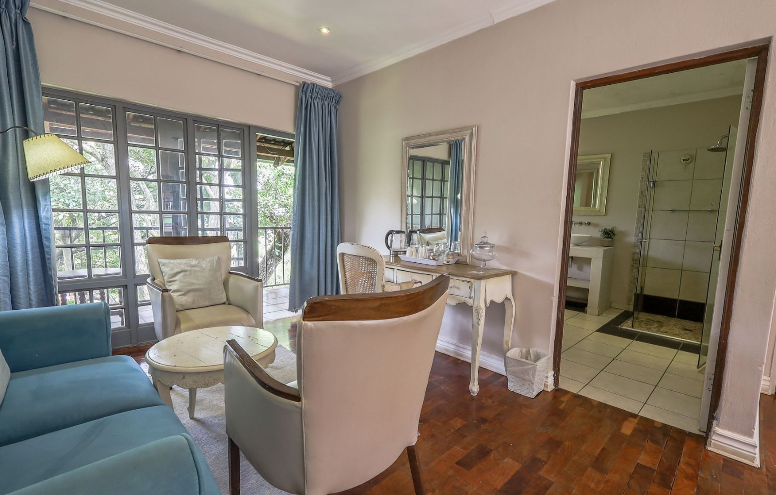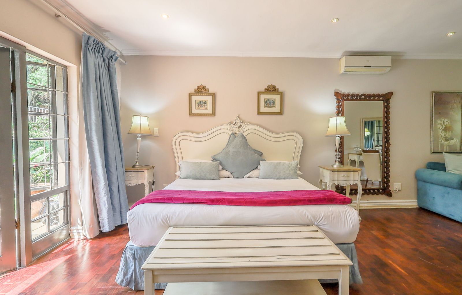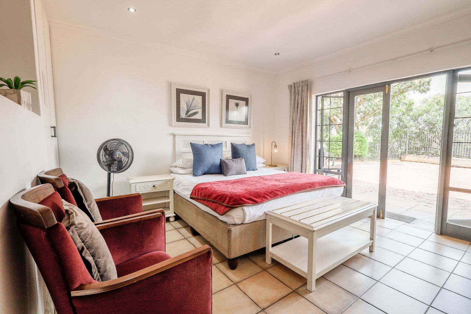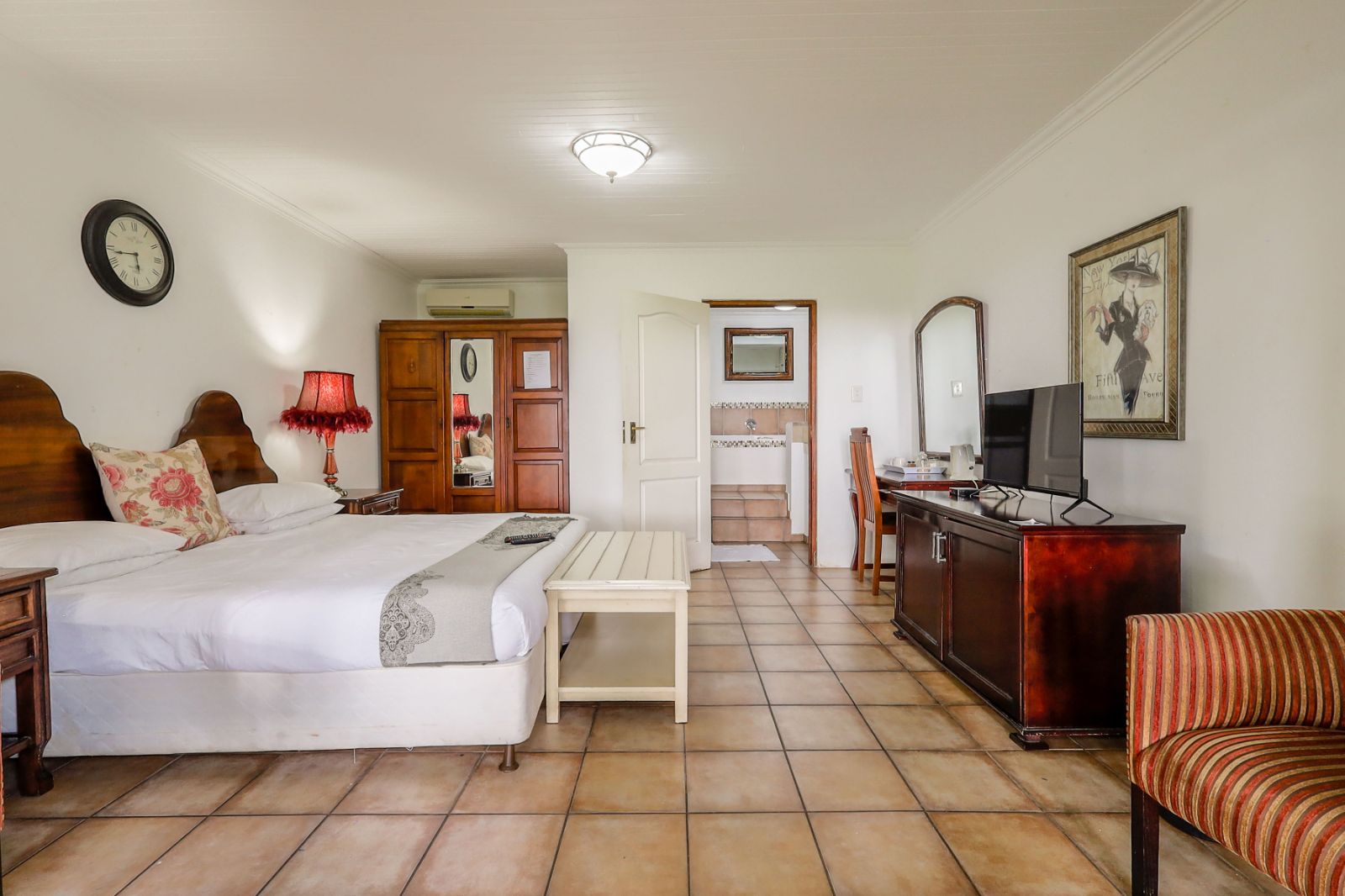 Outdoors, a sparkling pool and immaculate gardens create a tranquil oasis—perfect for relaxation under the African sun.