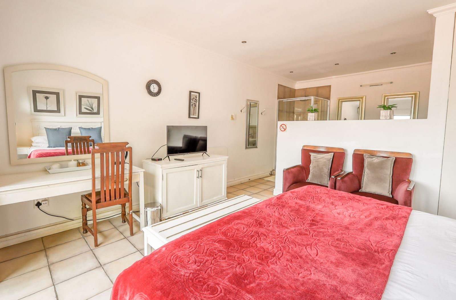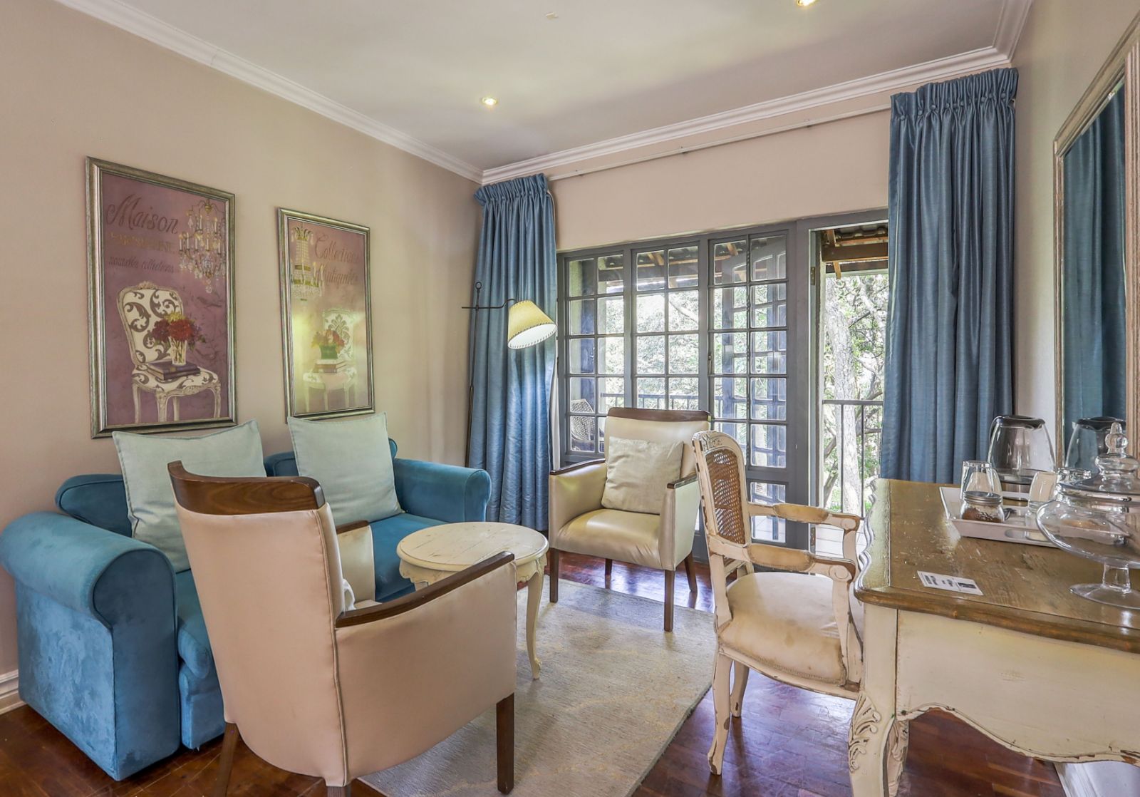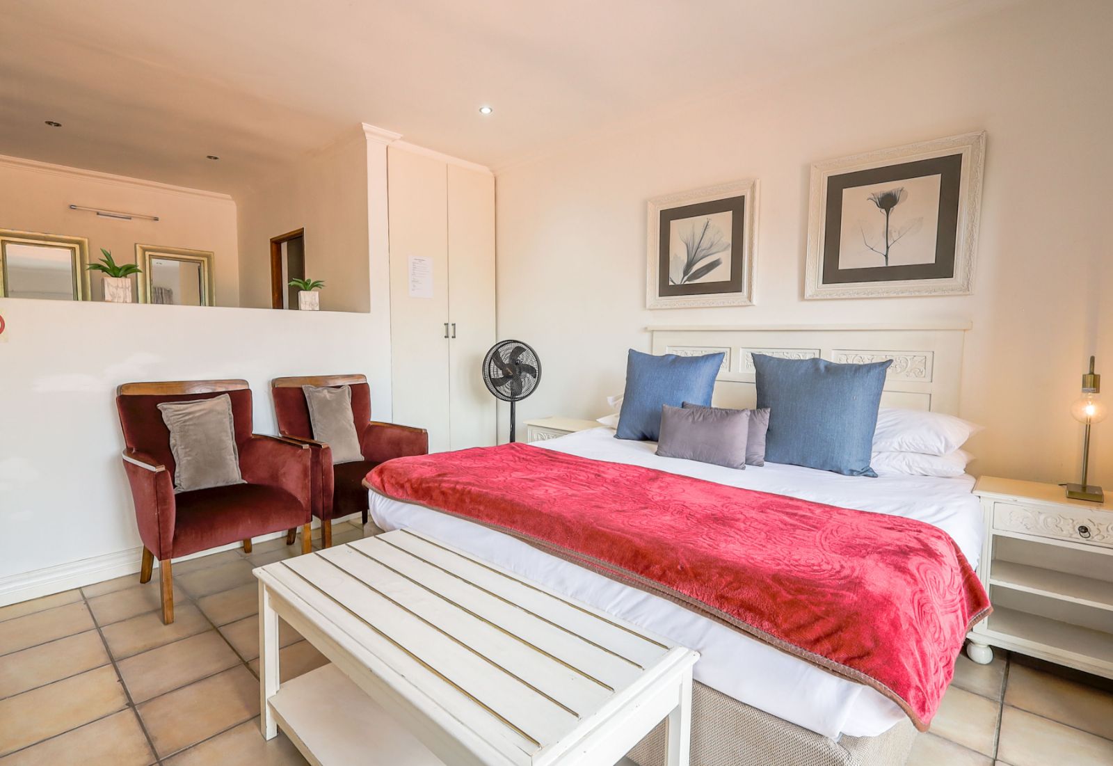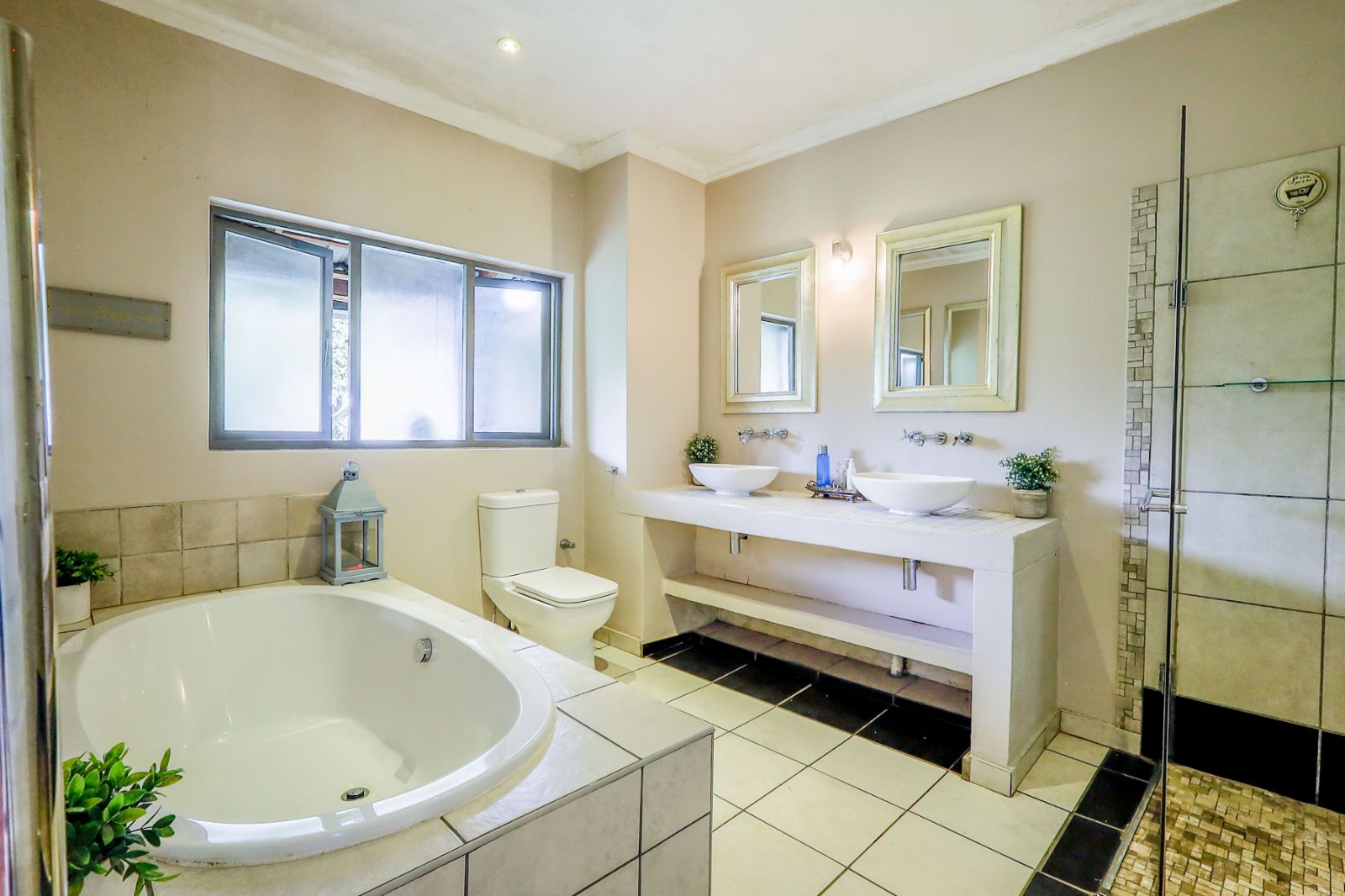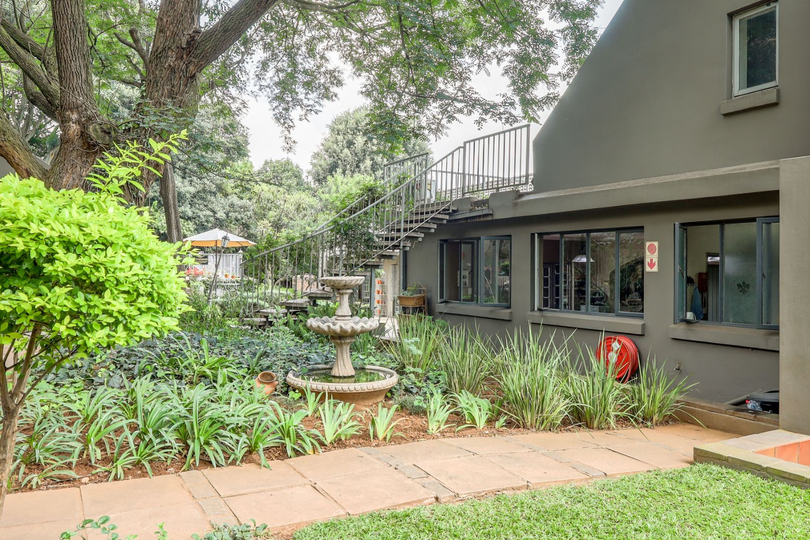 Outdoors, a sparkling pool and immaculate gardens create a tranquil oasis—perfect for relaxation under the African sun.