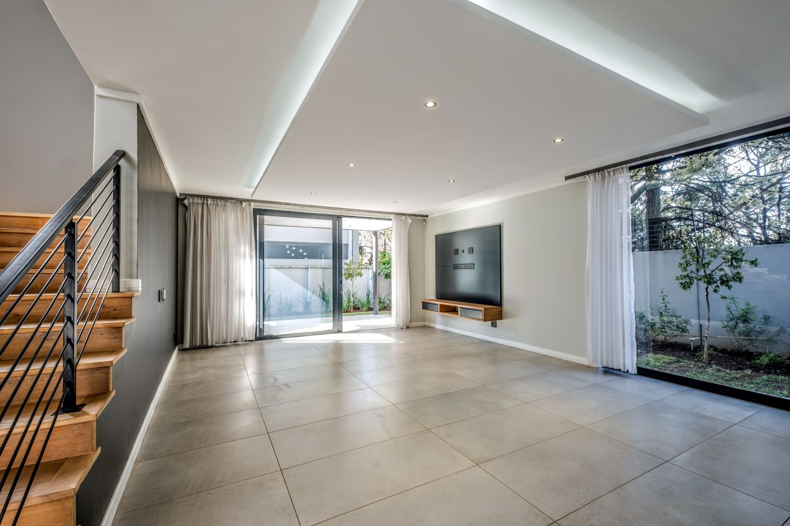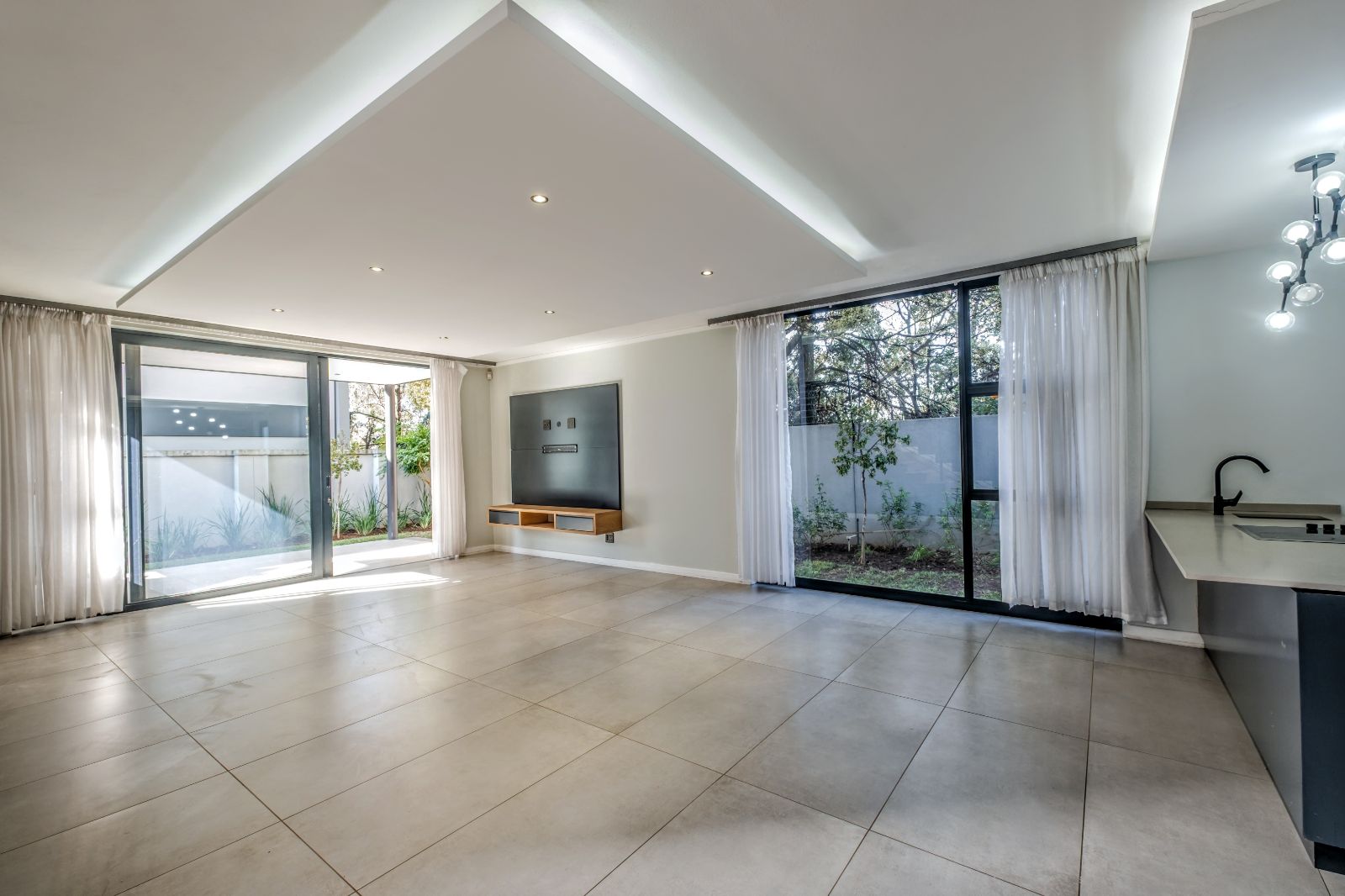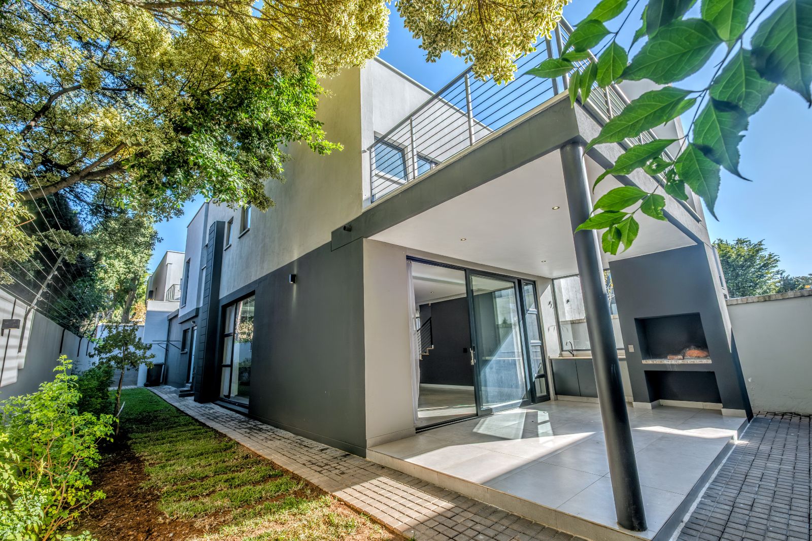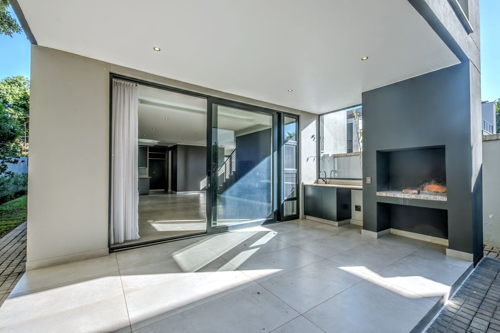The spacious lounge and TV room seamlessly flow onto a sunny, undercover patio featuring a built-in braai — ideal for entertaining friends or enjoying quiet weekend barbecues.