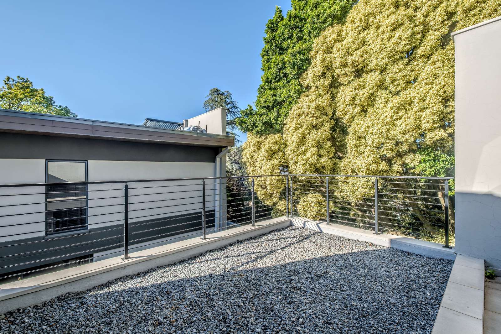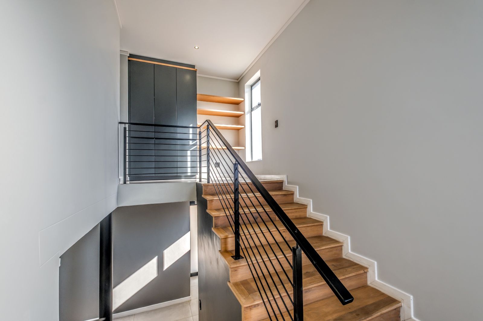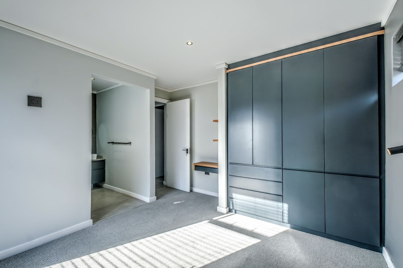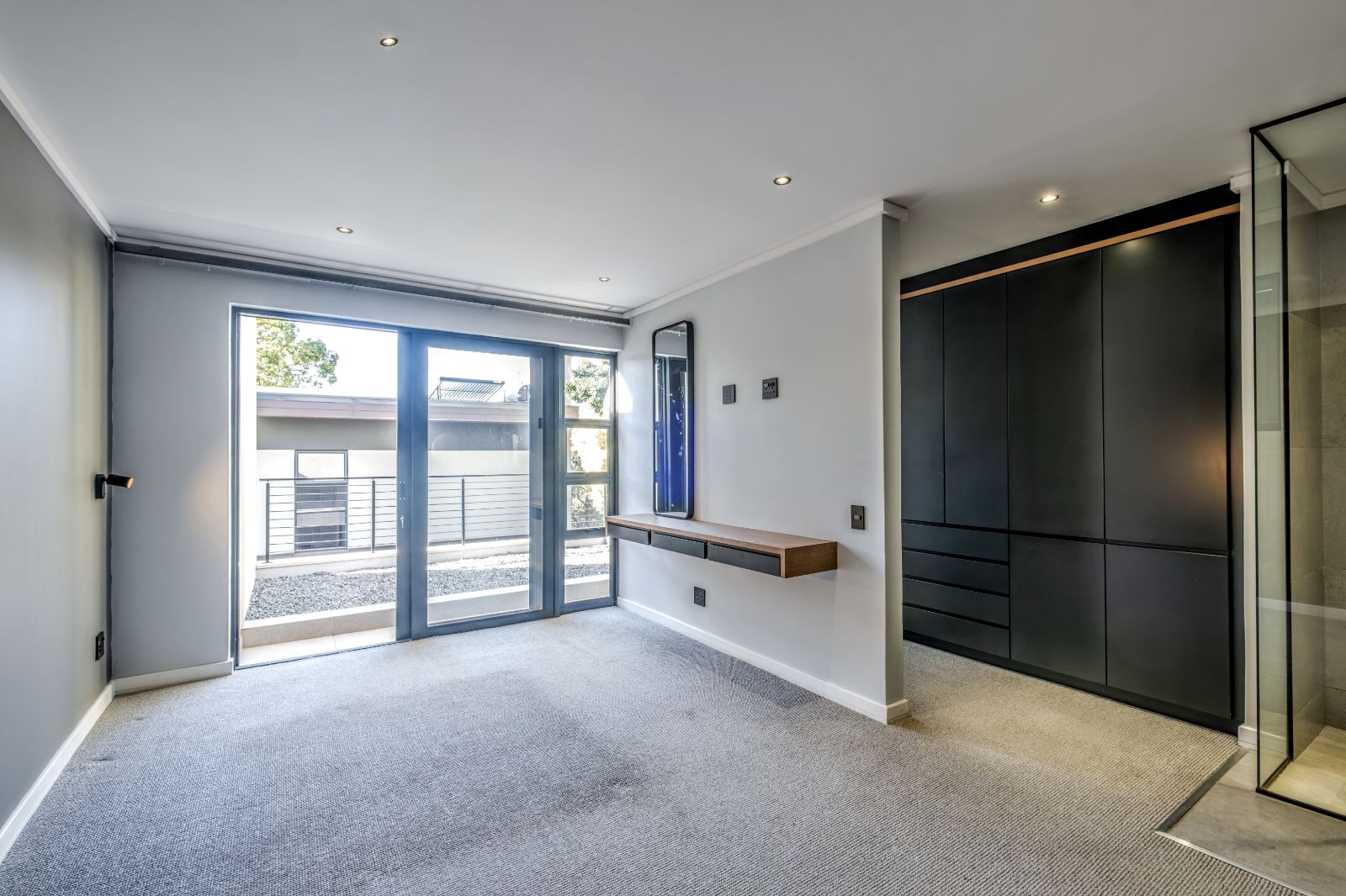 On the ground floor, a stylish guest bathroom complements the open living areas, while a wide wood-clad staircase leads you upstairs to a private sanctuary. Here, two north-facing bedrooms each come with their own en-suite bathrooms, offering both comfort and privacy. The ultra-spacious main bedroom features a walk-in dressing room with beautifully crafted cabinetry and opens onto a large balcony — perfect for morning coffee or evening relaxation.
