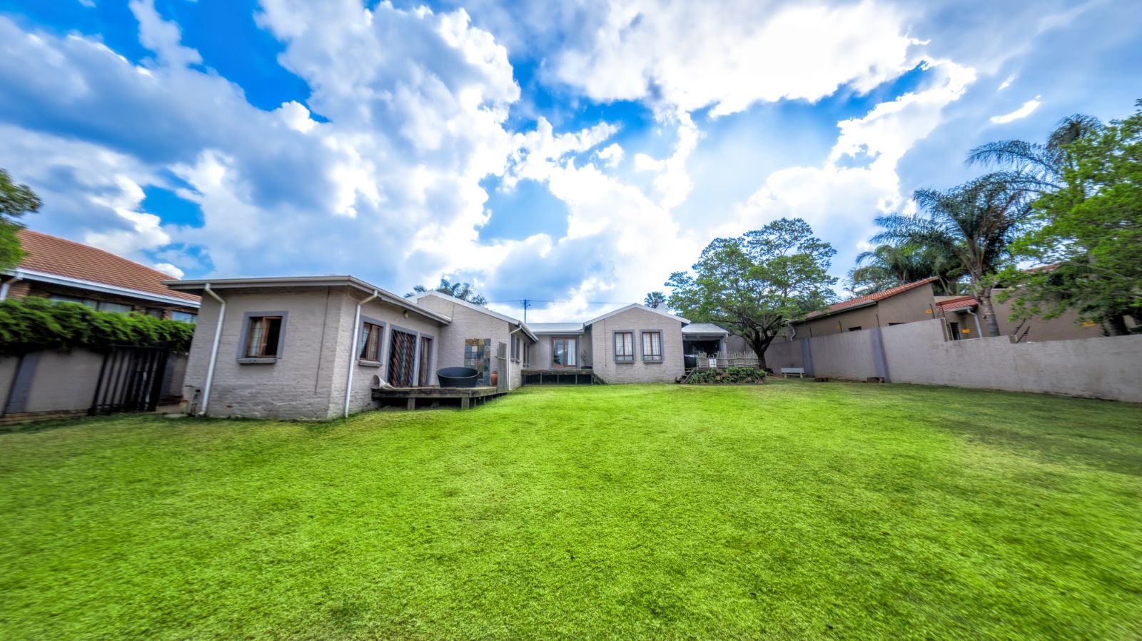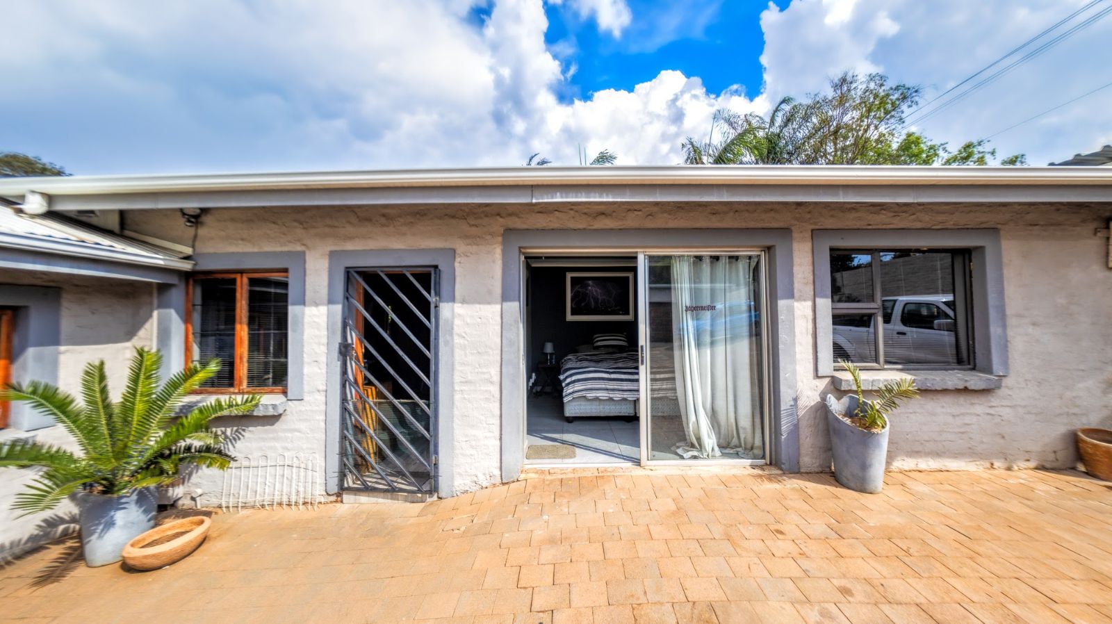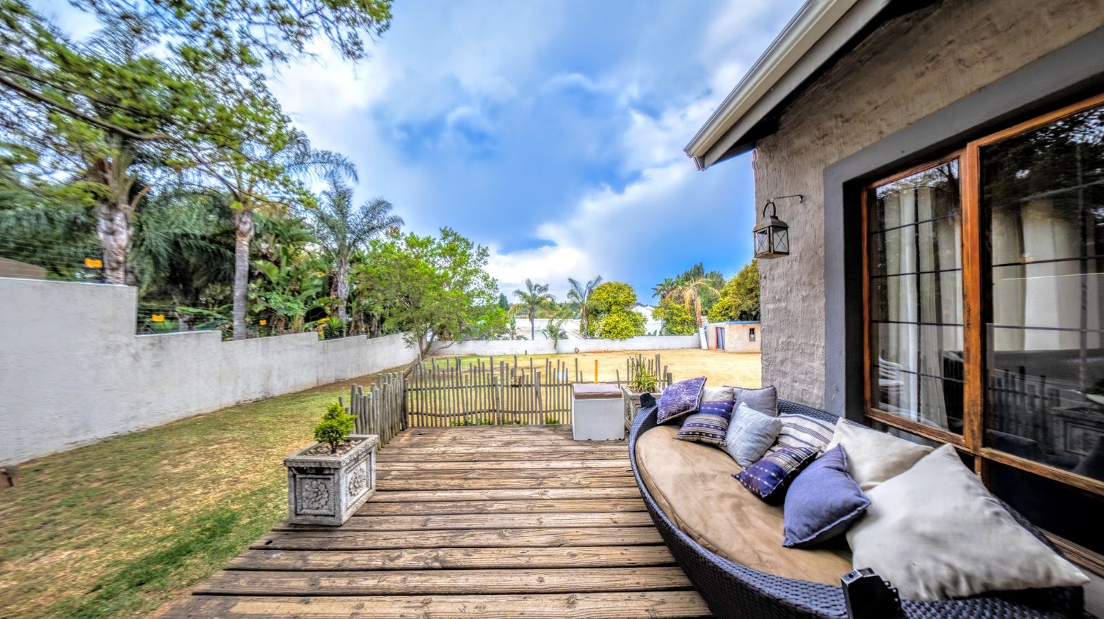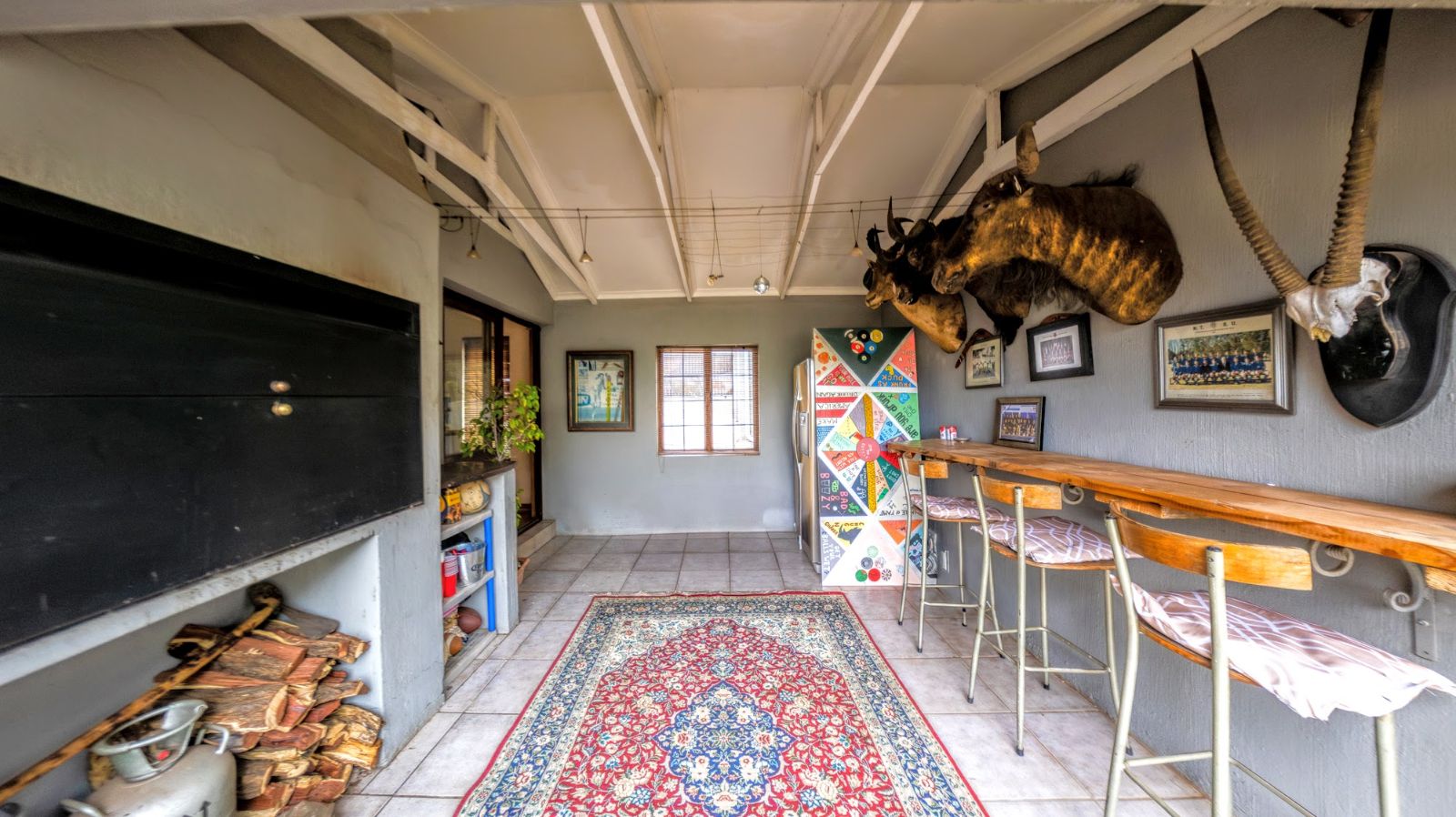 The living spaces open onto a large undercover patio with a built-in braai, overlooking the rolling lawns of a 1 600 m2 garden — a rare find that provides space, privacy, and potential.