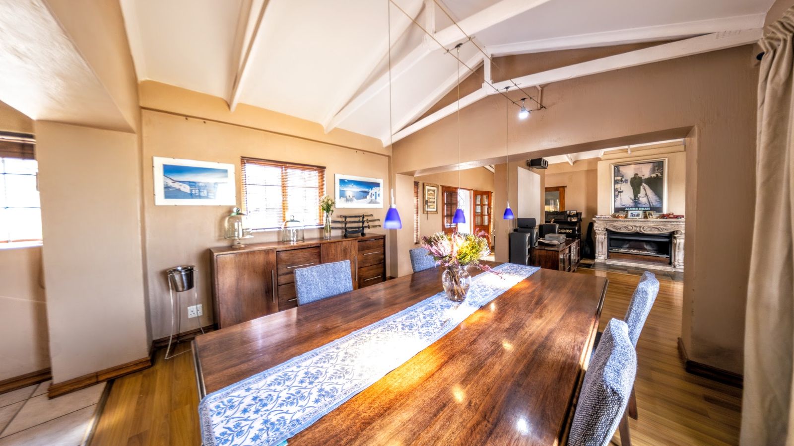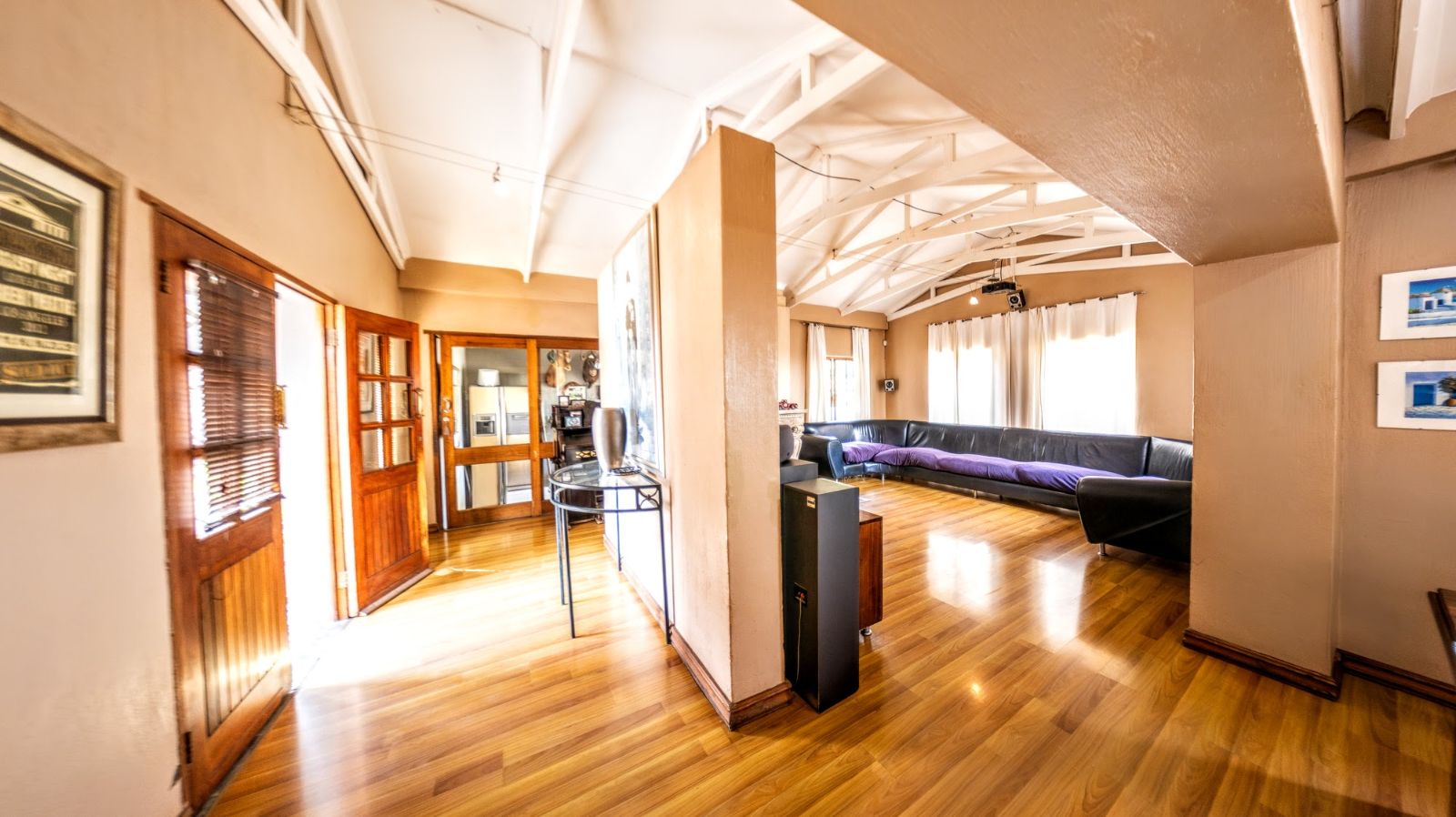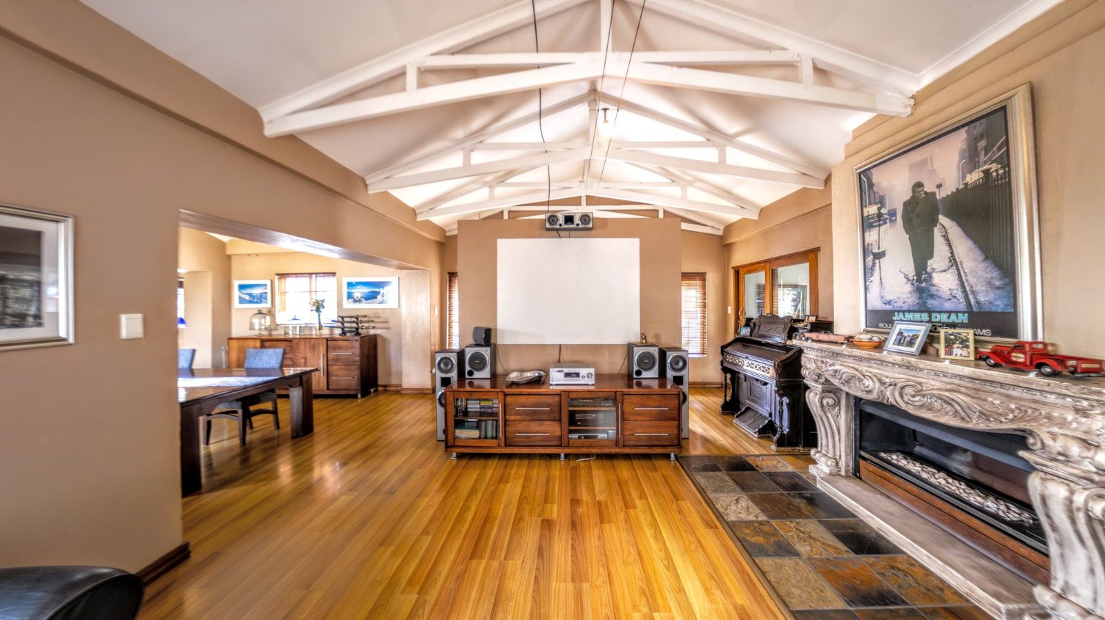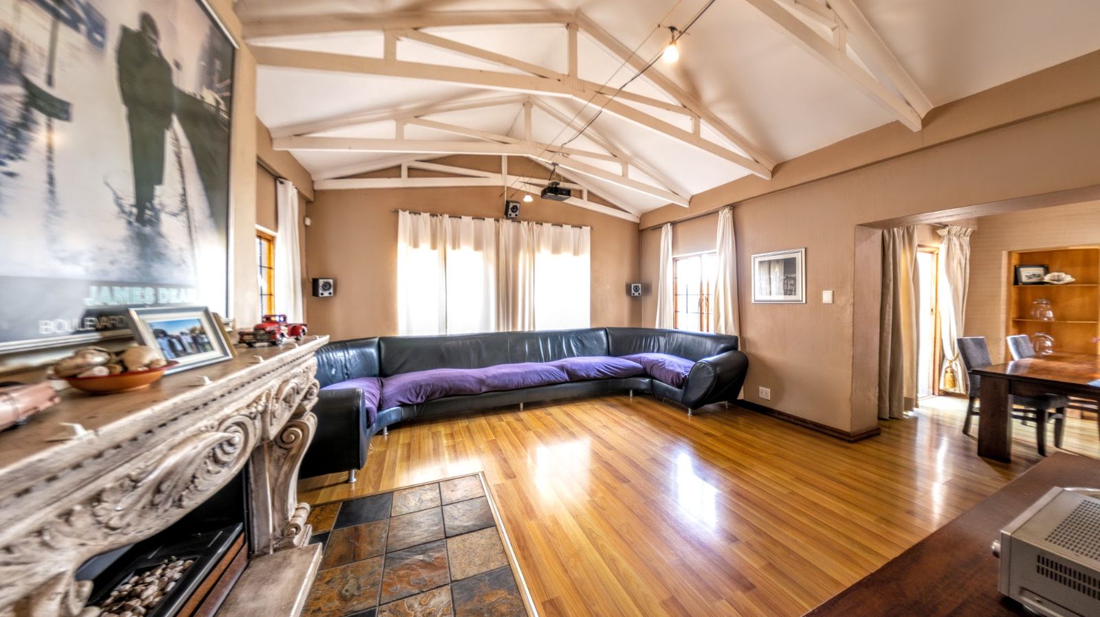 The living spaces open onto a large undercover patio with a built-in braai, overlooking the rolling lawns of a 1 600 m2 garden — a rare find that provides space, privacy, and potential.