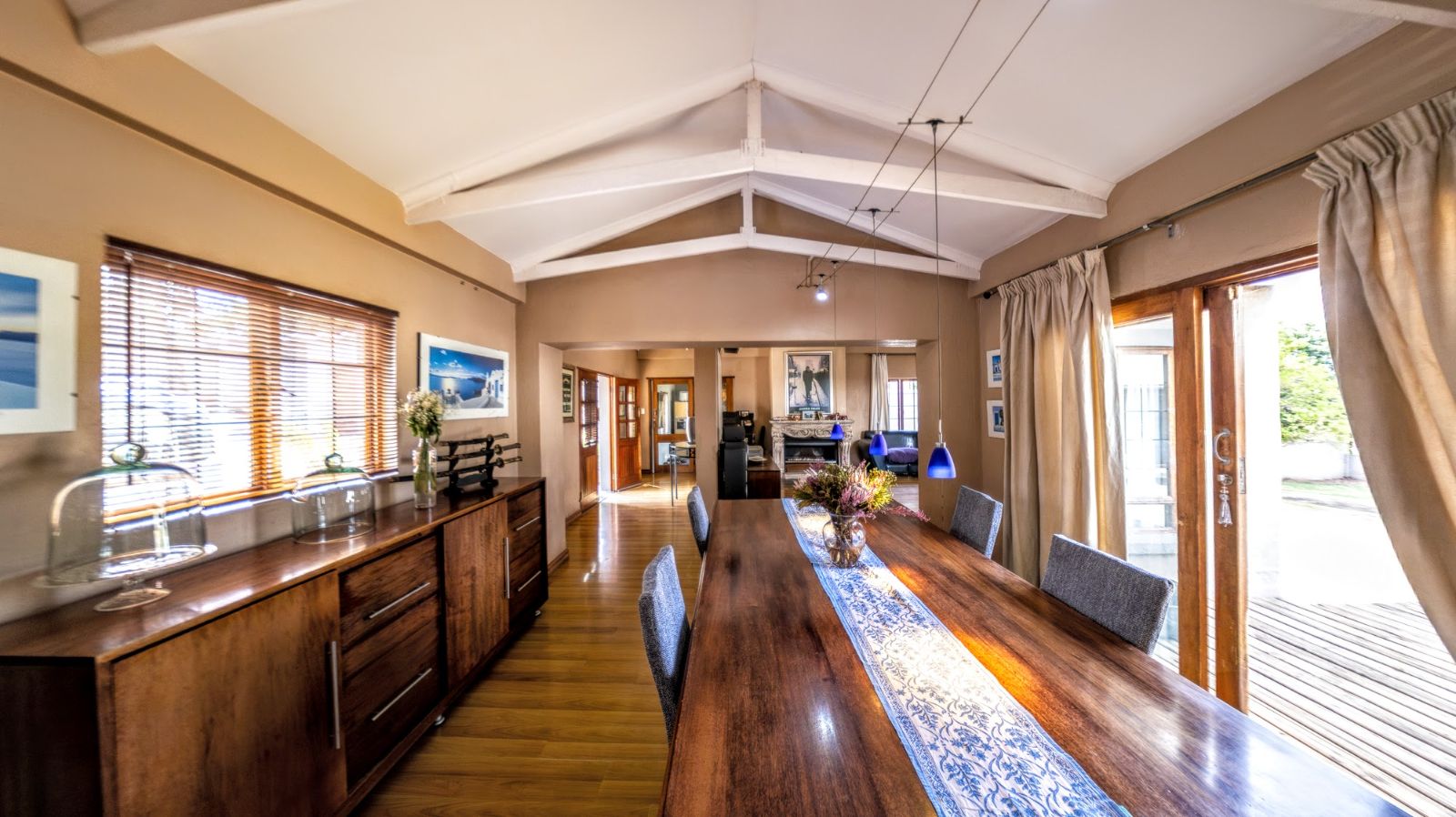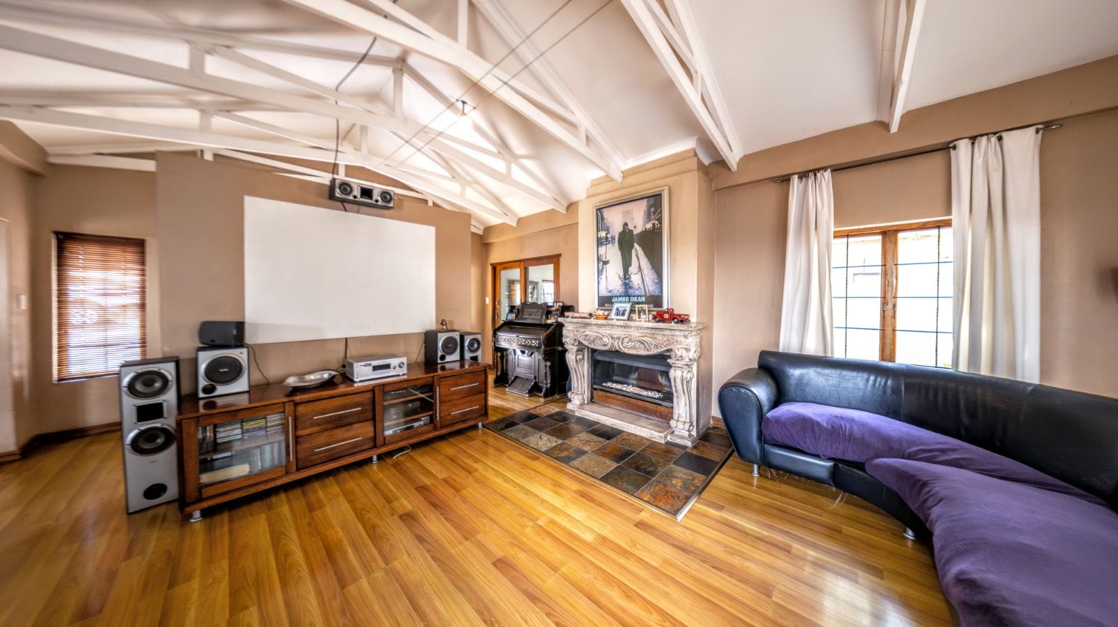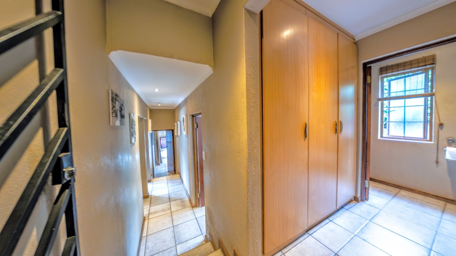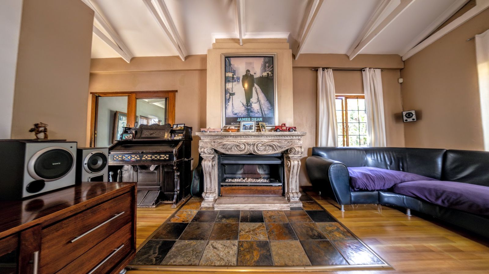 The living spaces open onto a large undercover patio with a built-in braai, overlooking the rolling lawns of a 1 600 m2 garden — a rare find that provides space, privacy, and potential.
