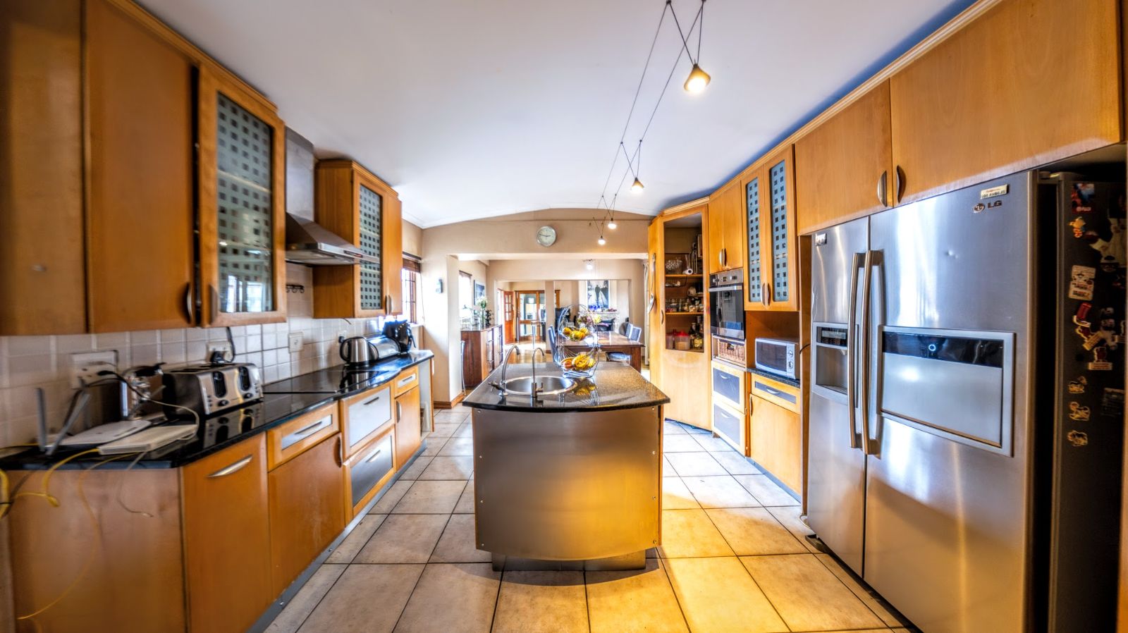 A fourth bedroom with an en-suite bathroom, located off the kitchen, is ideal for guests, teens, or as a work-from-home space. A fifth bedroom suite, separate from the main house, includes its own kitchenette and en-suite — perfect for extended family or as an income-generating flatlet.