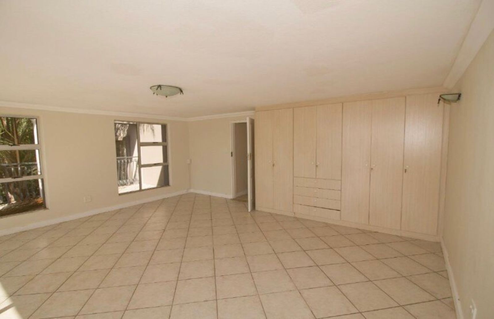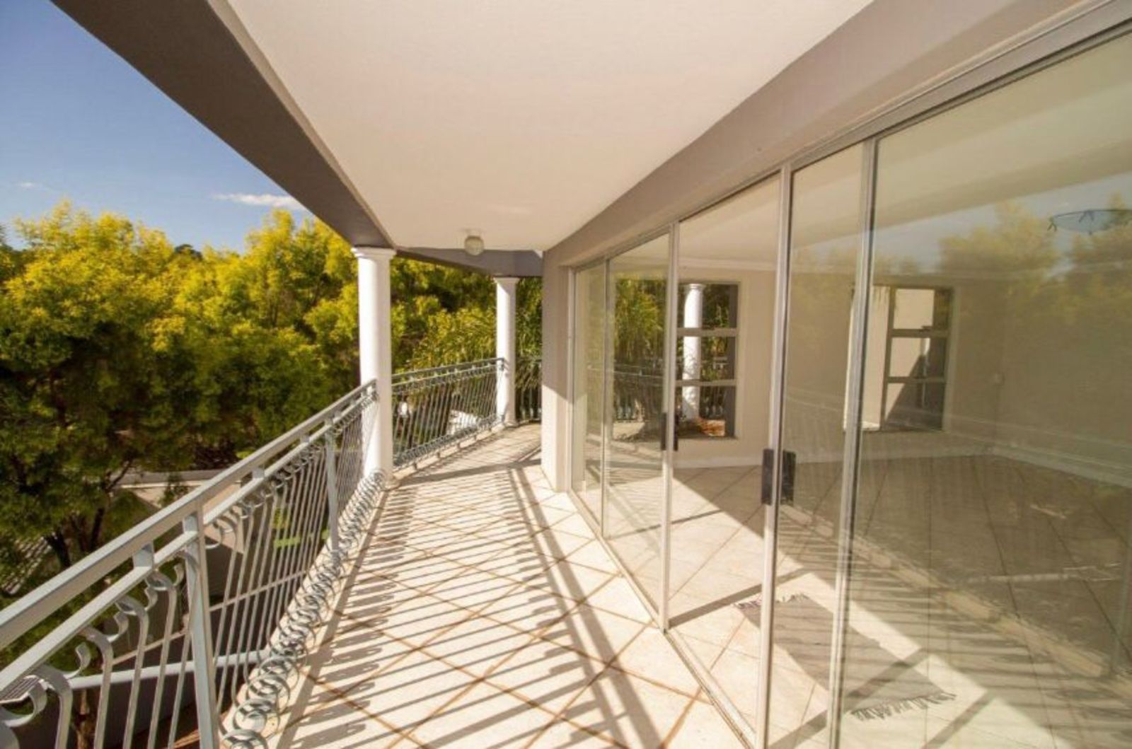 The master suite, built on a grand scale, features sliding doors opening onto a covered patio with stack doors, extending to a sun-soaked balcony with spectacular views over Waterkloof Ridge.