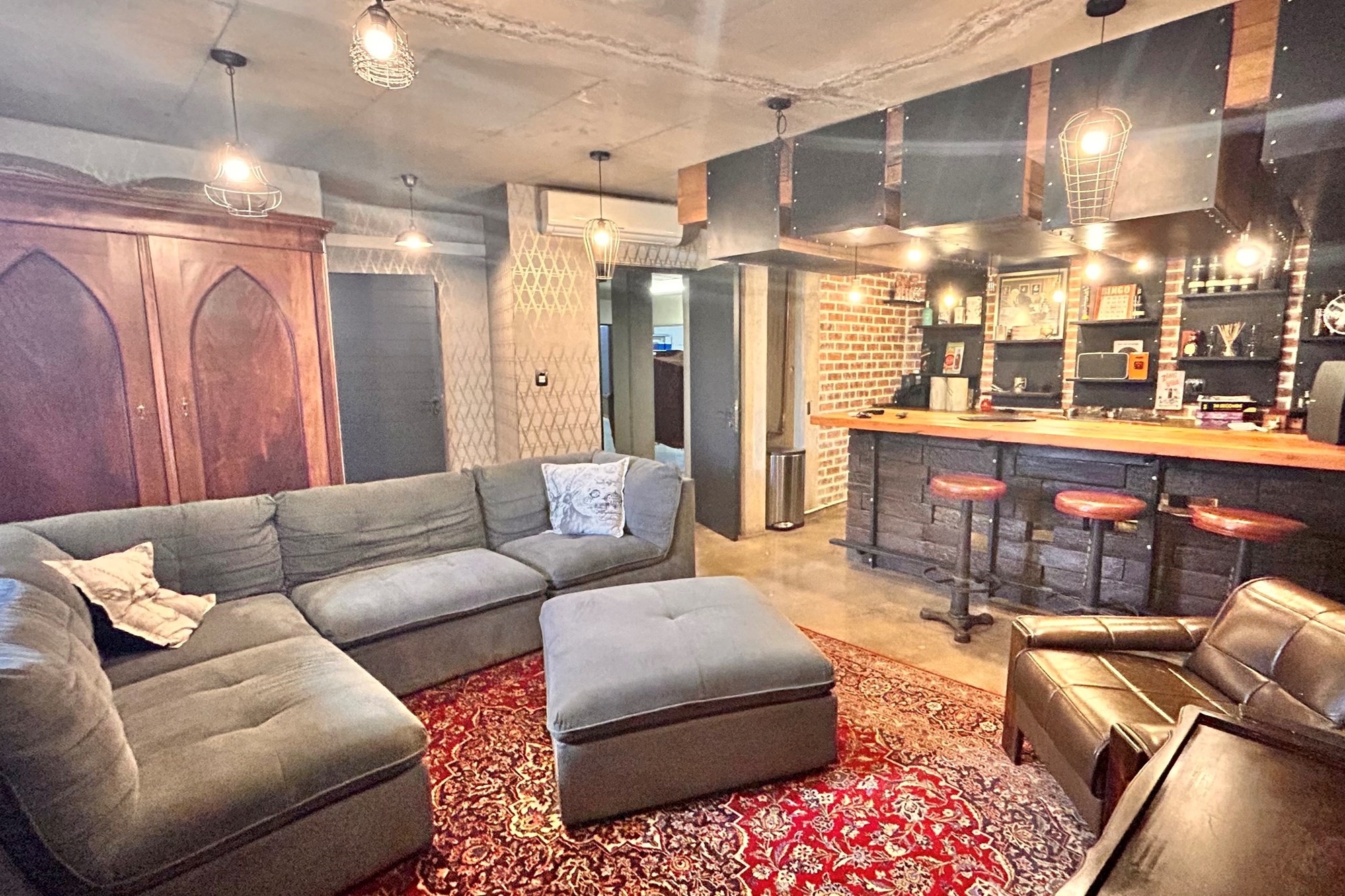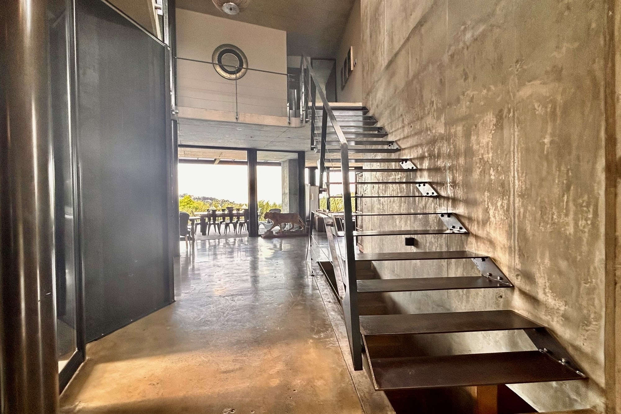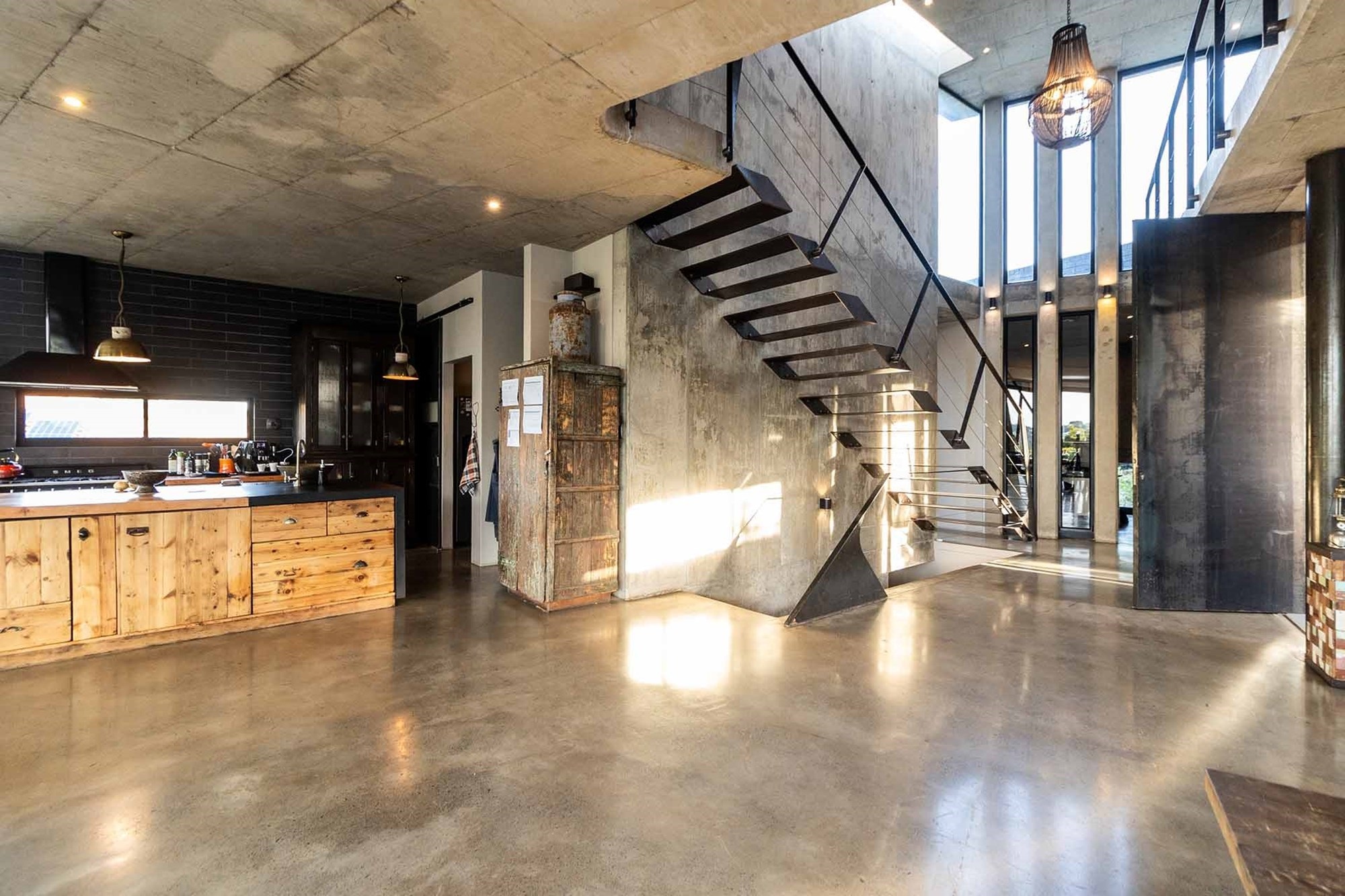 ·Double-height ceilings, exposed steel beams, and polished concrete floors.