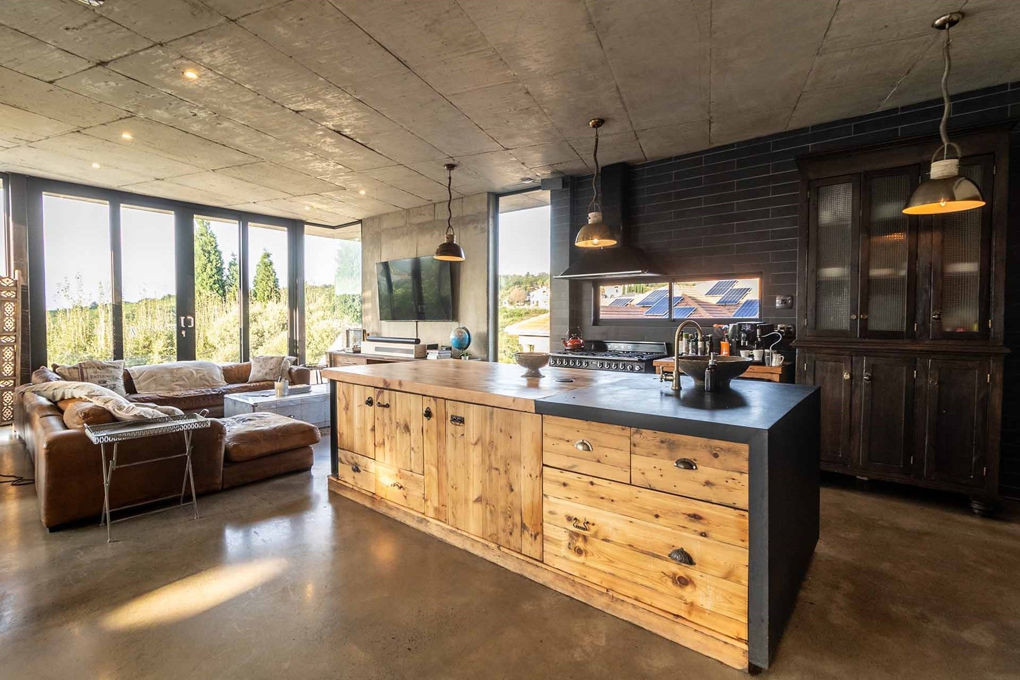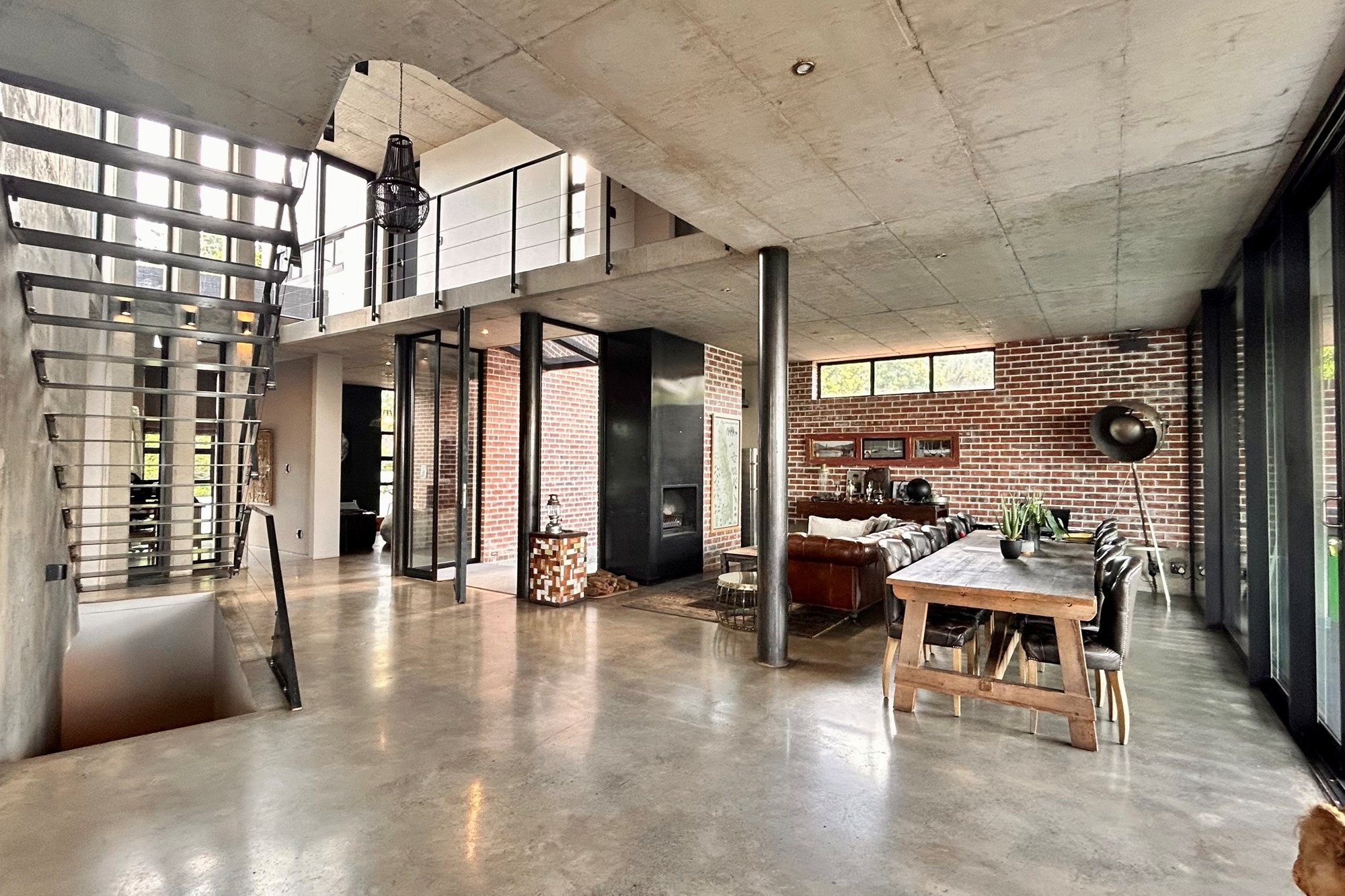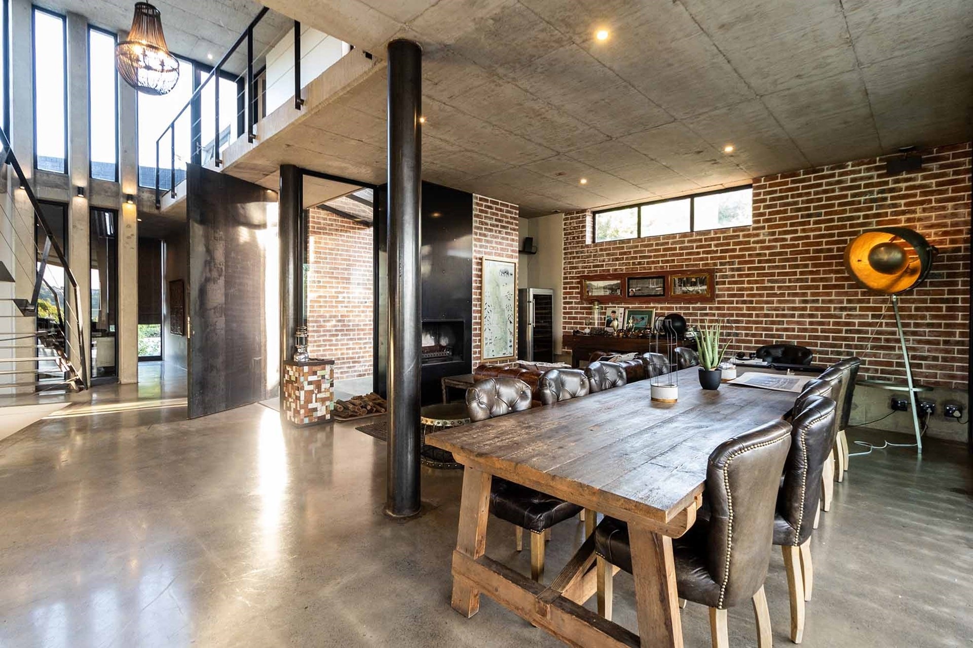 This home combines modern industrial design with luxury and sustainability, featuring practical and versatile spaces to suit a dynamic lifestyle.
