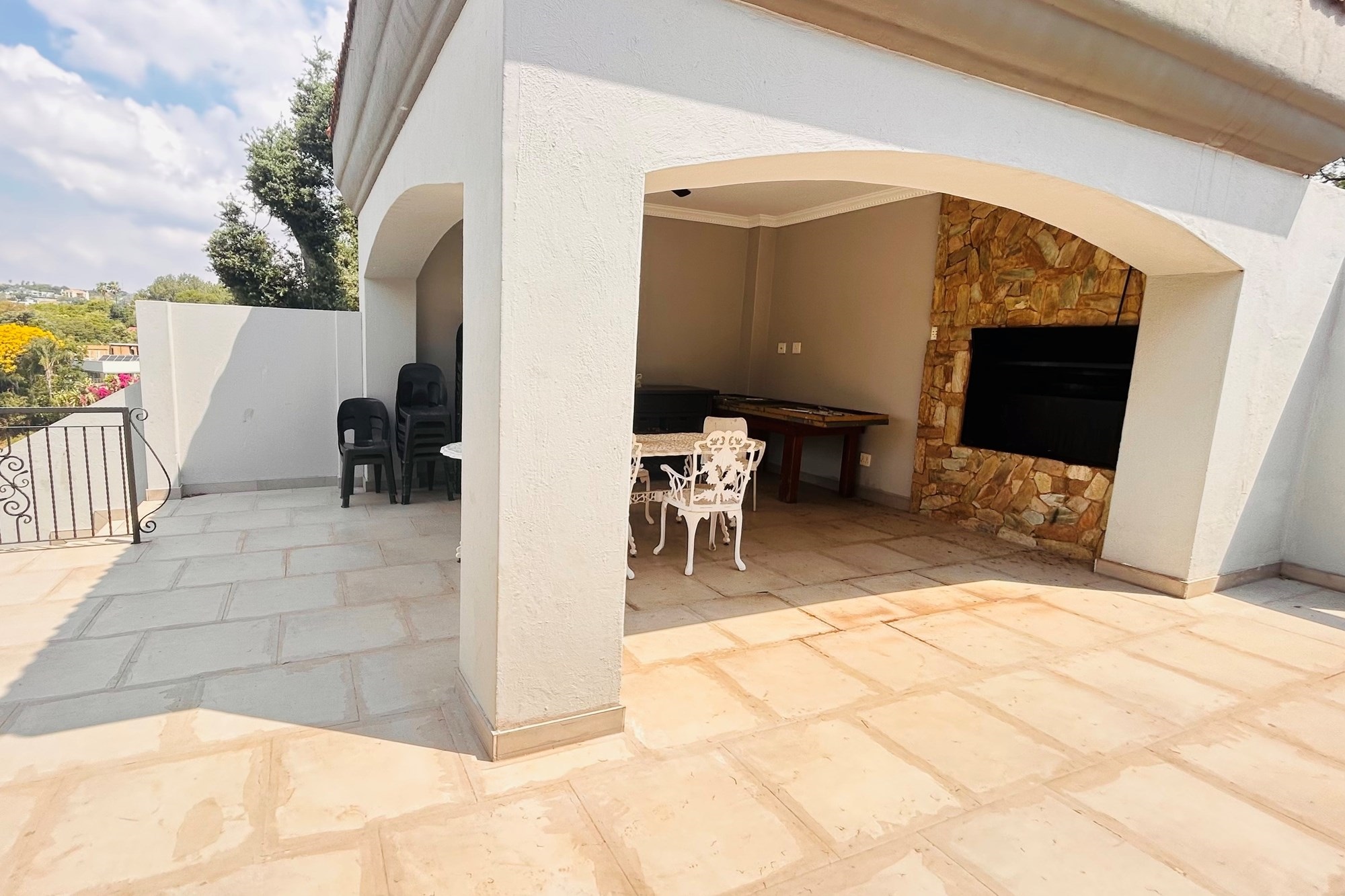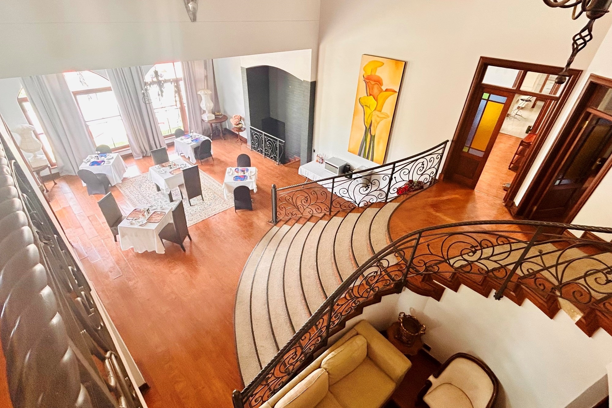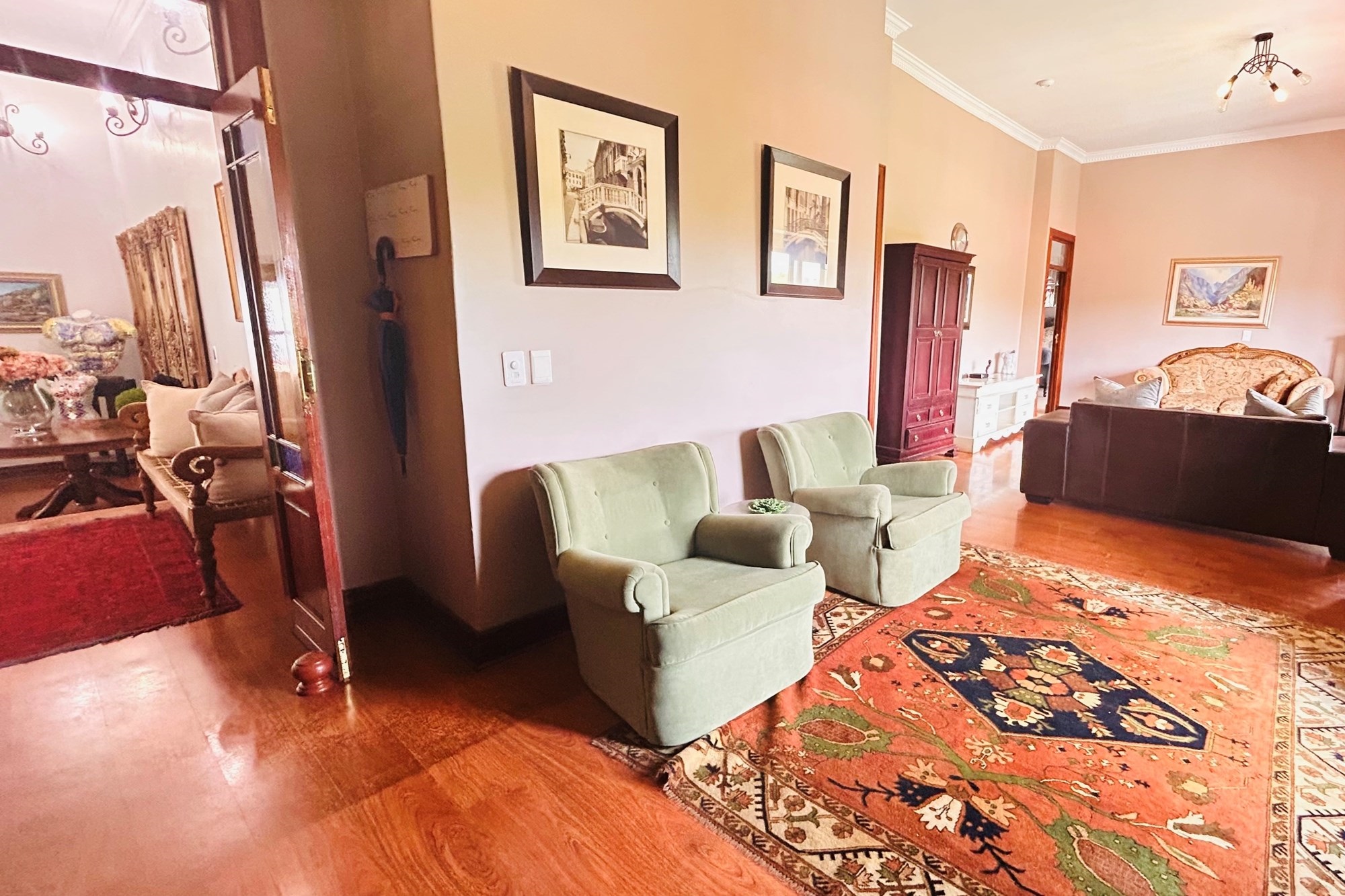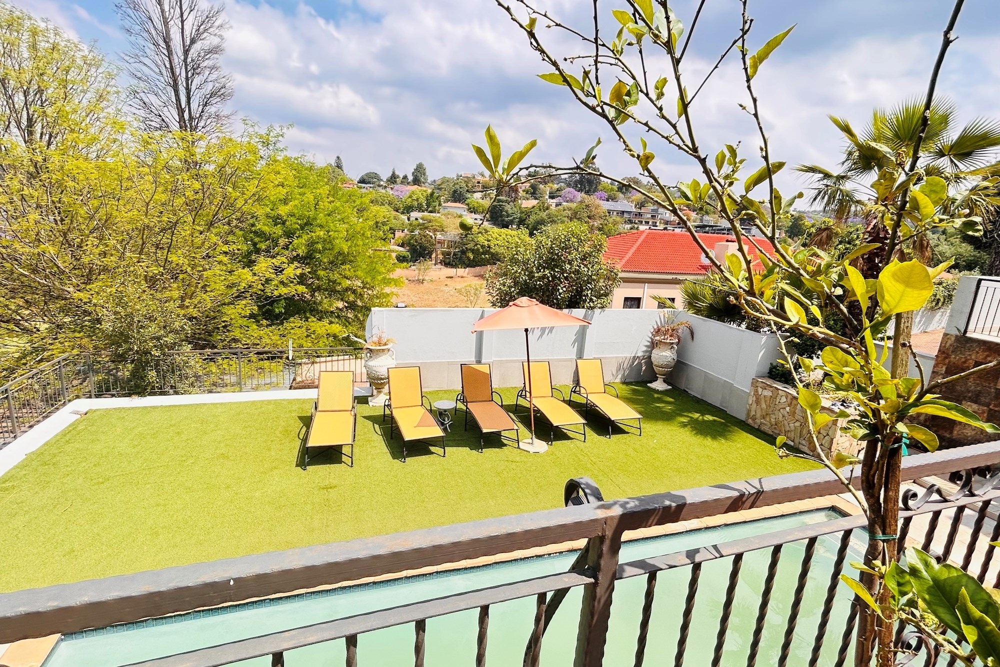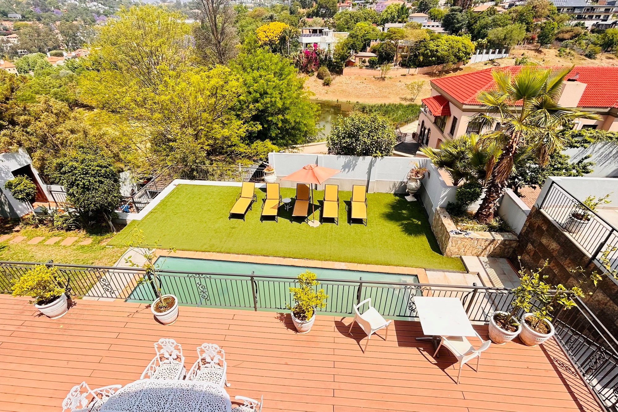Property Features:7 En-suite Bedrooms– Includes a2-bedroom private flatlet, ideal for guests, extended family, or additional rental income.Currently Operated as a Guesthouse– Ready for continued operation or private living.2 Elegant Studies– Offering quiet, sophisticated spaces for work or creativity.Multi-Level Living Spaces– Double-volume entrance foyer, formal dining, expansive living areas, and an impressive wine cellar.Outdoor Braai & Entertainment Area– Seamless indoor-outdoor flow, perfect for entertaining guests or enjoying family time.Private Pool– Set against panoramic views, this large pool is ideal for relaxation and poolside gatherings.4 Garages, 5 Parking Spaces & 2 Carports– Ample secure parking for family and guests.Porte-cochere Entrance– A grand, welcoming feature adding to the property’s ambassadorial appeal.Dedicated Guardhouse & Security– Two security guards ensure 24-hour protection, allowing complete peace of mind.No Loadshedding– Full power backup for uninterrupted comfort and convenience.