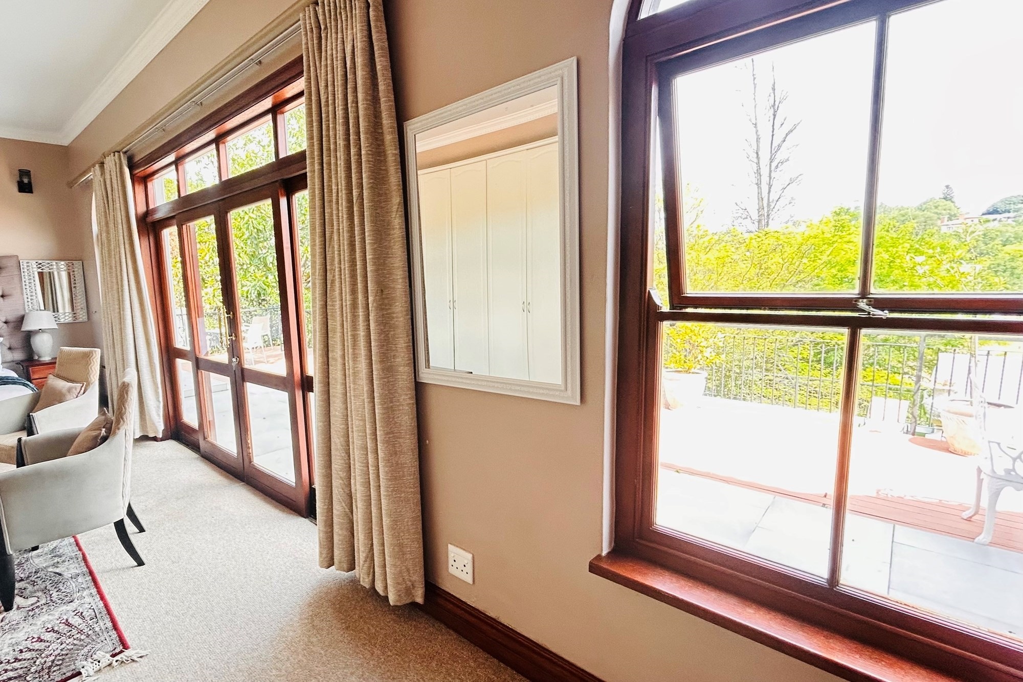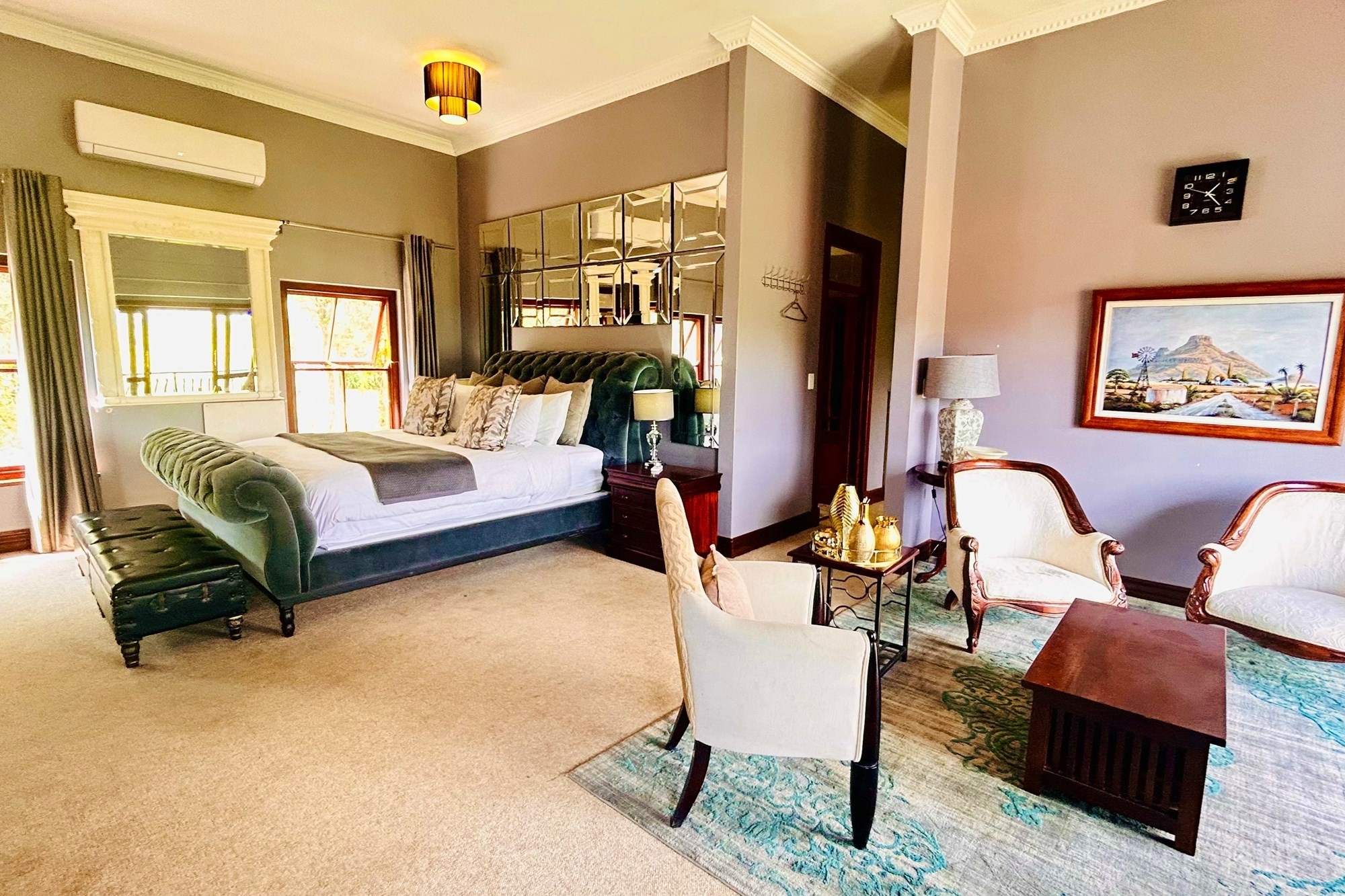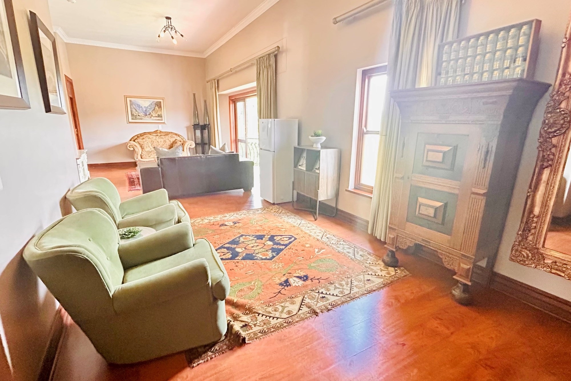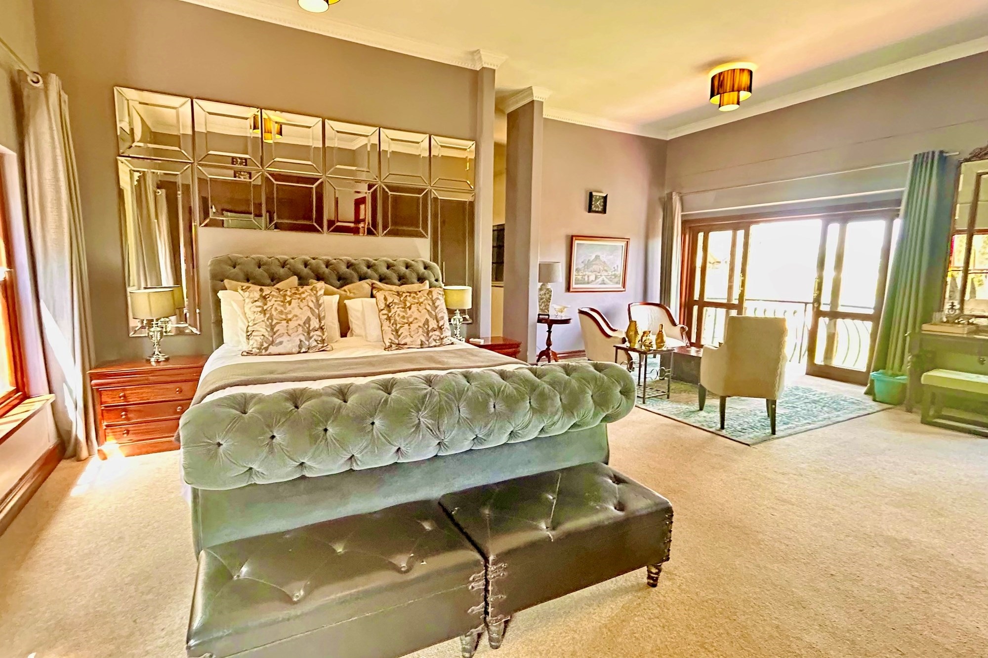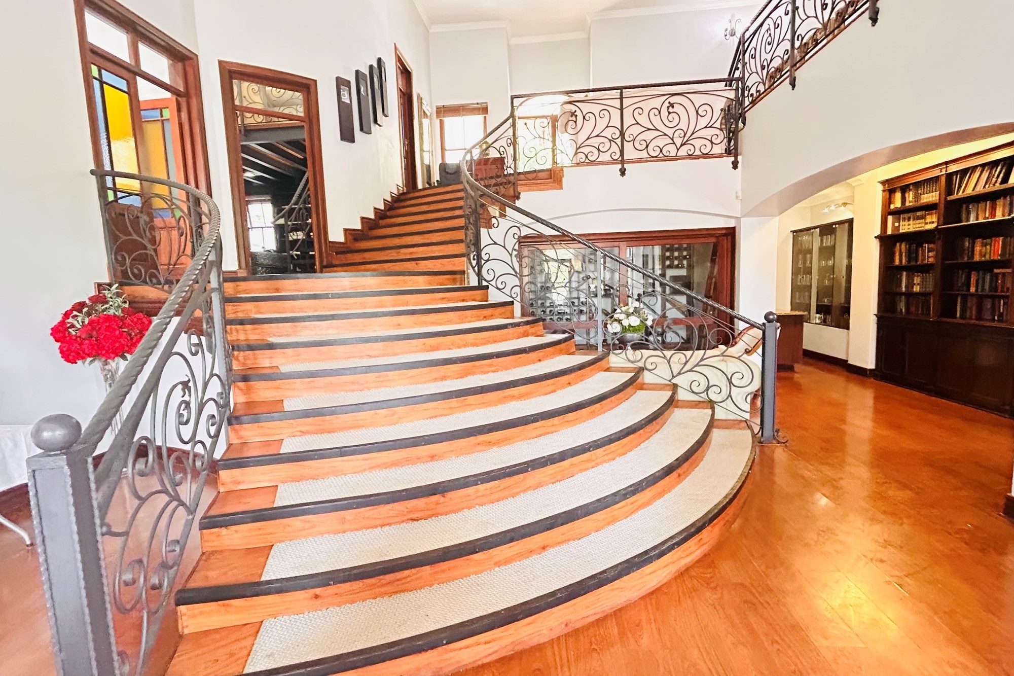 Property Features:7 En-suite Bedrooms– Includes a2-bedroom private flatlet, ideal for guests, extended family, or additional rental income.Currently Operated as a Guesthouse– Ready for continued operation or private living.2 Elegant Studies– Offering quiet, sophisticated spaces for work or creativity.Multi-Level Living Spaces– Double-volume entrance foyer, formal dining, expansive living areas, and an impressive wine cellar.Outdoor Braai & Entertainment Area– Seamless indoor-outdoor flow, perfect for entertaining guests or enjoying family time.Private Pool– Set against panoramic views, this large pool is ideal for relaxation and poolside gatherings.4 Garages, 5 Parking Spaces & 2 Carports– Ample secure parking for family and guests.Porte-cochere Entrance– A grand, welcoming feature adding to the property’s ambassadorial appeal.Dedicated Guardhouse & Security– Two security guards ensure 24-hour protection, allowing complete peace of mind.No Loadshedding– Full power backup for uninterrupted comfort and convenience.