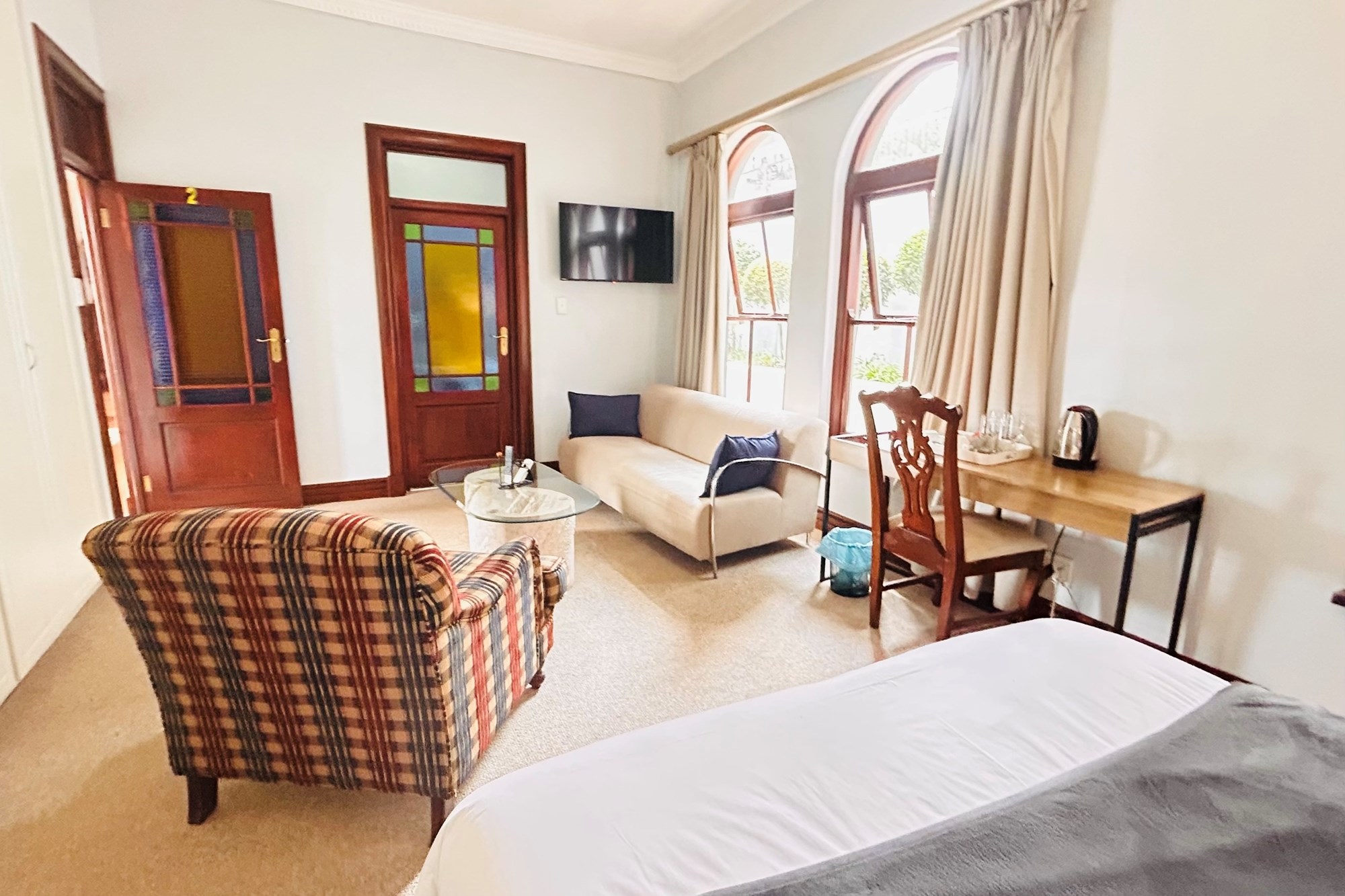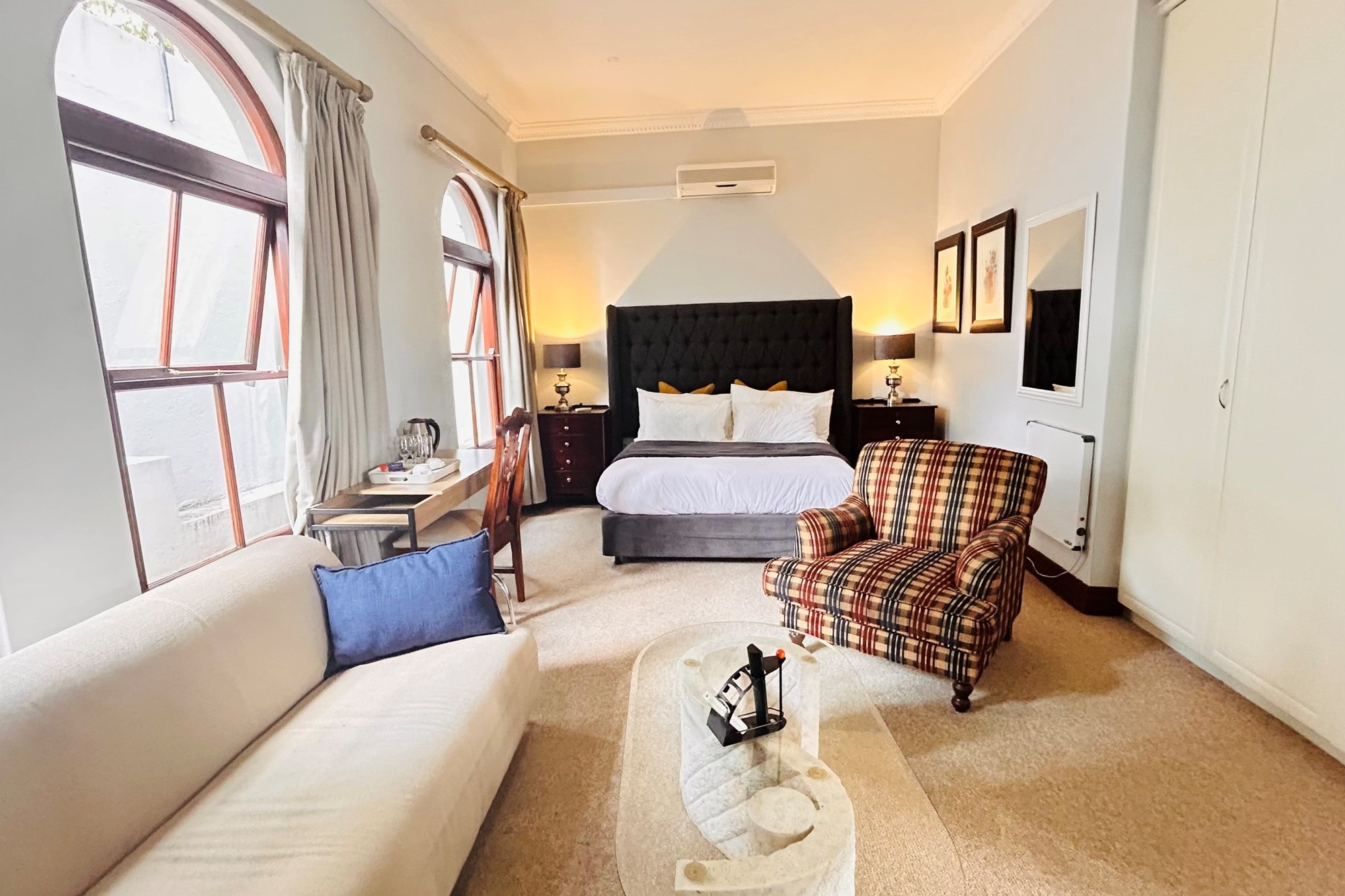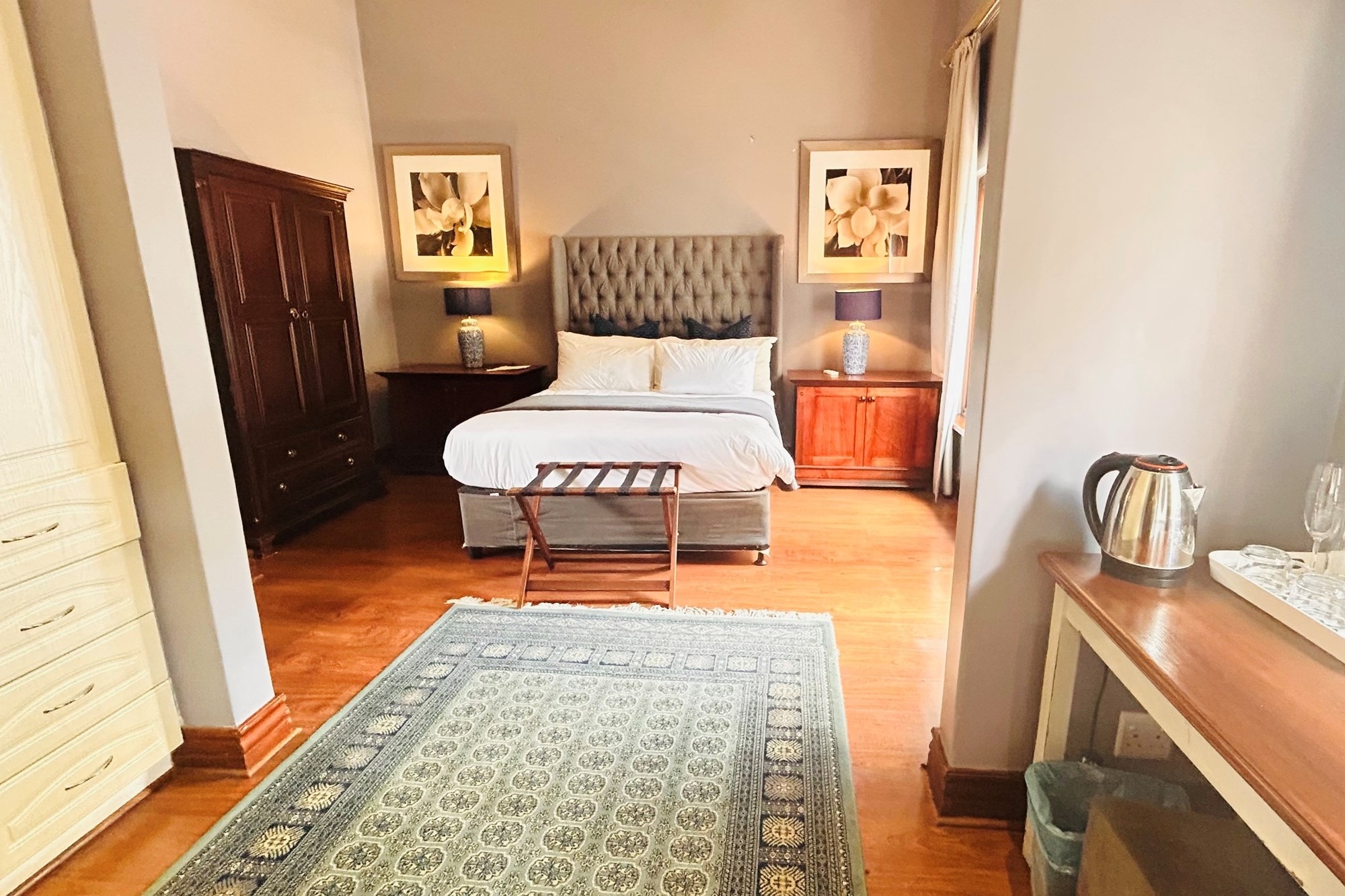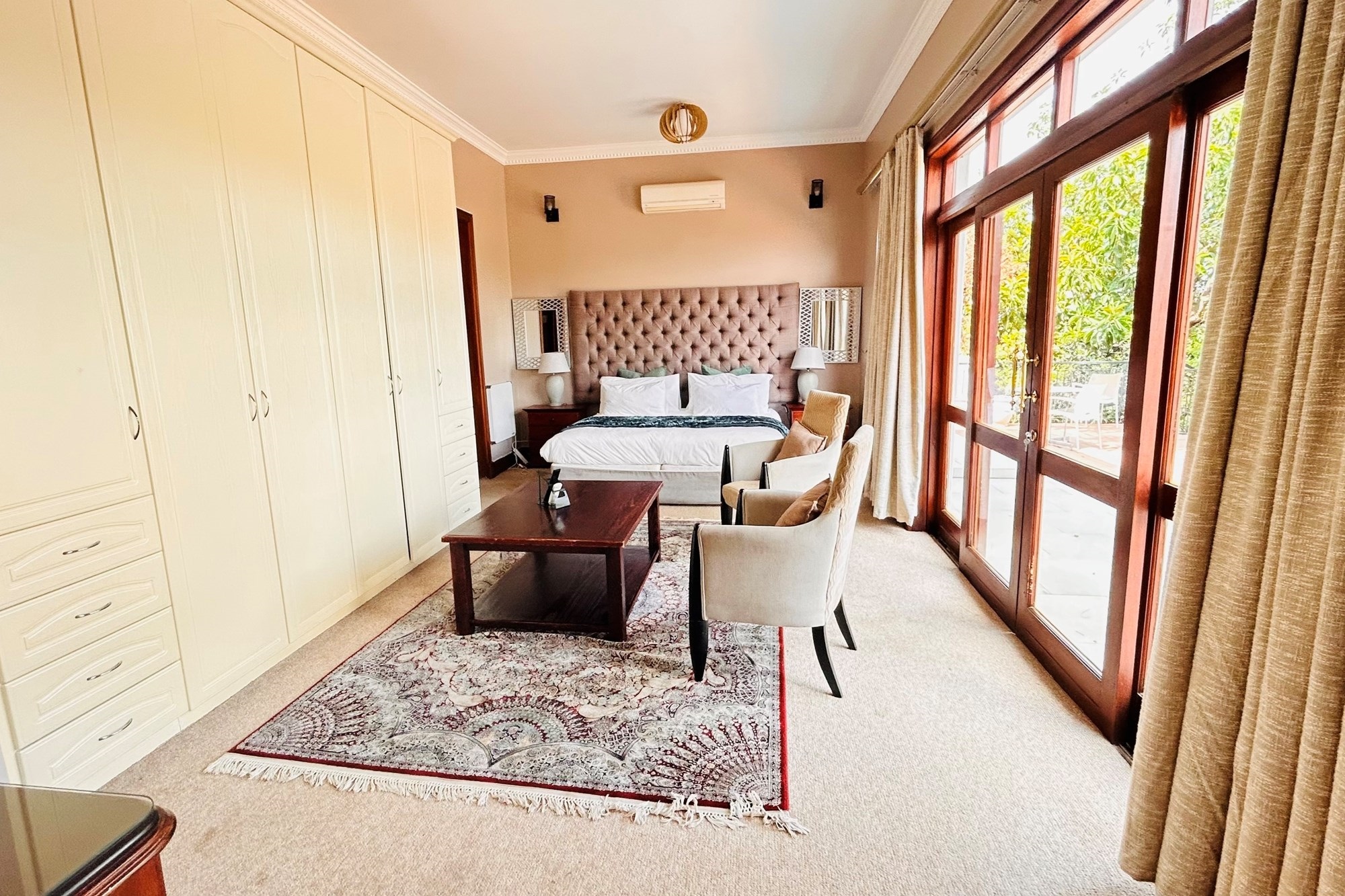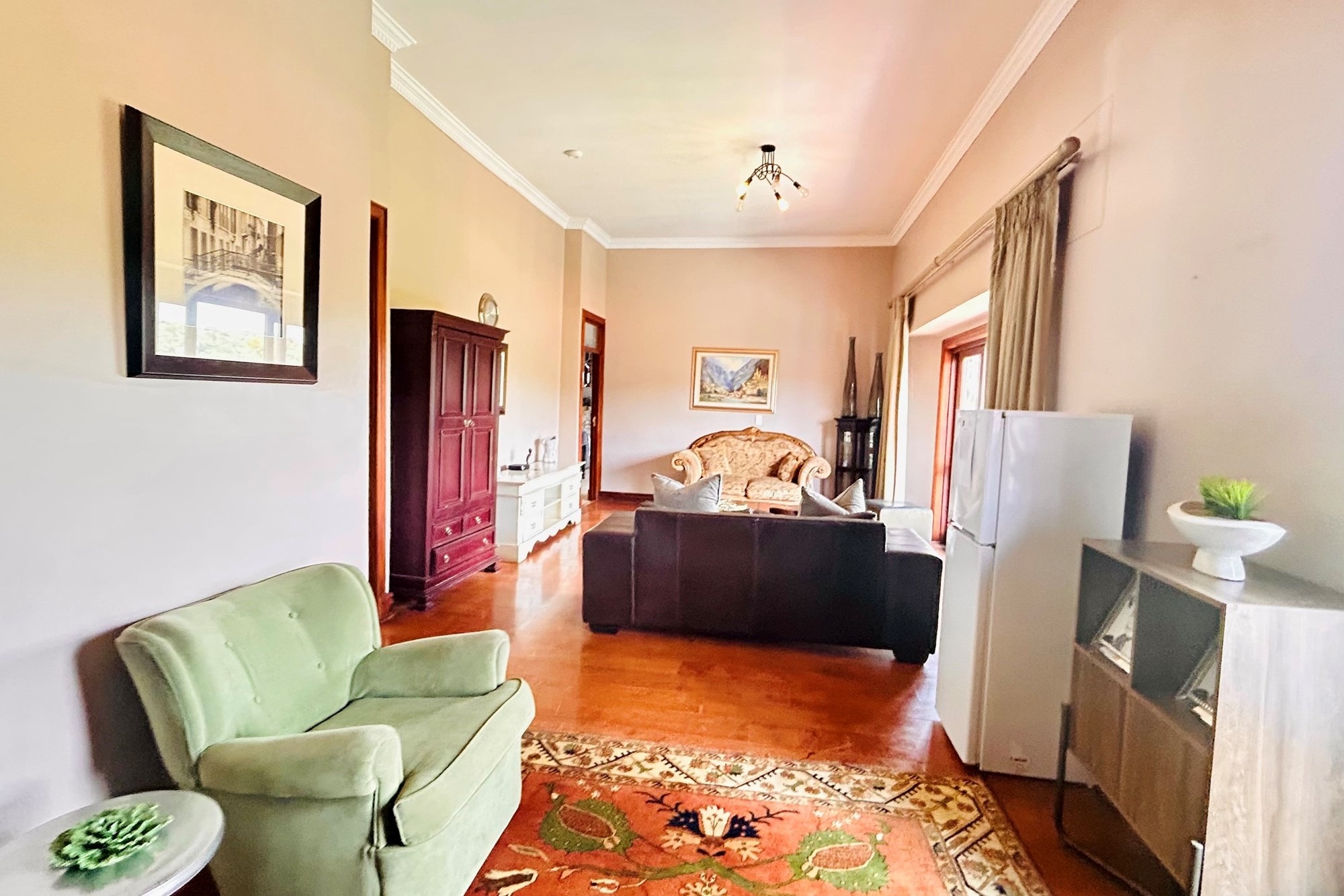Property Features:7 En-suite Bedrooms– Includes a2-bedroom private flatlet, ideal for guests, extended family, or additional rental income.Currently Operated as a Guesthouse– Ready for continued operation or private living.2 Elegant Studies– Offering quiet, sophisticated spaces for work or creativity.Multi-Level Living Spaces– Double-volume entrance foyer, formal dining, expansive living areas, and an impressive wine cellar.Outdoor Braai & Entertainment Area– Seamless indoor-outdoor flow, perfect for entertaining guests or enjoying family time.Private Pool– Set against panoramic views, this large pool is ideal for relaxation and poolside gatherings.4 Garages, 5 Parking Spaces & 2 Carports– Ample secure parking for family and guests.Porte-cochere Entrance– A grand, welcoming feature adding to the property’s ambassadorial appeal.Dedicated Guardhouse & Security– Two security guards ensure 24-hour protection, allowing complete peace of mind.No Loadshedding– Full power backup for uninterrupted comfort and convenience.