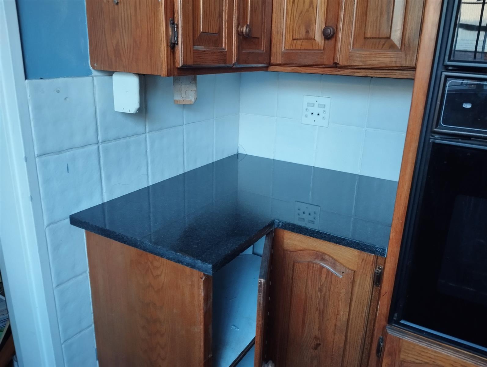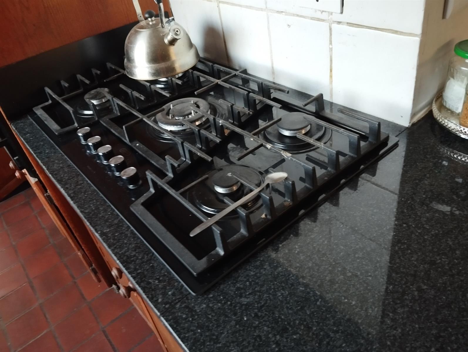 ·Modern kitchen with granite tops, gas hob, double oven, and separate scullery plus laundry