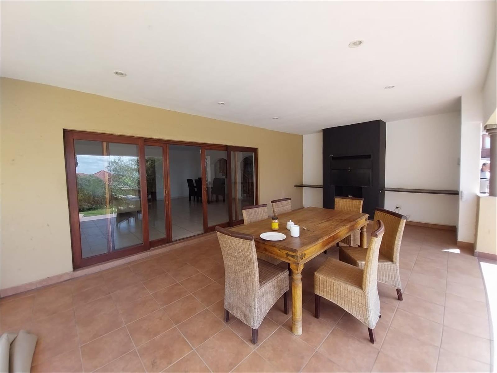 ·Sunlit formal lounge opening through classic wooden sliders to a patio with built-in braai.