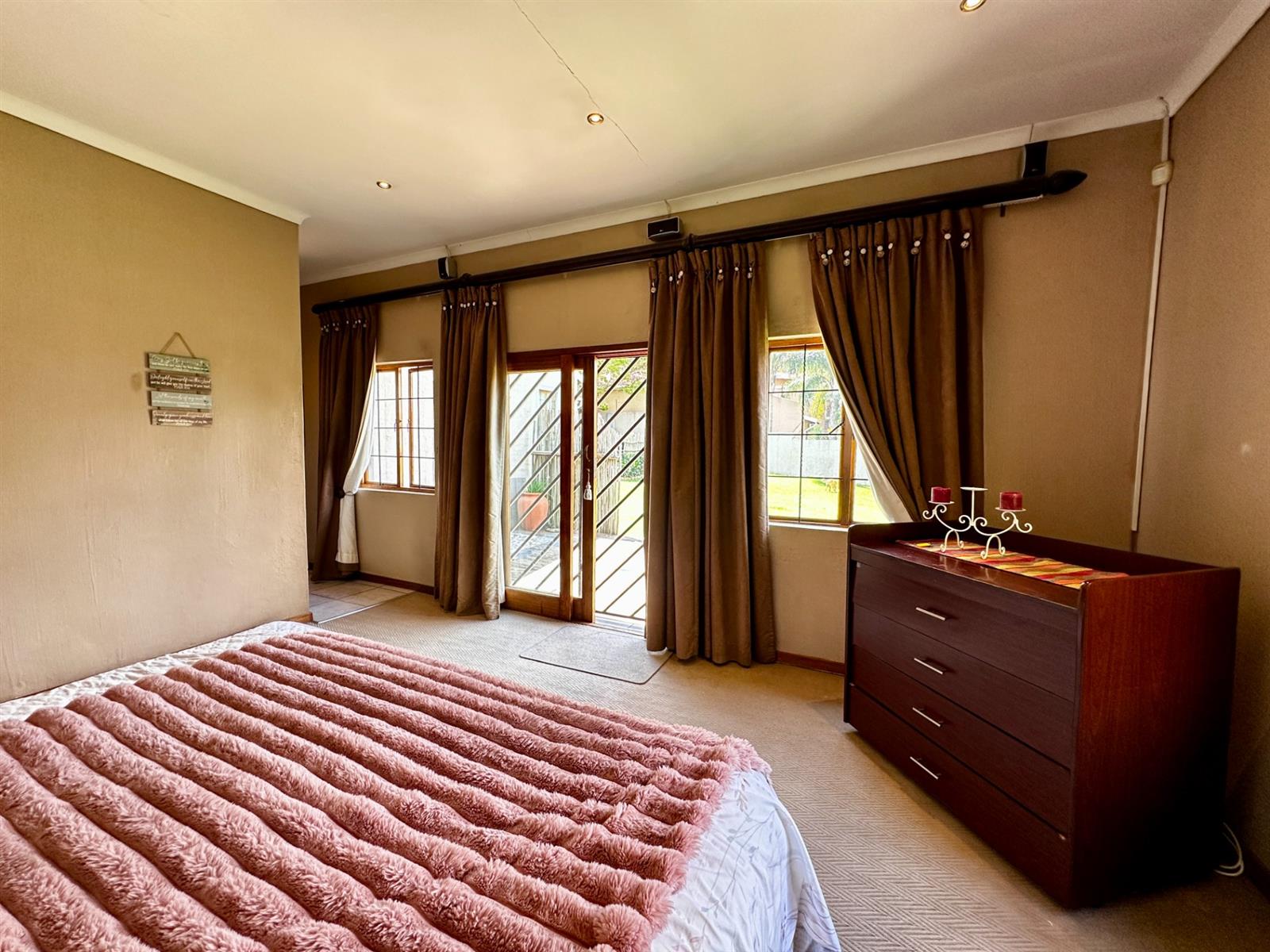 This beautifully crafted single-level residence offers generous proportions, timeless character features, and outstanding flexibility. Set on an expansive 1 602 m2 stand, the home is designed for effortless family living, relaxed entertaining, and adaptable accommodation options.