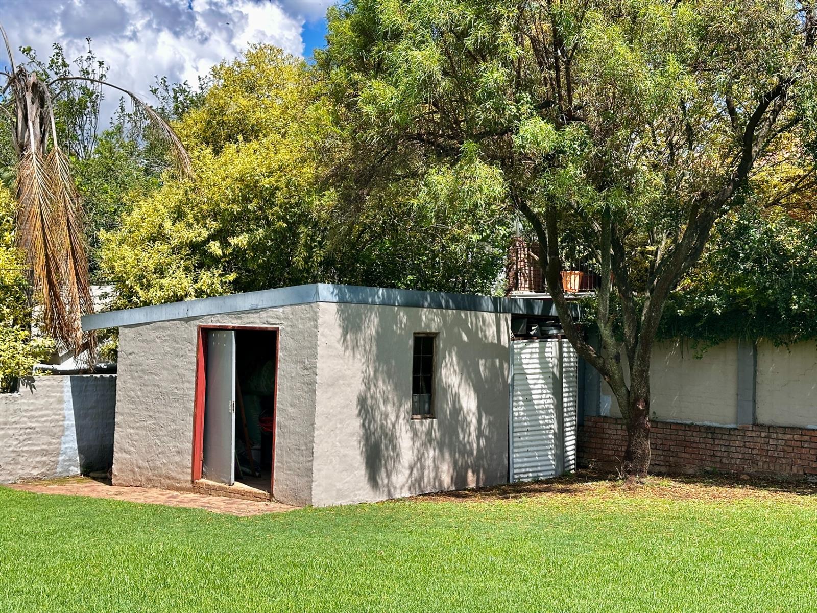 ·Garden shed discreetly positioned on the stand
