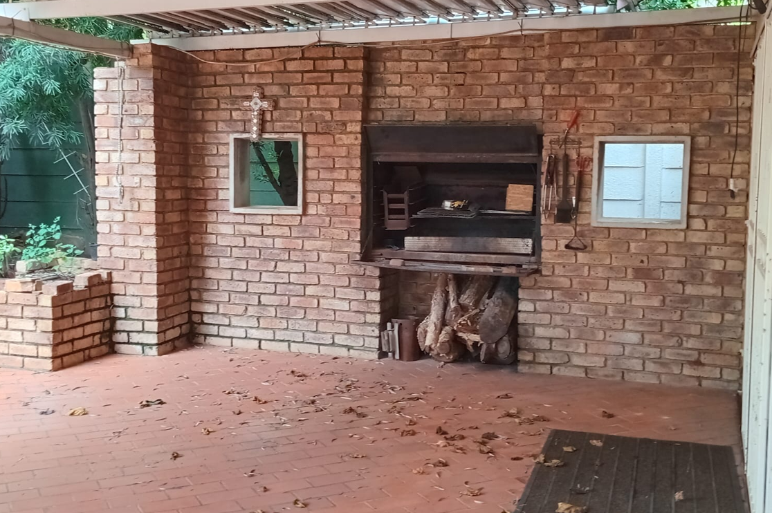 Entertainment Ready - A large covered patio features a built-in braai area, overlooking a sparkling swimming pool—perfect for family fun and social gatherings.