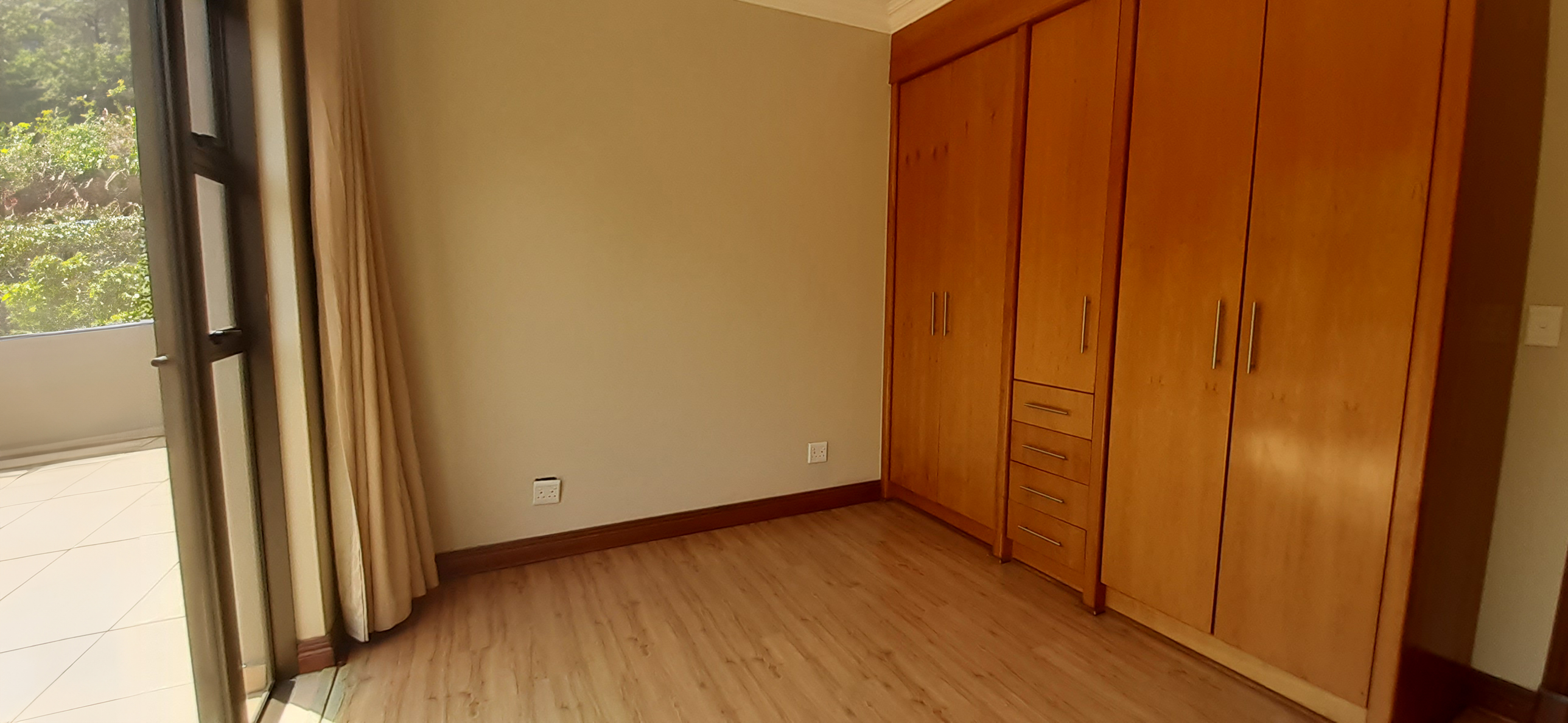 The stairway has a steel roller shutter that ensures a safe-haven for all the bedrooms upstairs. Bedrooms have balconies opening out to take in the view over the tree canopy.