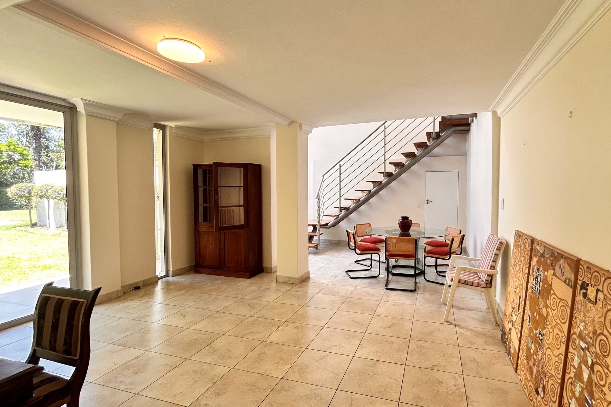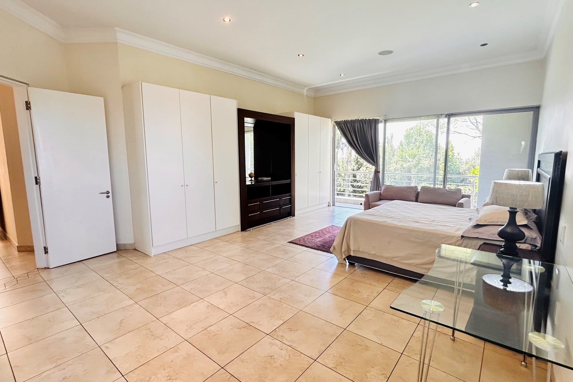 An additional lounge with a large bedroom and bathroom bathroom facilities, ideal for hosting events or creating a private retreat, opens to terraced grounds.